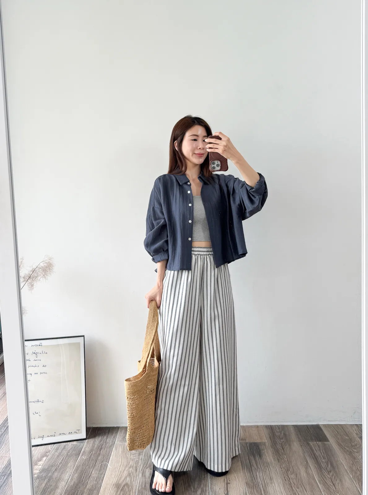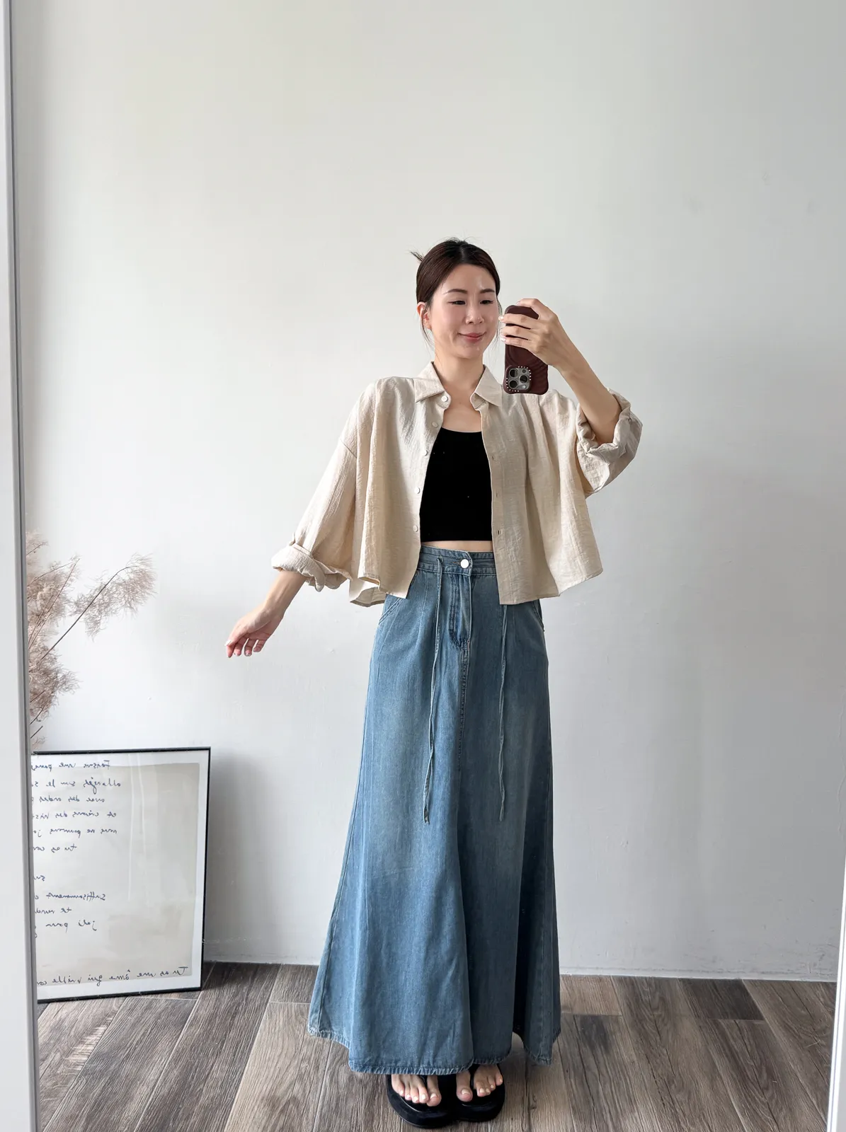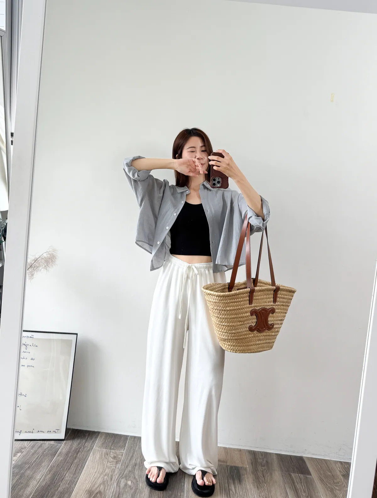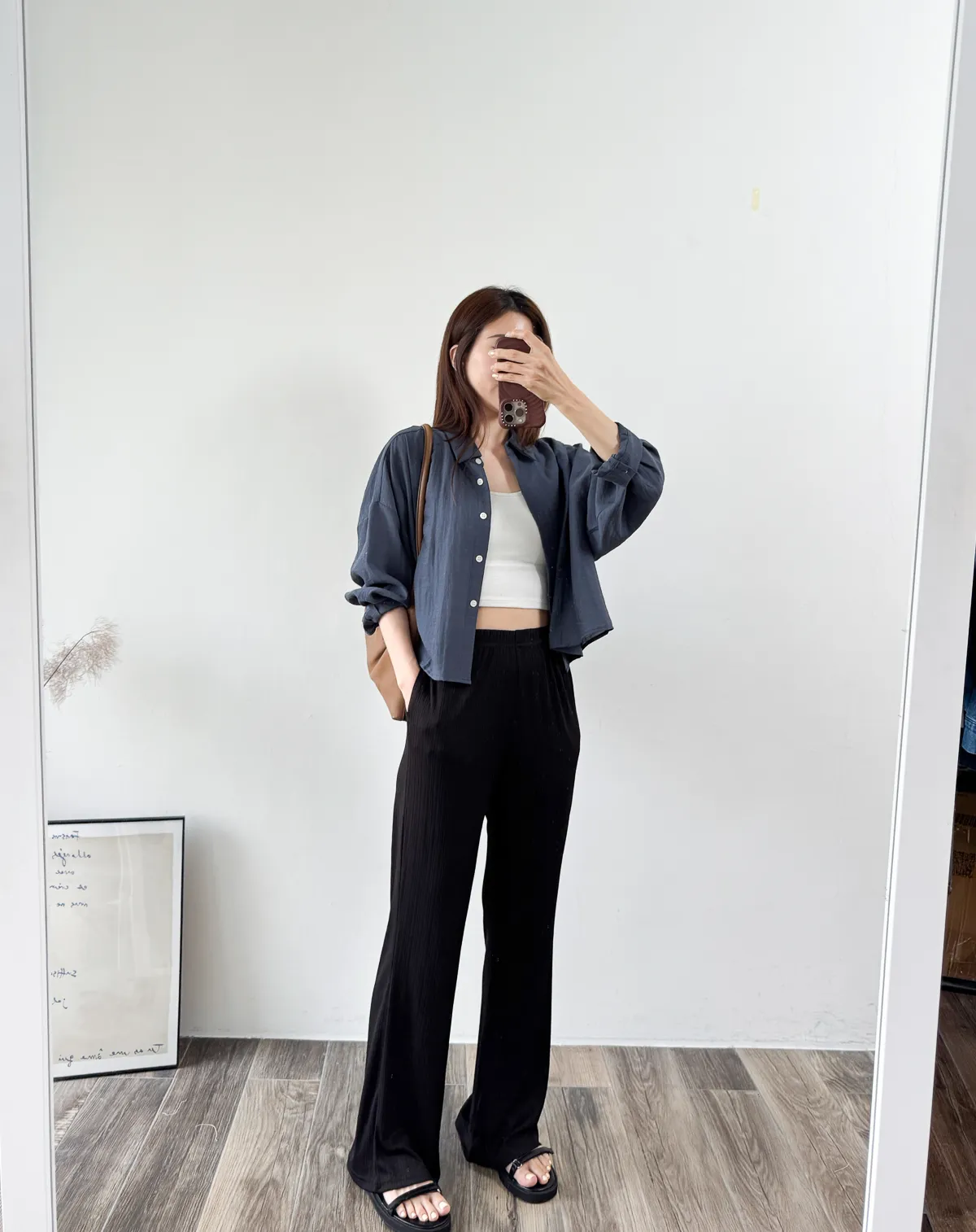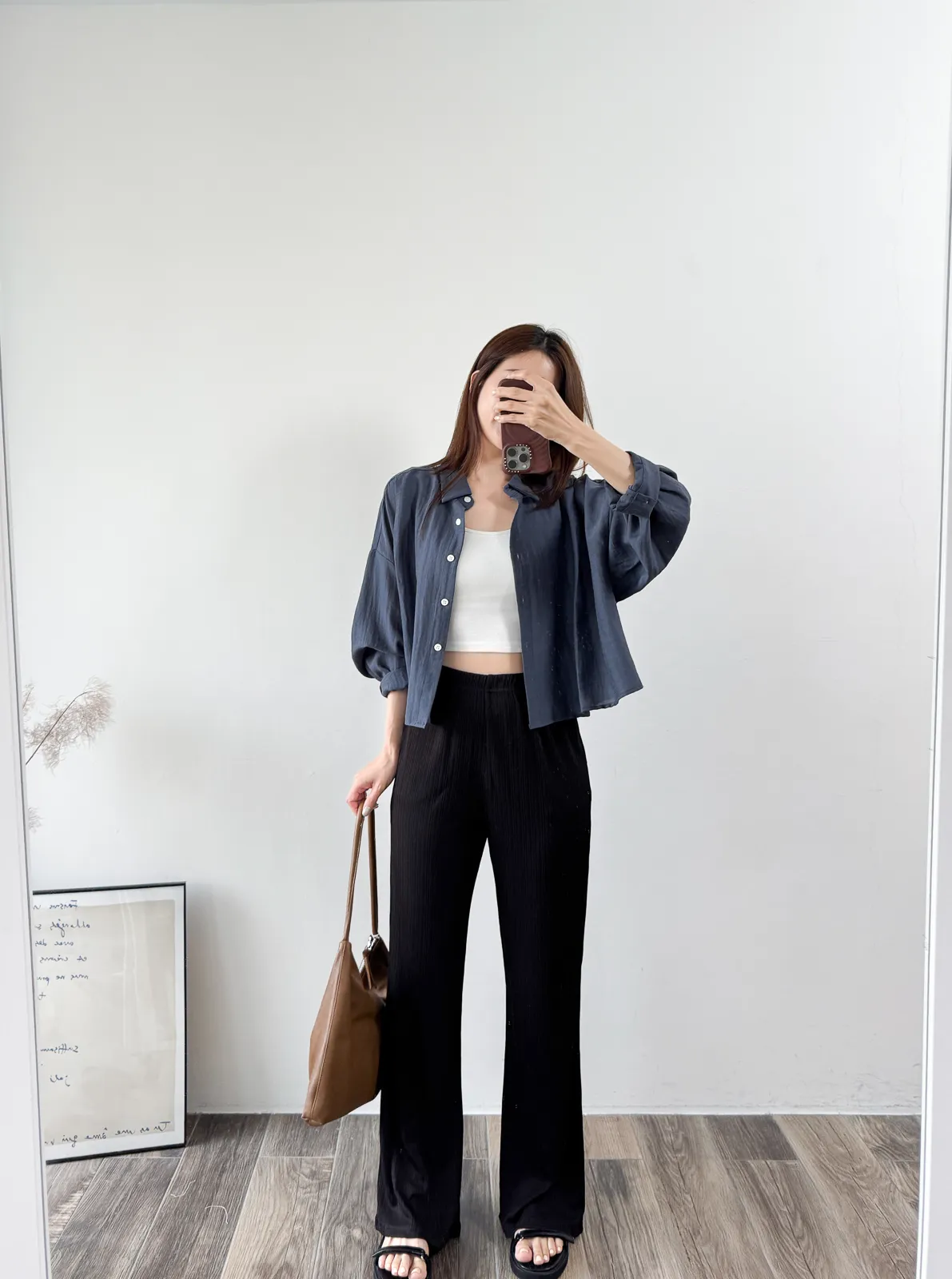 今年短版襯衫真的好難找~ 還好這季有準備兩款短襯衫給大家(也給自己XD) 大家對這款版型有熟悉嗎? 之前賣爆的打褶襯衫🧡🧡 實在太喜歡這版型 我都稱它神奇襯衫! 看著店面各種身形都駕馭的很好,而且好評反饋也好多!太厲害 肩膀的打折讓整體版型看起來更挺一些 穿起來有精神,版型也很俐落! 這次選了混麻的透氣材質~ 細緻手感,直接碰在肌膚上也不會有粗感 顏色選了好久好久~ 最後特別和上一檔自訂襯衫錯開顏色 藍灰這色好漂亮~灰濛濛的很迷人 第一眼忍不住就會選它😆 深藍呢~單看會覺得還好! 但實穿上會很滿意,有顯白感 而且是很飽和的質感色調🤩 淺杏穿起來的溫柔知性感是完全不同風格 大家可以選擇一深一淺打包💕*made in china model 158/48 (腰26吋 臀35吋)