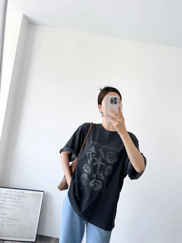 上架了上架了! 上個月搭配其他自訂款時詢問度好高 沒想到大家和我一樣喜歡這件 當時看到歐膩搭配,立馬購入~~ 各類貝殼圖案實在太可愛 布料是水洗灰~ 柔軟親膚,顏色又迷人 不管配短褲長褲都好好看 Model: 158/48(腰26吋,臀35.5吋)