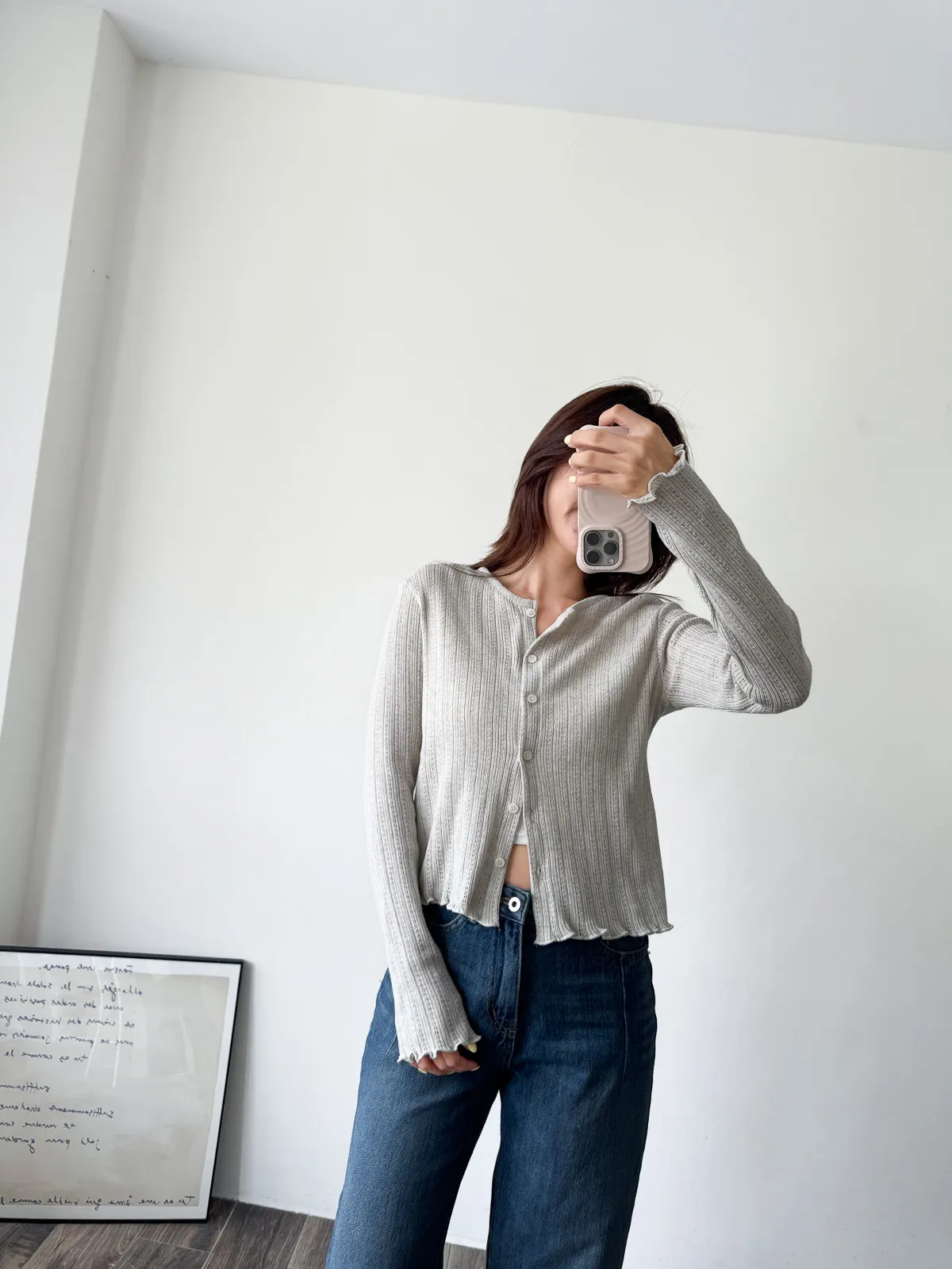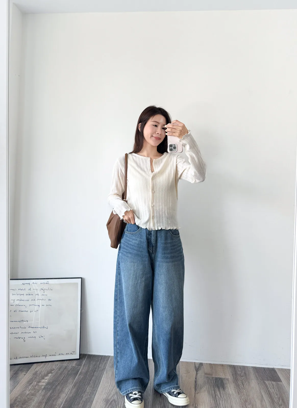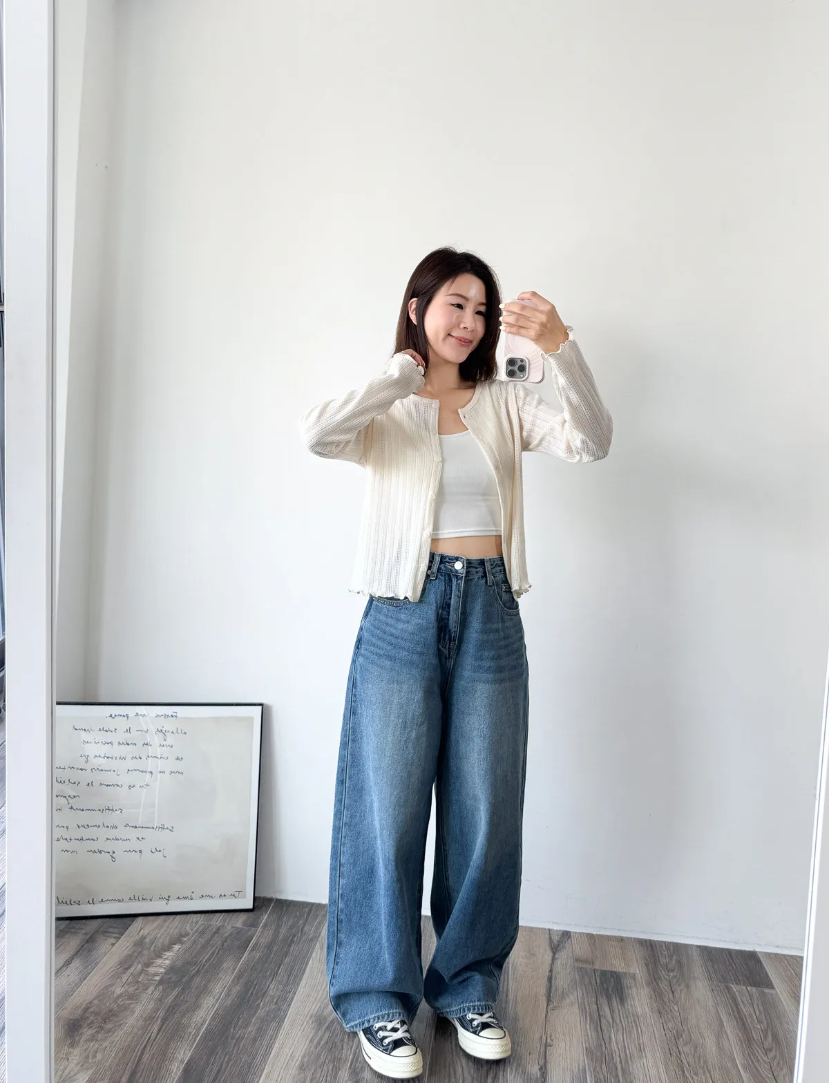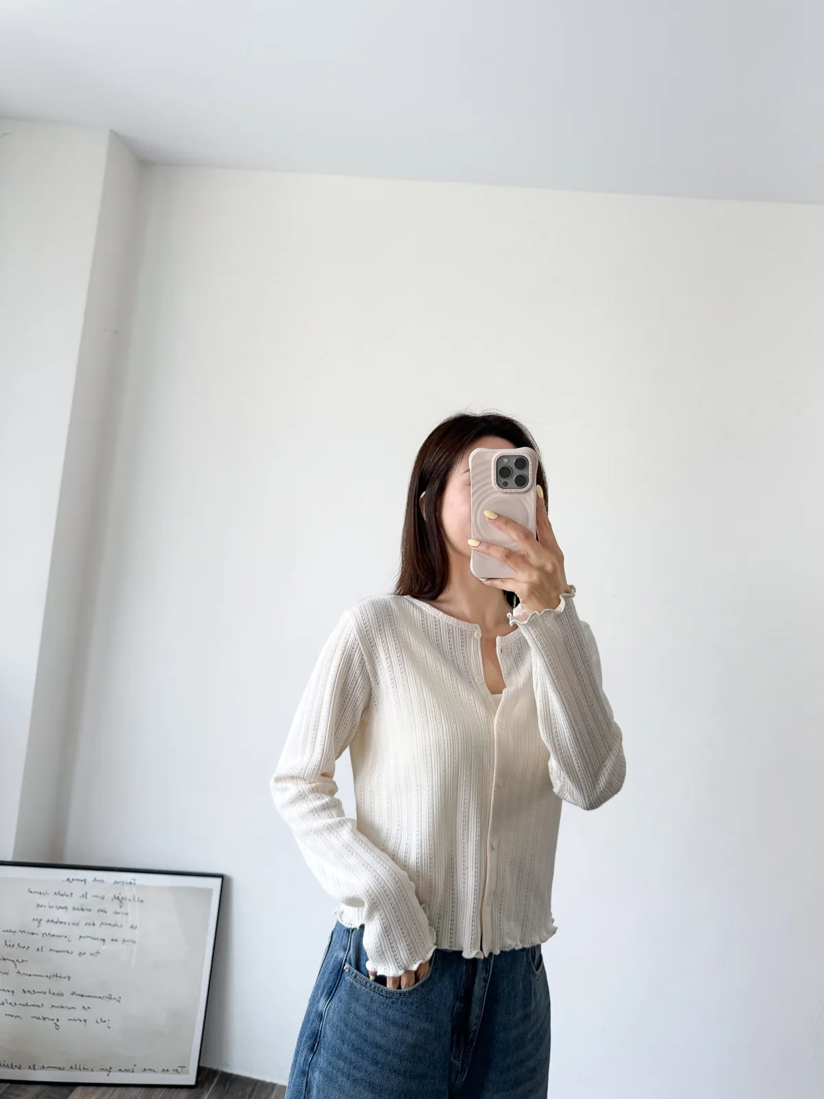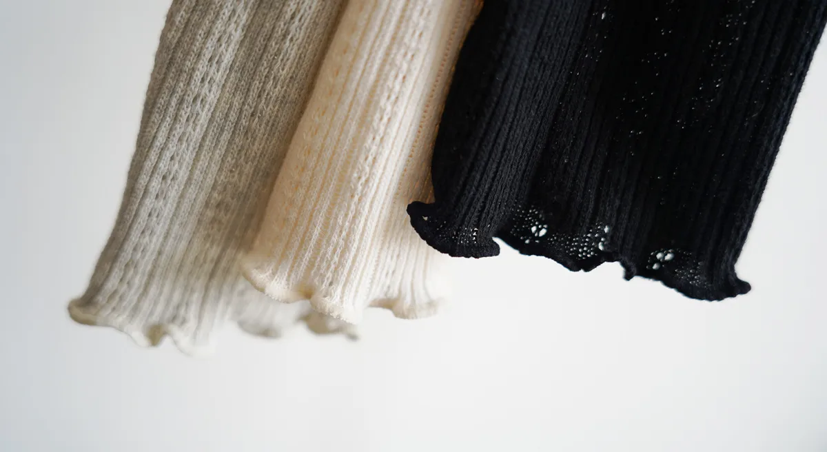 棉質 / 有彈性 這塊布料好可愛~簍空洞洞壓紋 袖口和下襬QQ捲邊 打開當小外套或是內搭小背心當上衣都行 配上圓裙或是寬褲等等都漂亮! Model 158/48 (腰25吋 臀35.5吋) detail//
