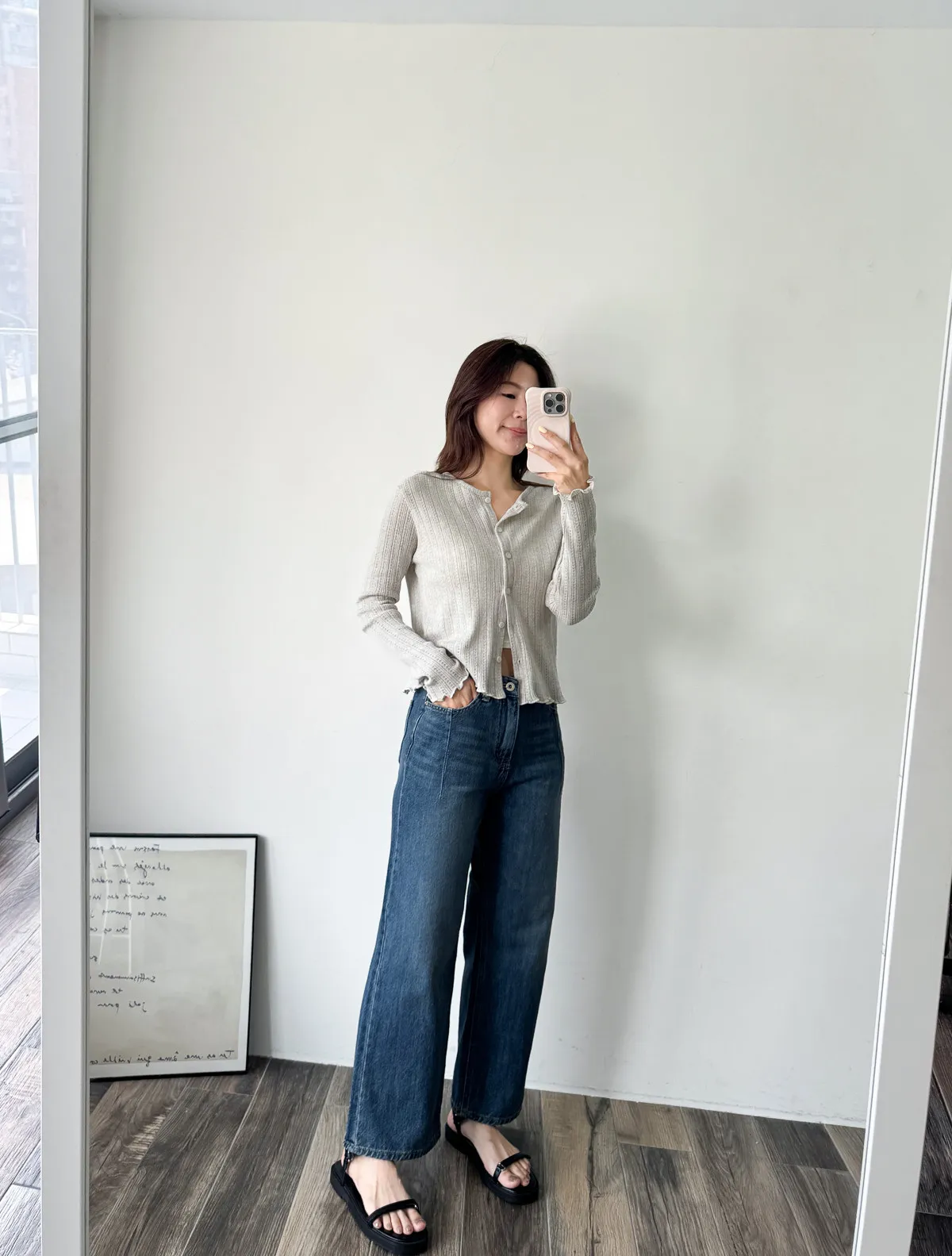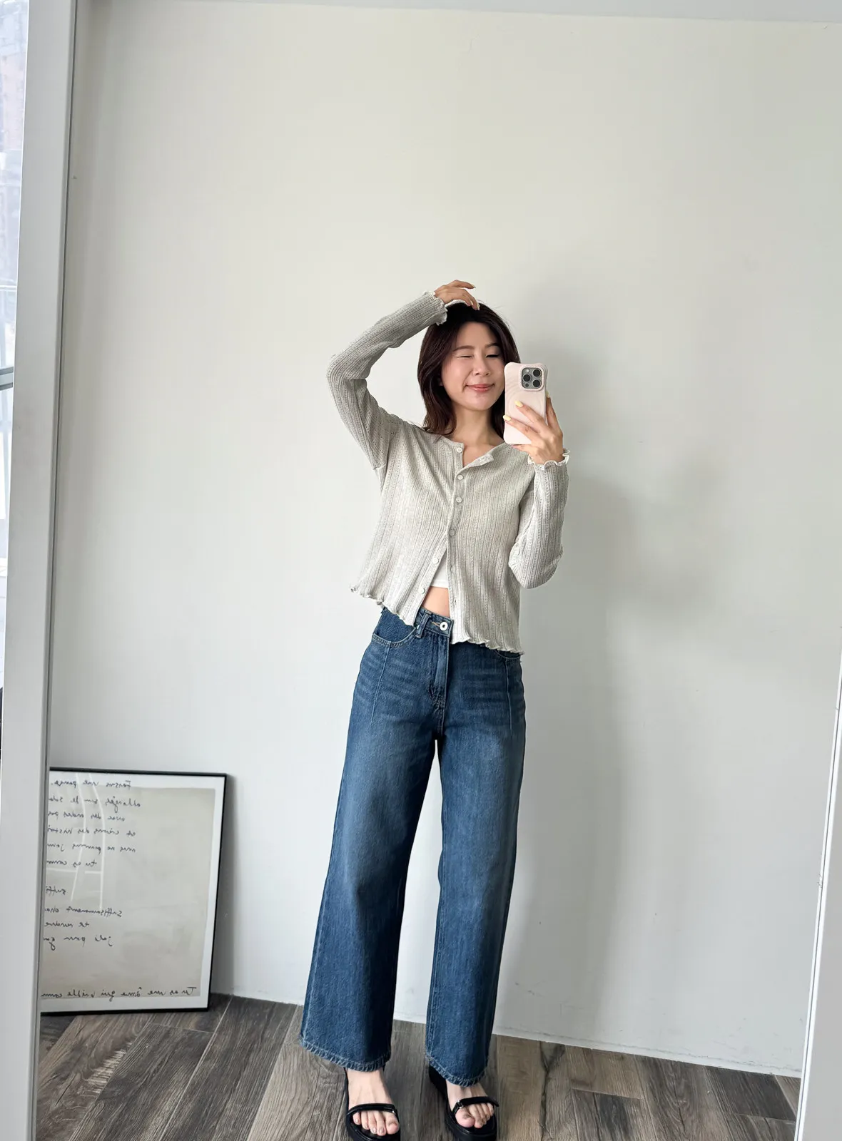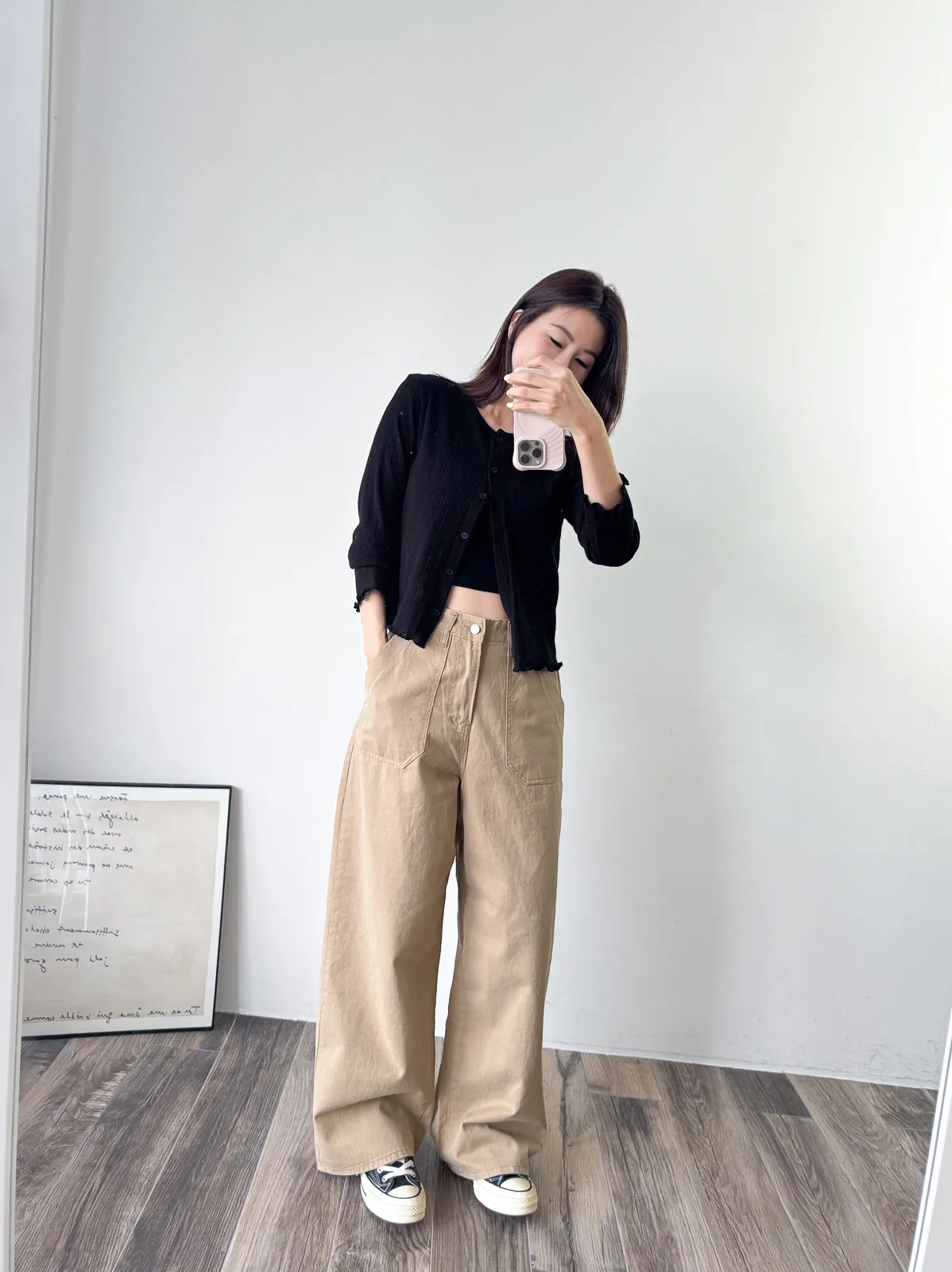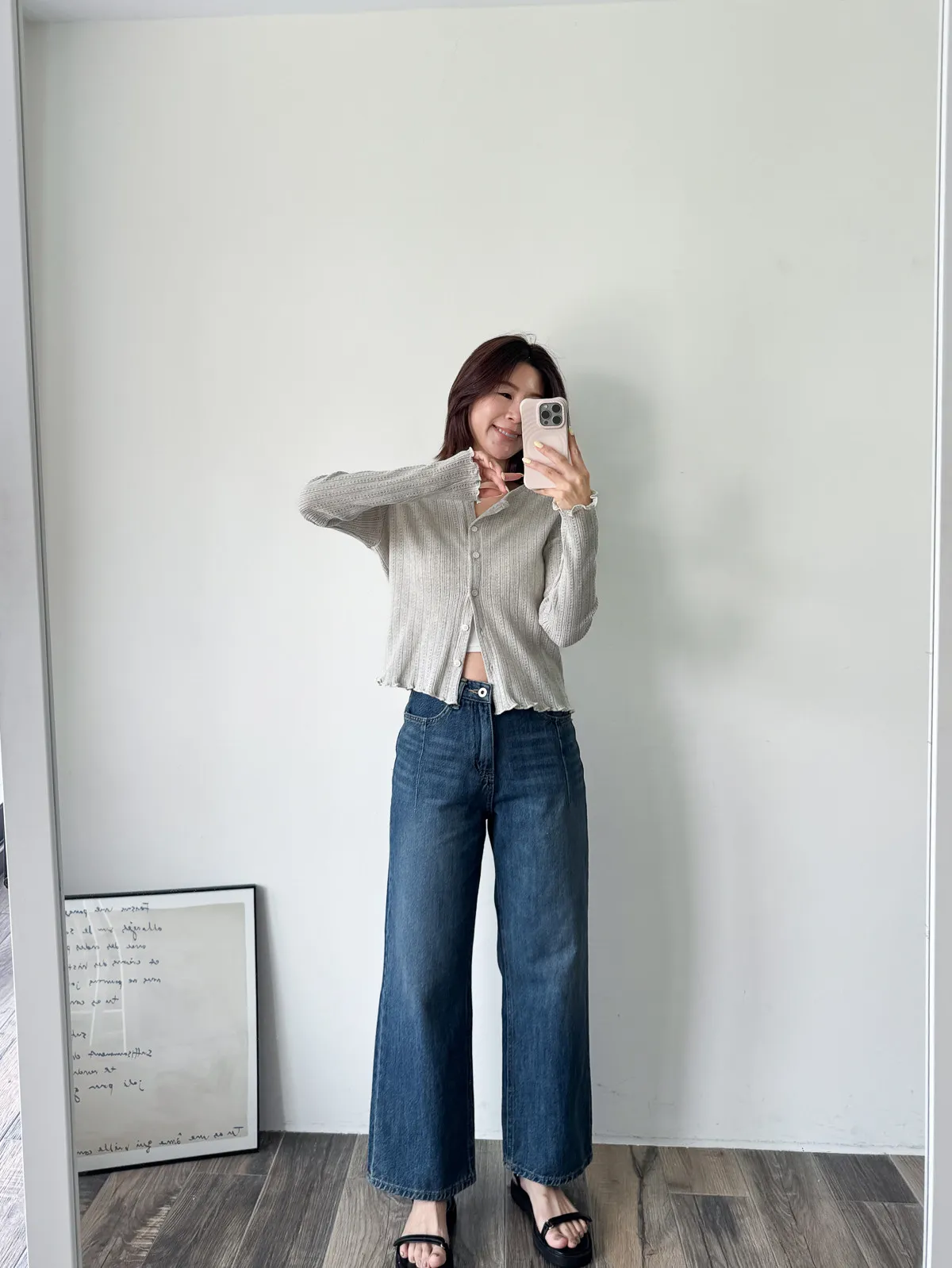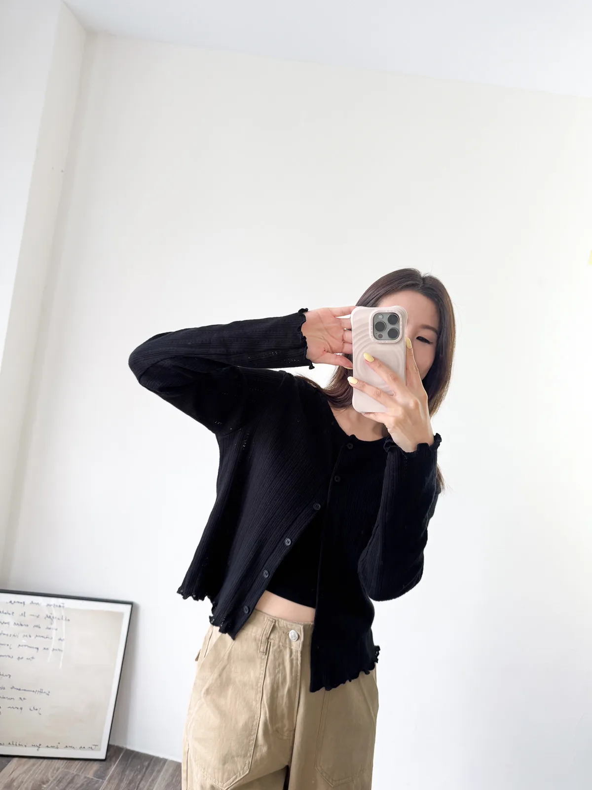 棉質 / 有彈性 這塊布料好可愛~簍空洞洞壓紋 袖口和下襬QQ捲邊 打開當小外套或是內搭小背心當上衣都行 配上圓裙或是寬褲等等都漂亮! Model 158/48 (腰25吋 臀35.5吋) detail//