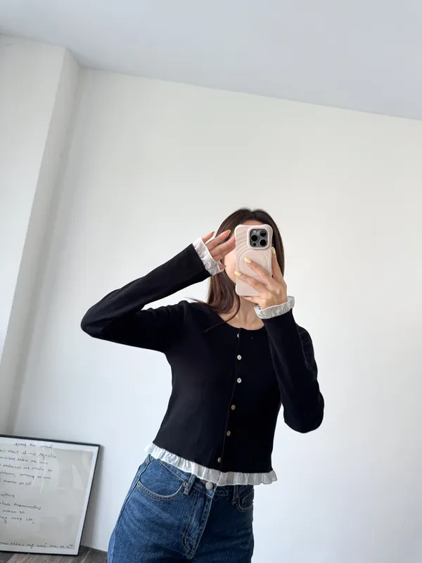 棉質 / 有彈性 布料帶有磅數整體扎實又有挺度~ 版型稍微小一點適合上身瘦瘦女孩 下擺和袖口的配色百褶小荷葉好~~可愛 第一眼看到就好喜歡內! 下半身配上微寬短褲也會很好看唷! Model 158/48 (腰25吋 臀35.5吋) detail//