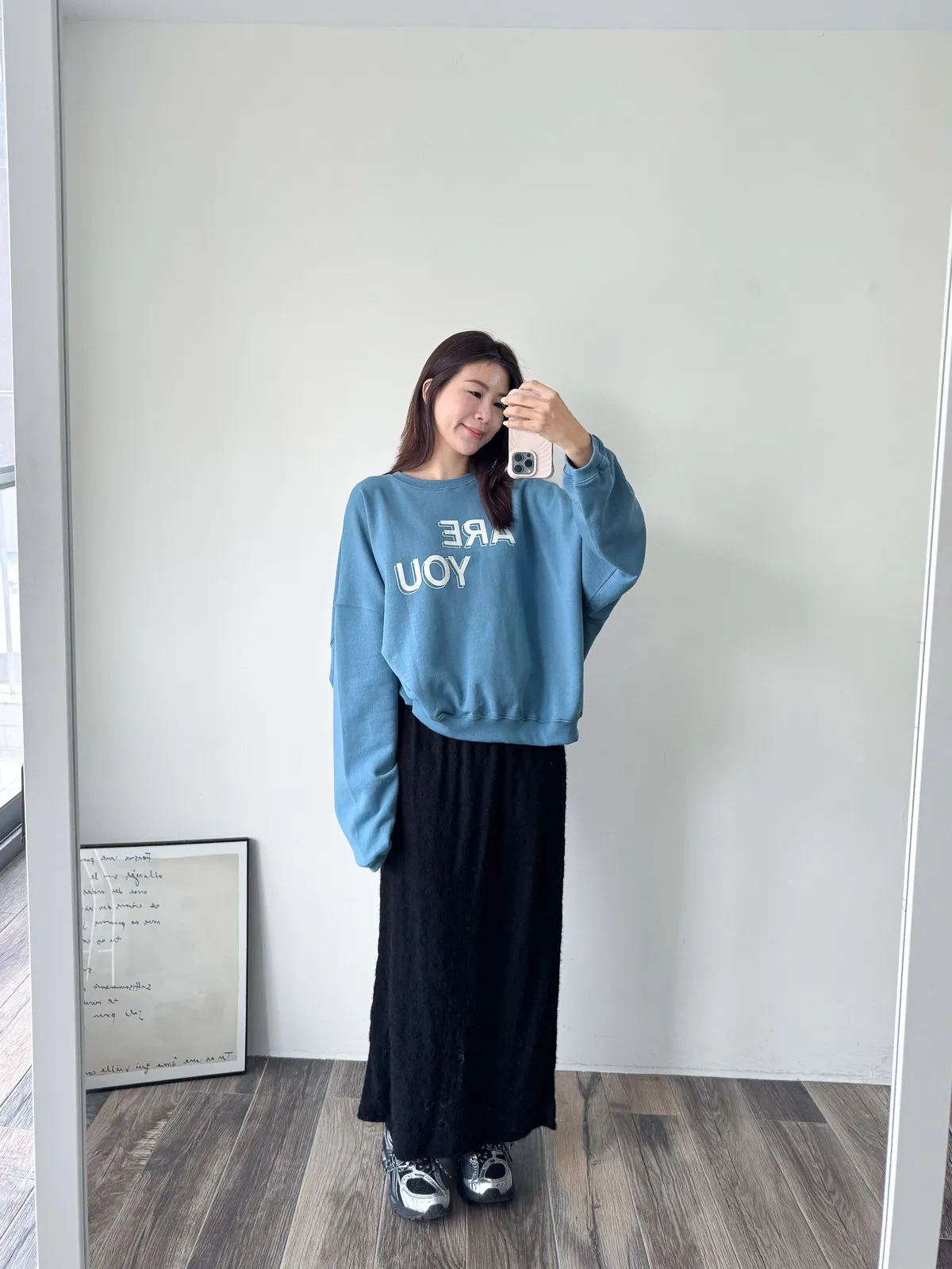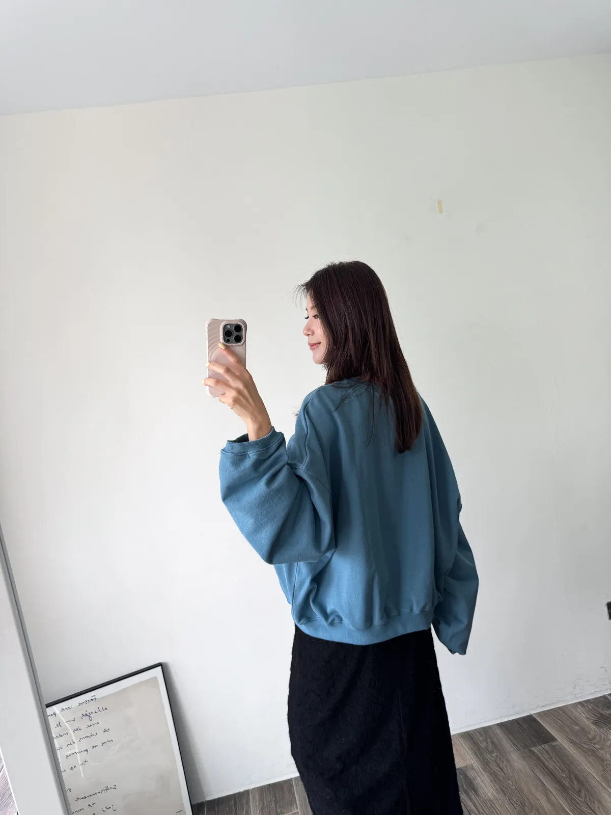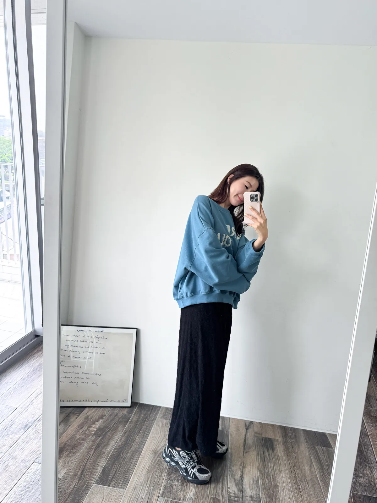 棉質 / 有彈性 這款一眼就好喜歡!完全是我喜歡的慵懶版型 寬鬆感很夠衣長也不會太長不過還是可以修飾一些臀圍 配直筒褲裙裝等等都很好看! 如果可以接受特別色~ 這款藍色超可愛!! Model 158/48 (腰25吋 臀35.5吋) detail//