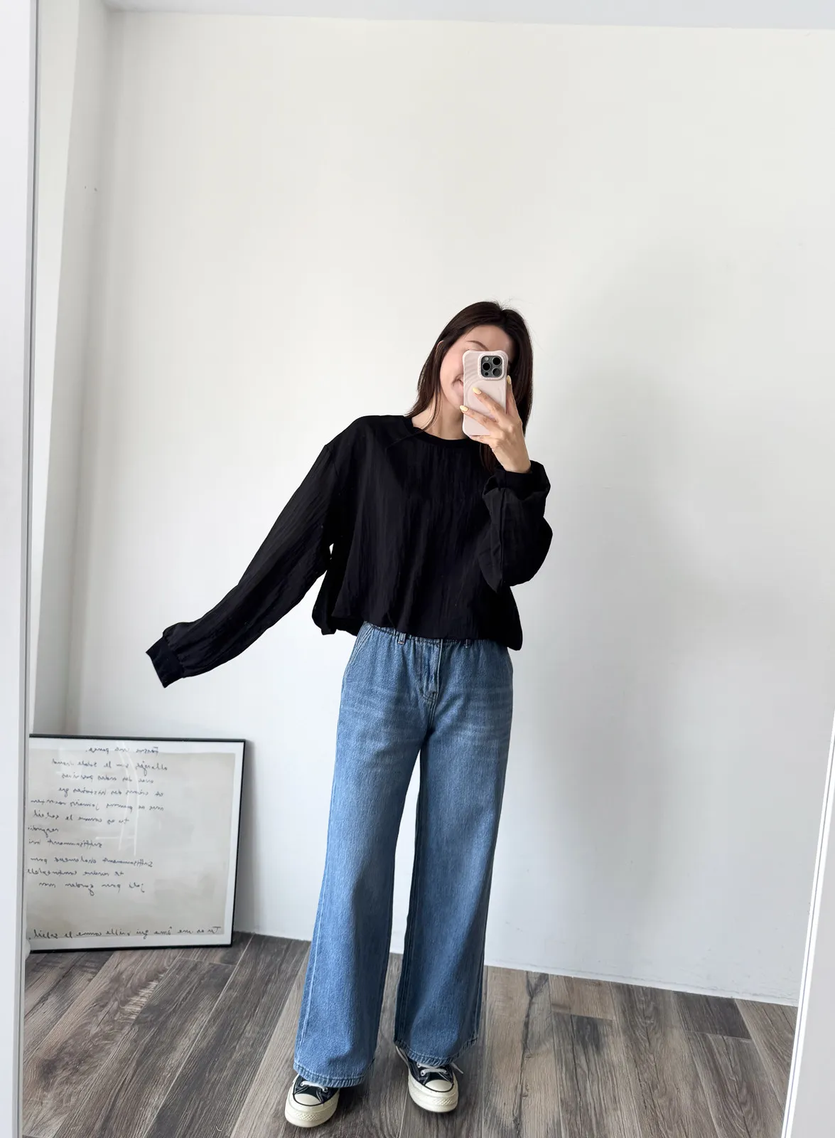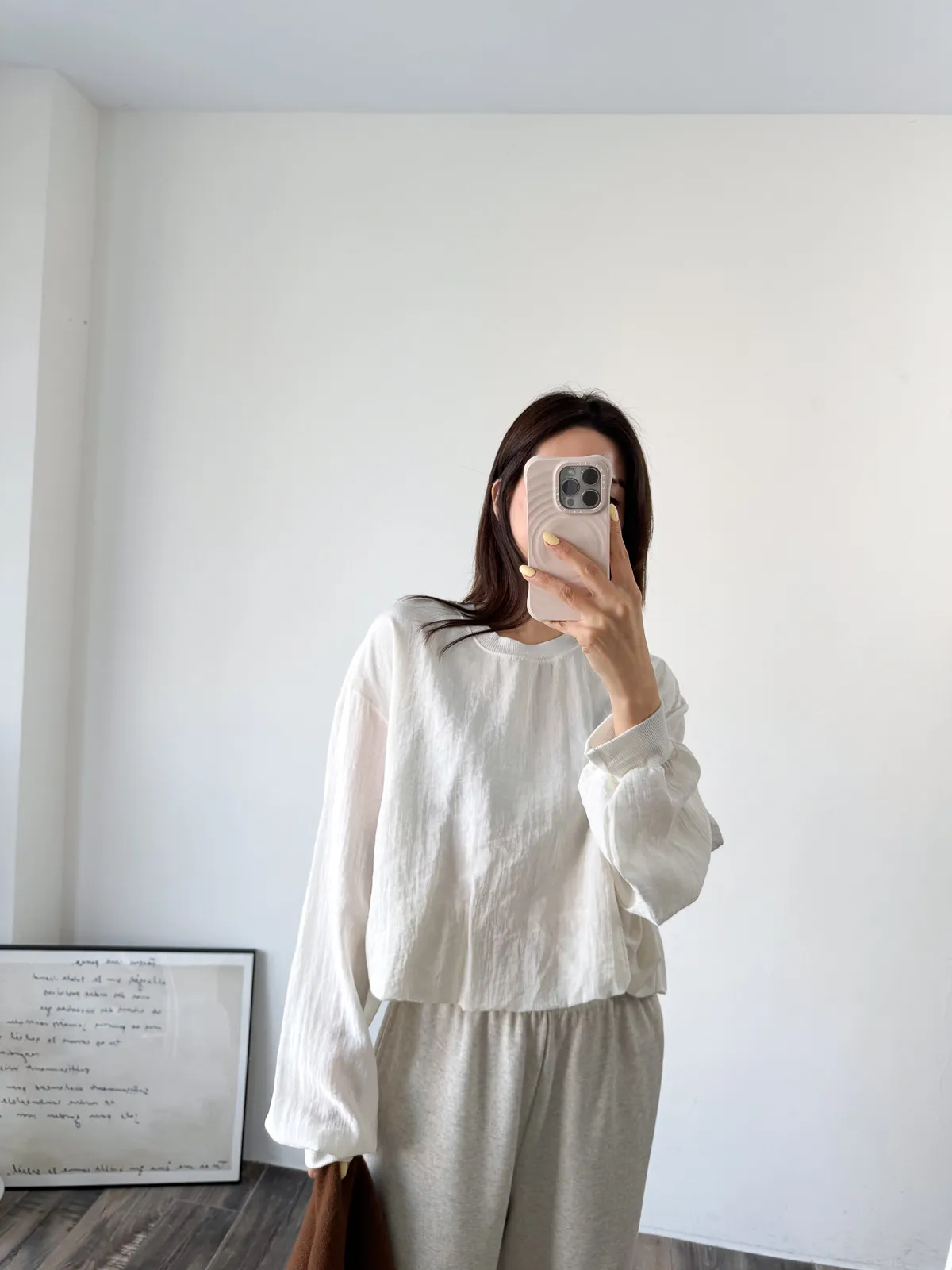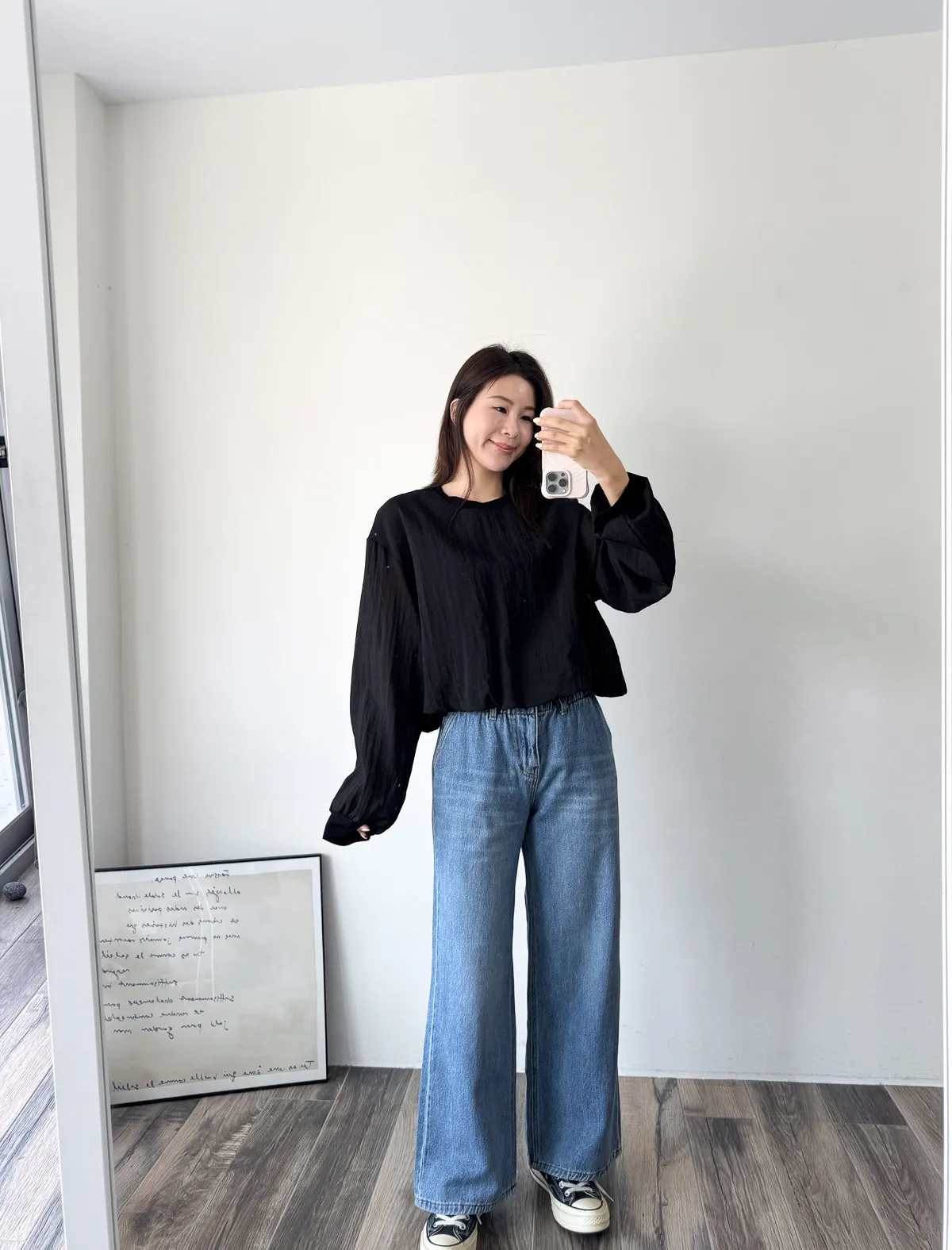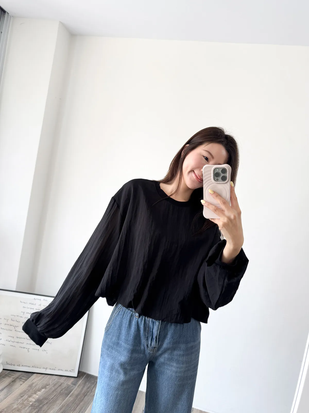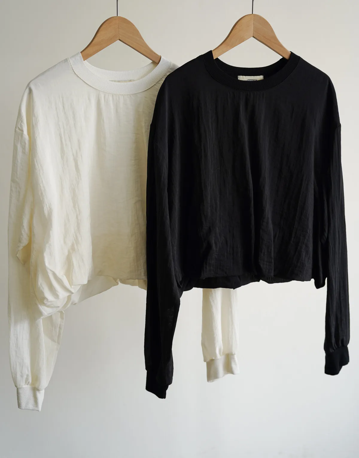 棉拼聚脂纖維 / 無彈性 這款我私心很愛~~我覺得好特別內! 版型就像一般短版縮口T但材質完全不是一般棉! 整體布料很薄帶有微微光澤和透感 是穿上就簡單很有型的那種款式! 下擺設計直接往內縮沒有鬆緊帶不用擔心勒肚子 袖口和領口則是薄薄的棉質拼接穿脫可以順暢不卡卡~ Model 158/48 (腰25吋 臀35.5吋) detail//