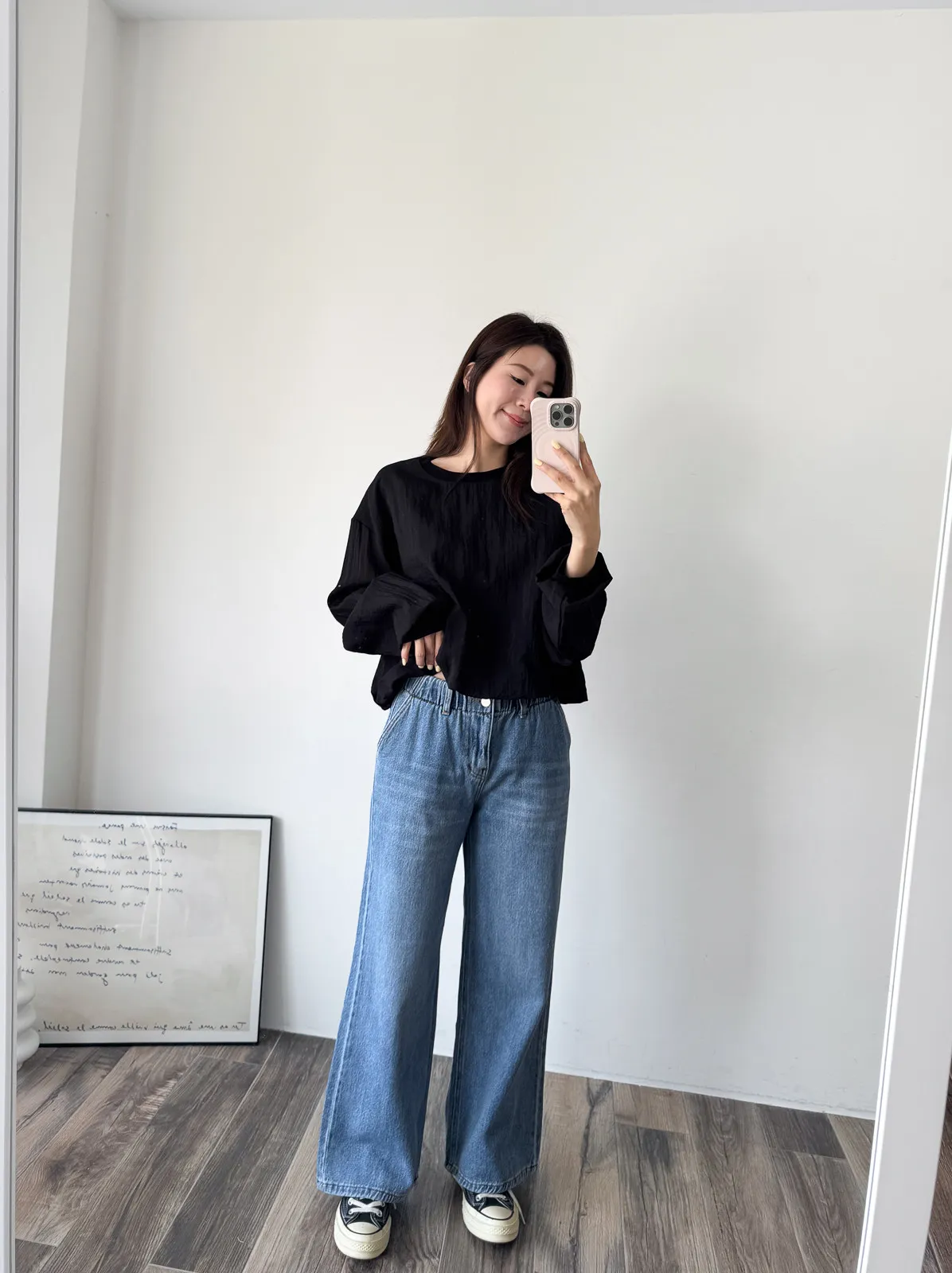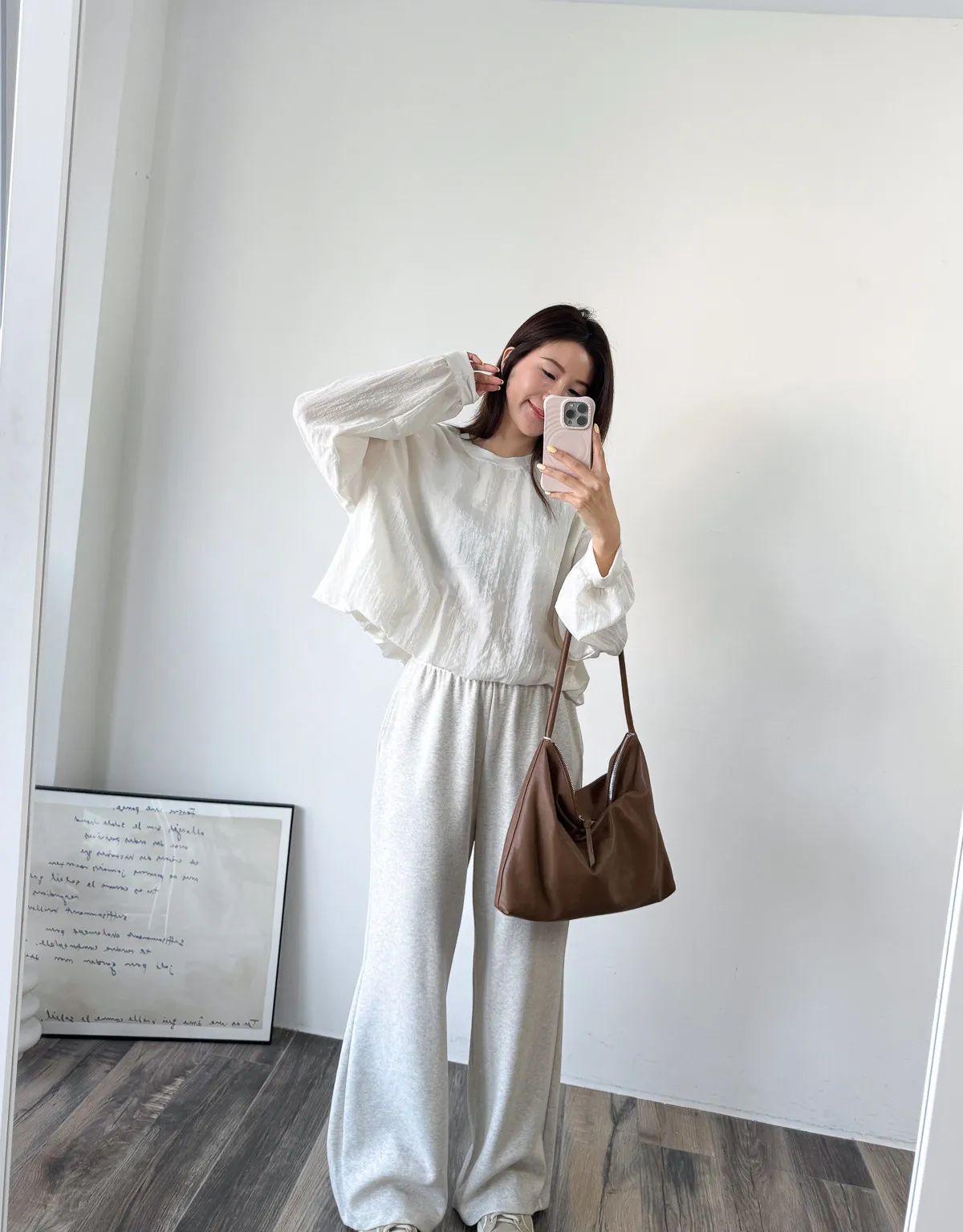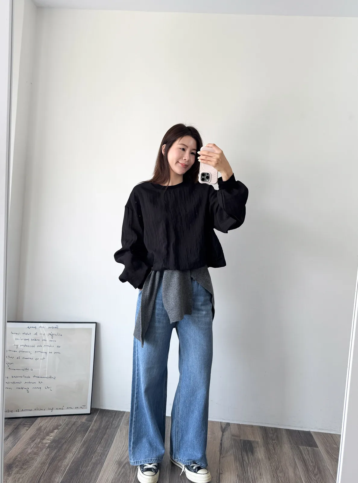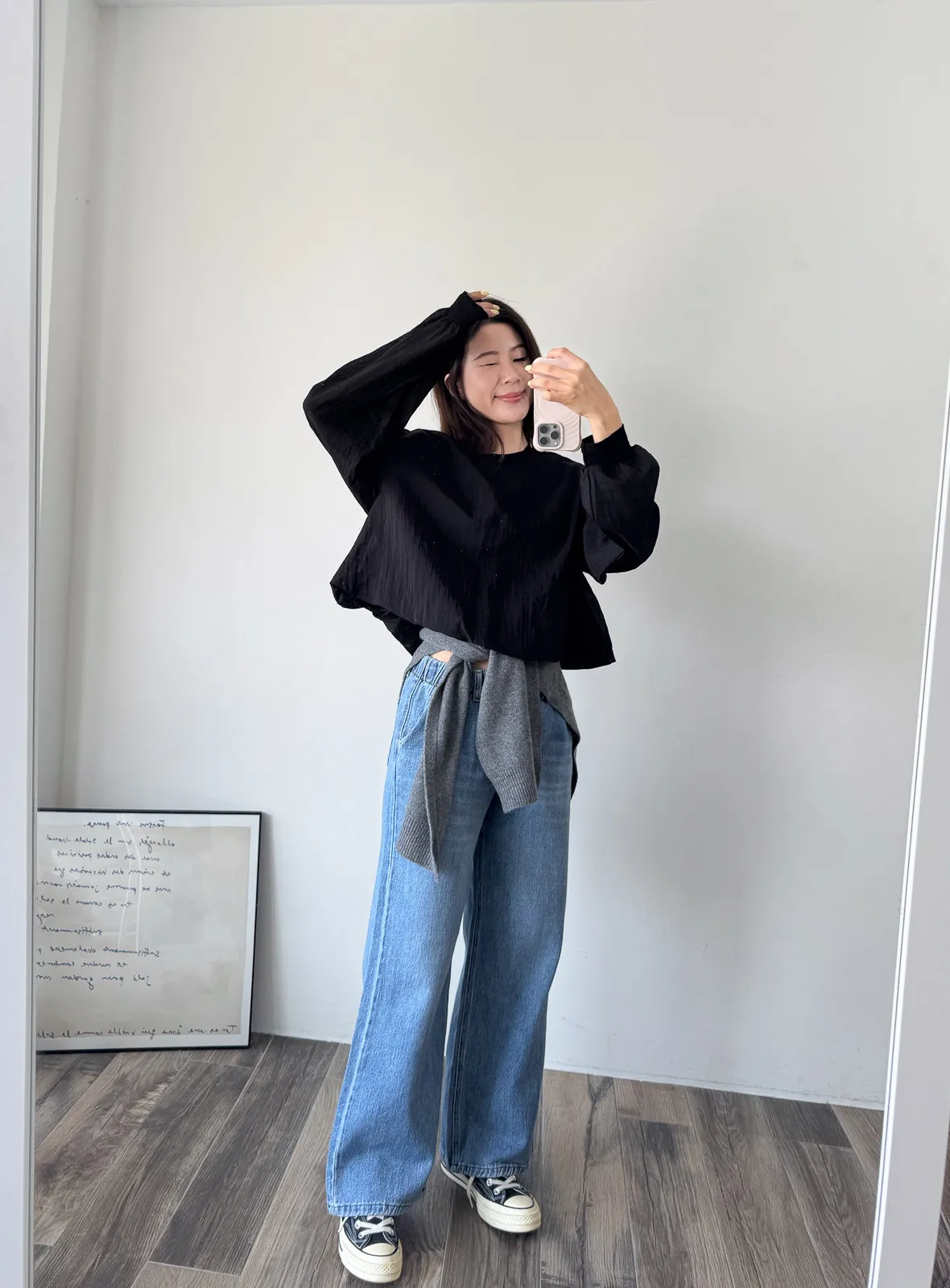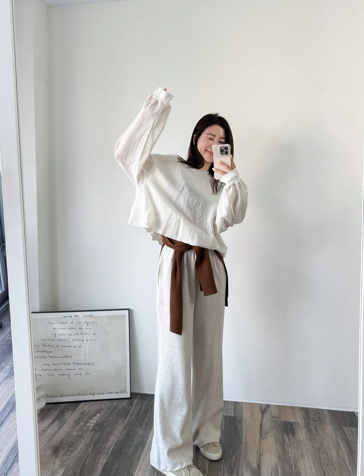 棉拼聚脂纖維 / 無彈性 這款我私心很愛~~我覺得好特別內! 版型就像一般短版縮口T但材質完全不是一般棉! 整體布料很薄帶有微微光澤和透感 是穿上就簡單很有型的那種款式! 下擺設計直接往內縮沒有鬆緊帶不用擔心勒肚子 袖口和領口則是薄薄的棉質拼接穿脫可以順暢不卡卡~ Model 158/48 (腰25吋 臀35.5吋) detail//