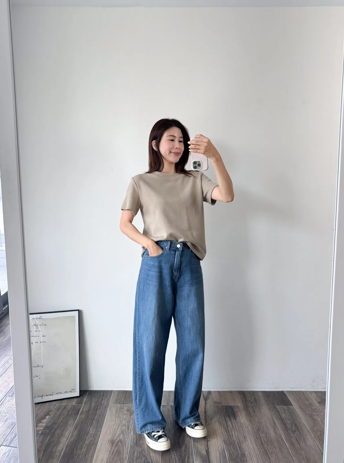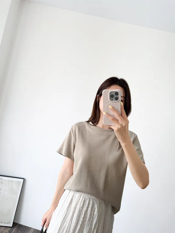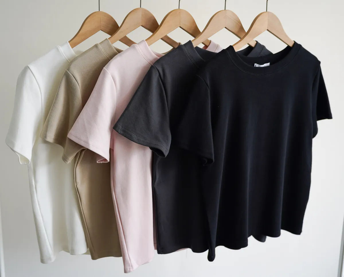 棉質 / 有彈性大推這款~~版型微鬆不貼肉 衣長完美適中不紮也好看 布料本身有一點點厚度穿起來很挺、有精神! 材質不必擔心一定是舒服才推薦 非常實穿的版型很可以直接閉眼包色!! 背面還有做一條立體中線穿起來後背面弧度也很漂亮~ *made in china Model 158/48 (腰25吋 臀35.5吋) detail//