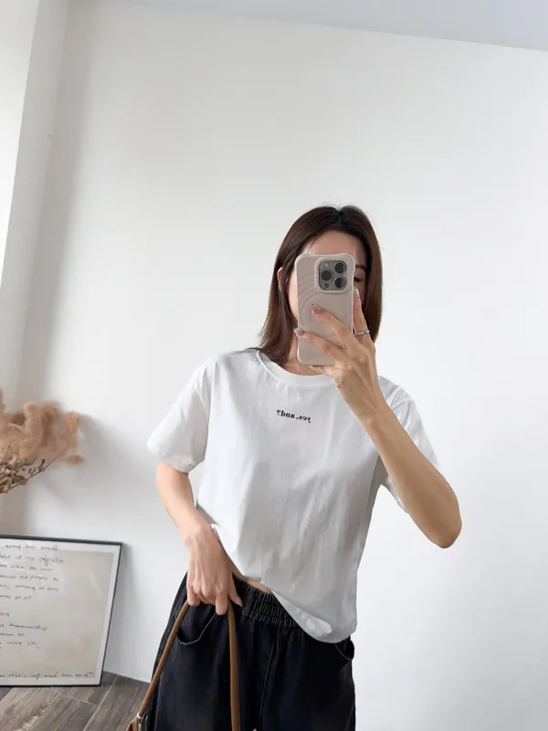 棉質 / 有彈性 大家應該會很喜歡這個版型~ 微鬆不貼身 衣長完美不紮也可以俐落有型~ 布料很挺但不會太厚重 白色單穿也不會太透~ 超級讚! Model 158/48 (腰26吋 臀35.5吋) detail/