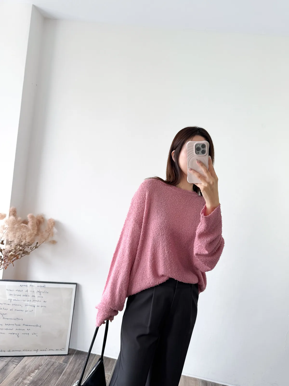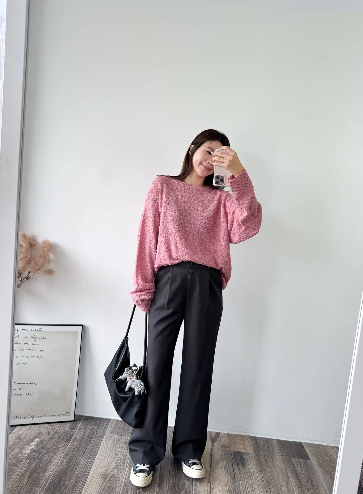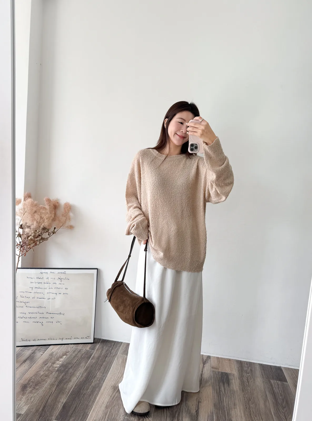被這款的顏色整個吸引住! 還有布料上的鬚鬚感 好時髦好美呀~~ 這個杏無敵美~ 不會偏膚也不會偏灰 就是很溫柔只有美可以形容的杏色! 粉色也是廠商一拿出來我眼睛發亮的色調 這個粉太可愛了~~~ 配上牛仔褲也超好看>< 版型整體寬鬆長版垂墜度也很夠,穿上身=瘦 (笑 Model 158/48 (腰26吋 臀35.5吋) detail/