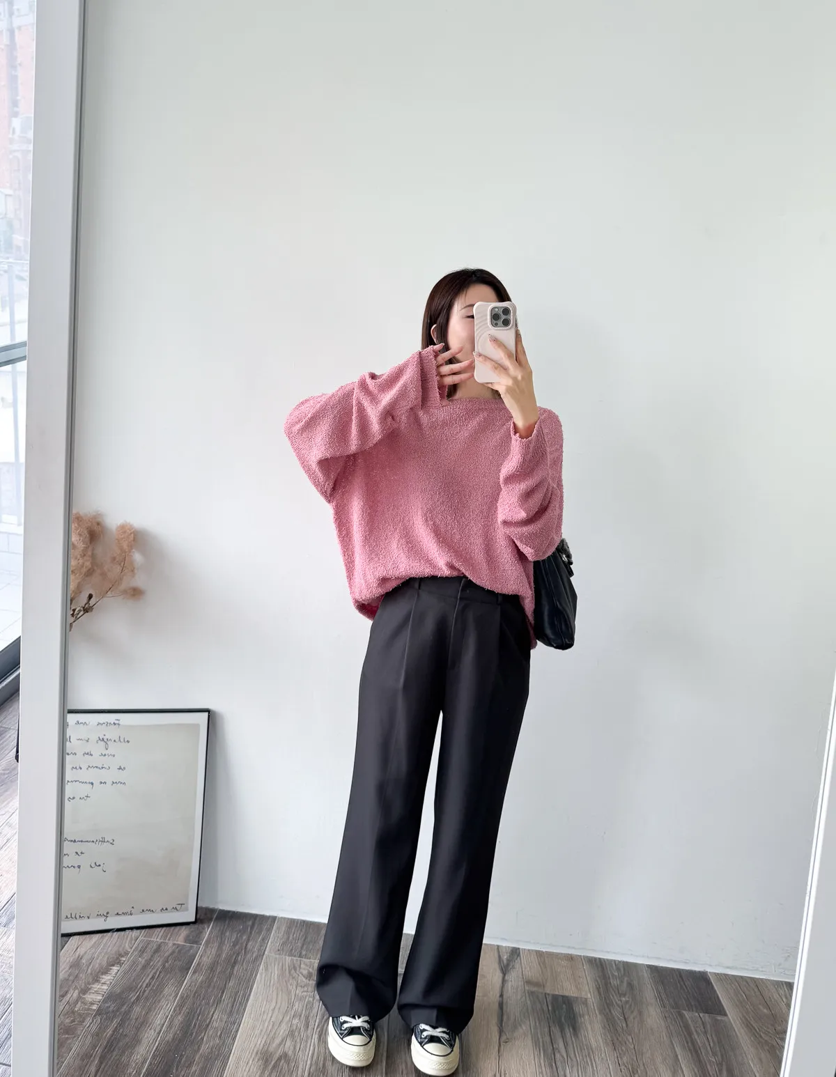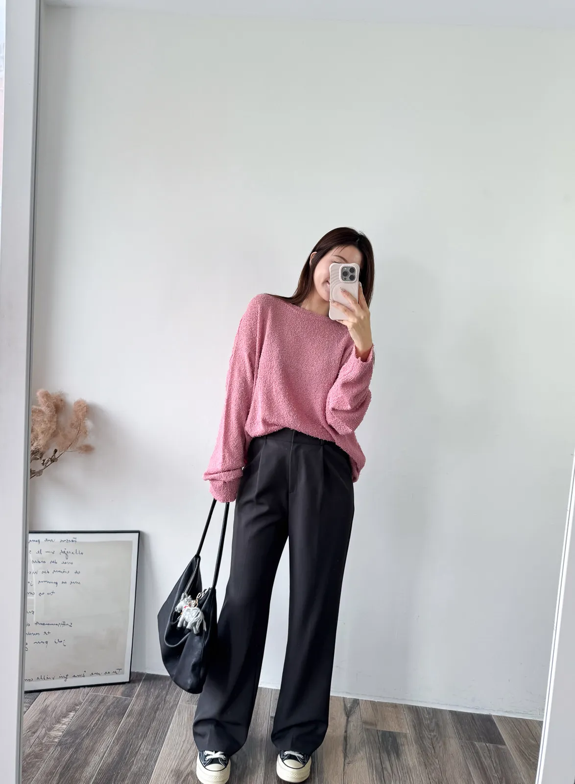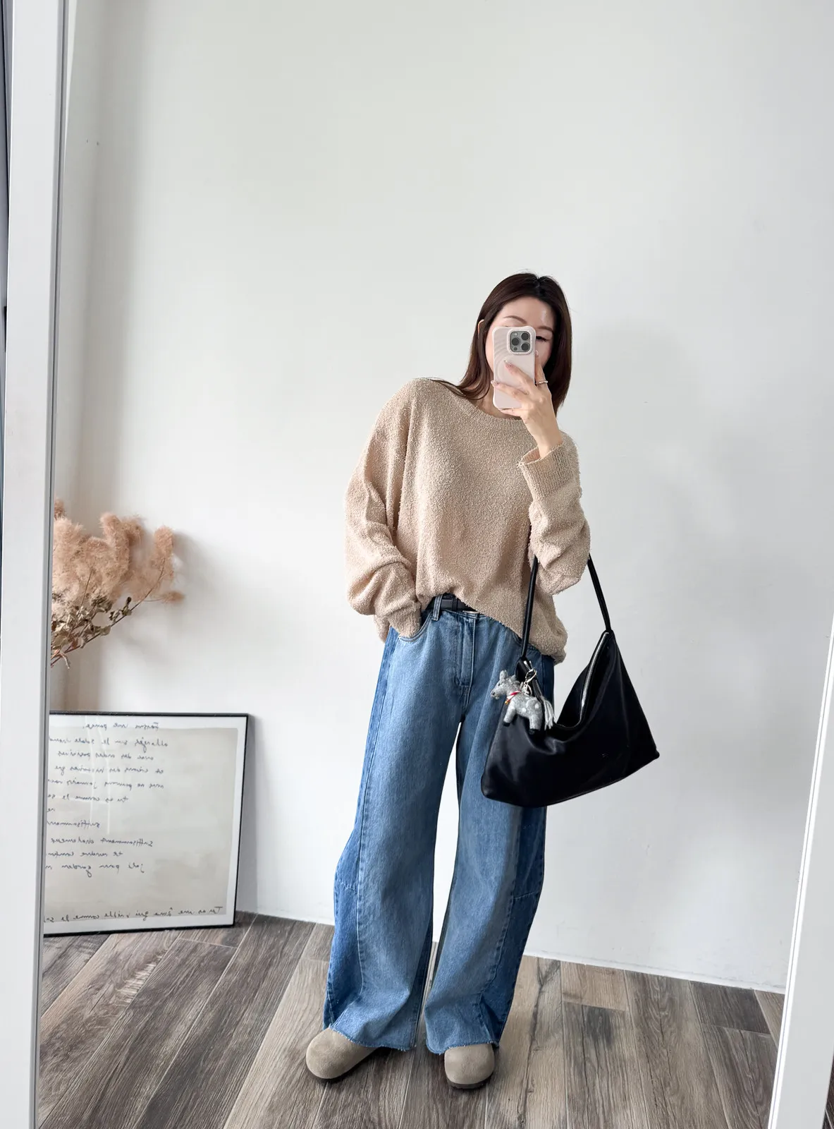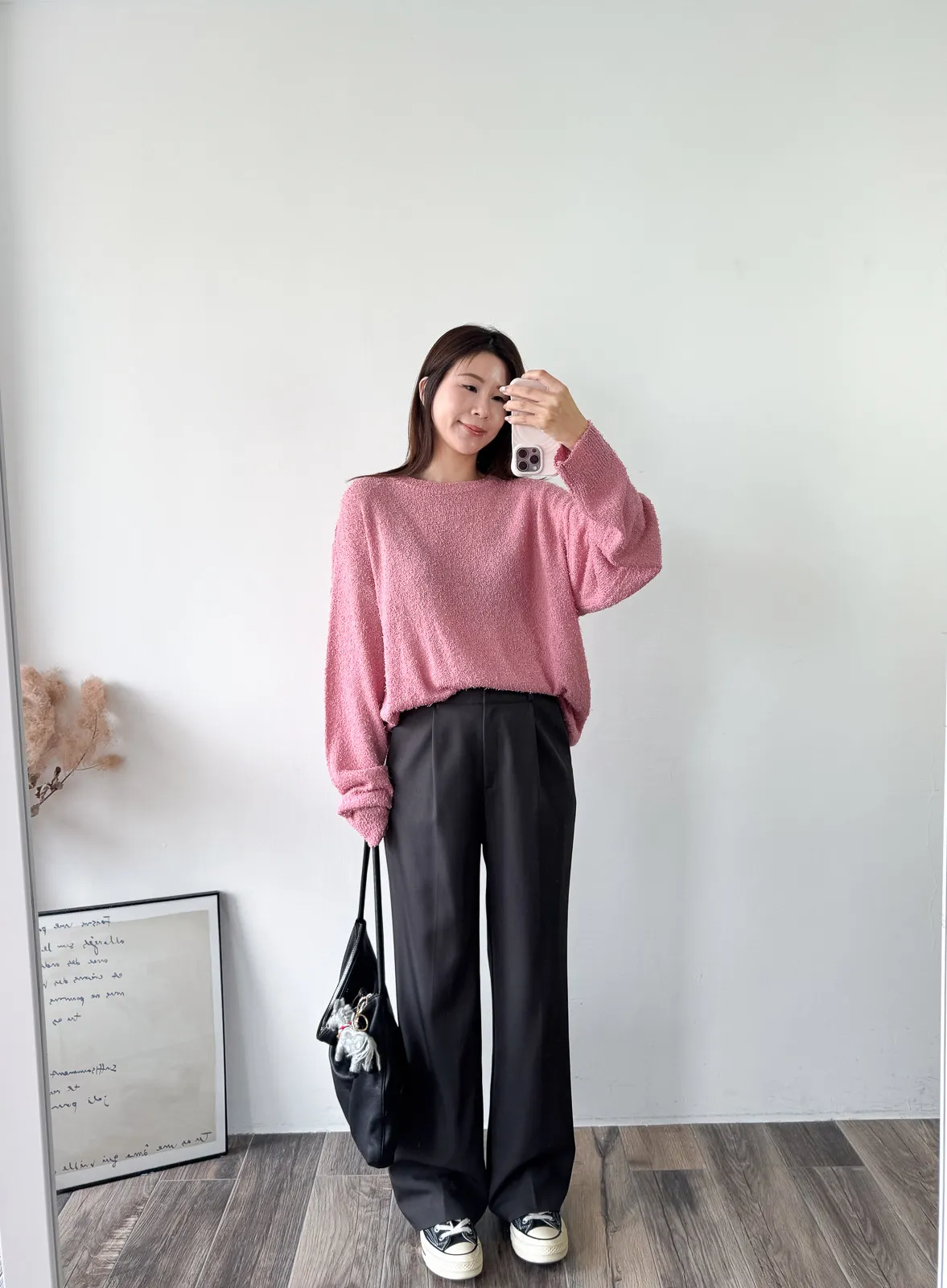 被這款的顏色整個吸引住! 還有布料上的鬚鬚感 好時髦好美呀~~ 這個杏無敵美~ 不會偏膚也不會偏灰 就是很溫柔只有美可以形容的杏色! 粉色也是廠商一拿出來我眼睛發亮的色調 這個粉太可愛了~~~ 配上牛仔褲也超好看>< 版型整體寬鬆長版垂墜度也很夠,穿上身=瘦 (笑 Model 158/48 (腰26吋 臀35.5吋) detail/