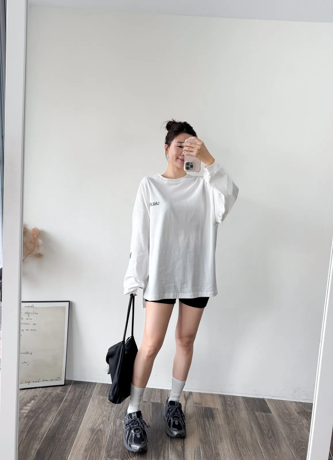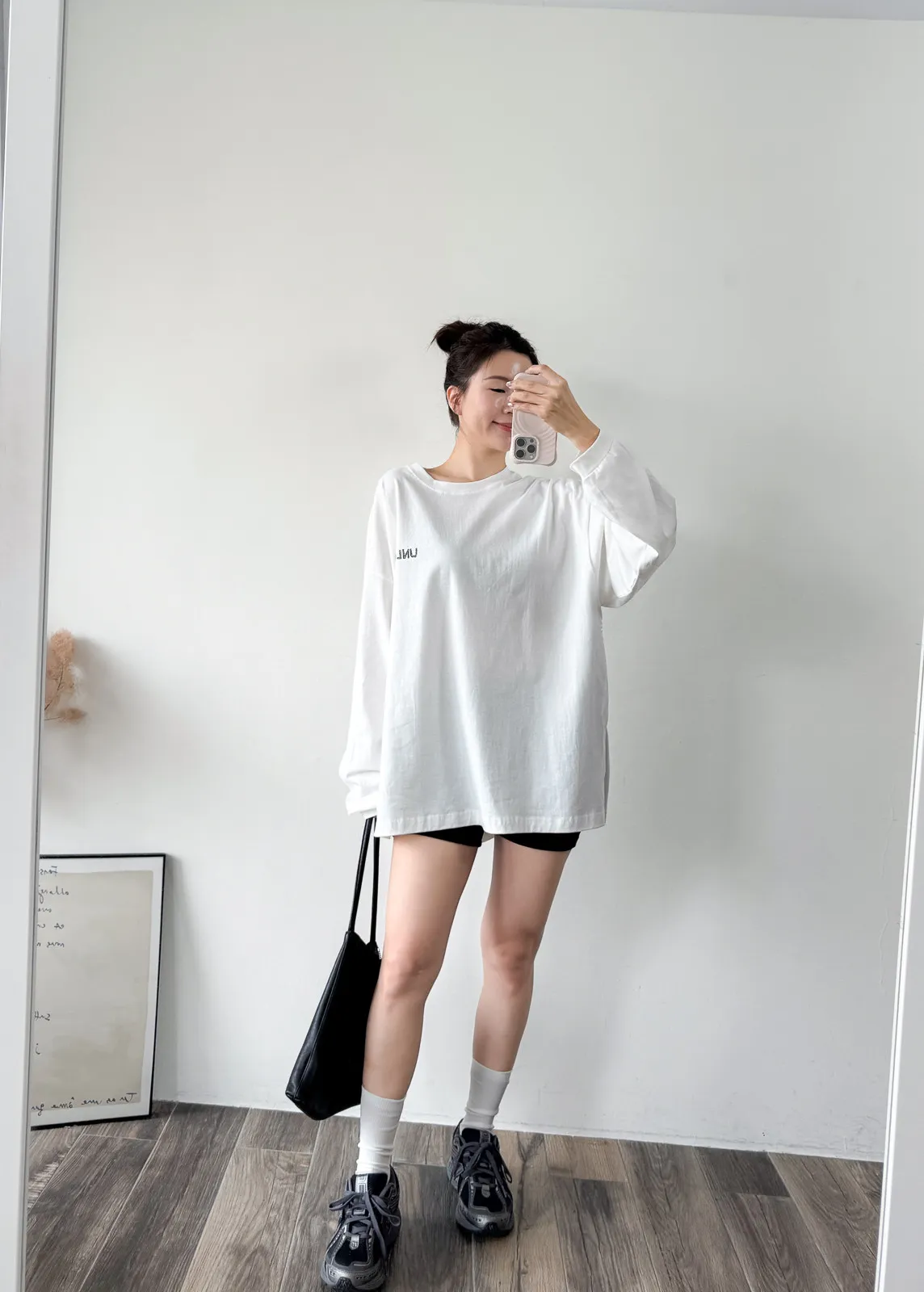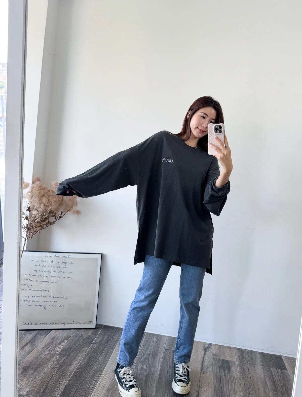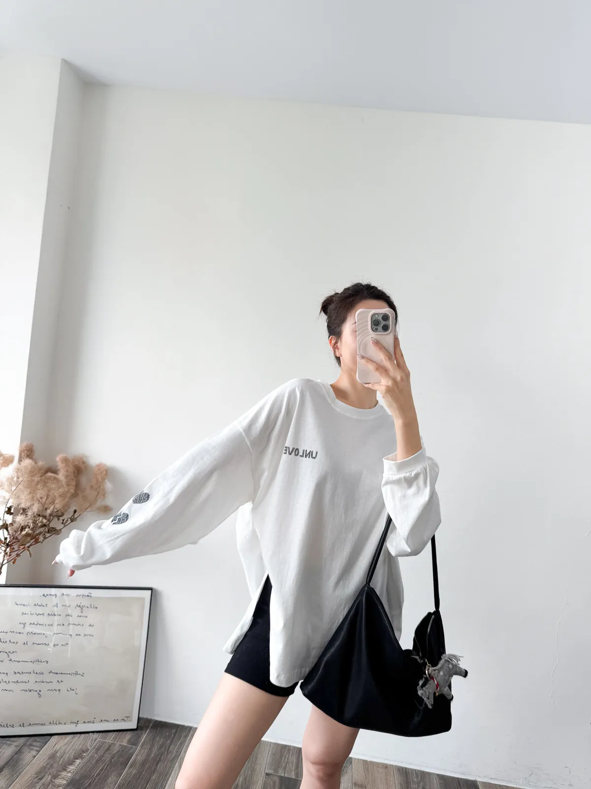 棉質 / 有彈性 這件會不會太可愛手袖上的兩個愛心 一個是完整愛心 一個是心碎愛心XD 整件寬鬆大大件非常推薦高個和M、L身形入手 我158穿稍微長一點但剛好可以搭配四分短褲非常有安全感~ 袖口有微微泡袖感背面是手繪的英文字體 這款整件就是又特別又可愛讓人必須收藏XD Model 158/48 (腰26吋 臀35.5吋) detail/