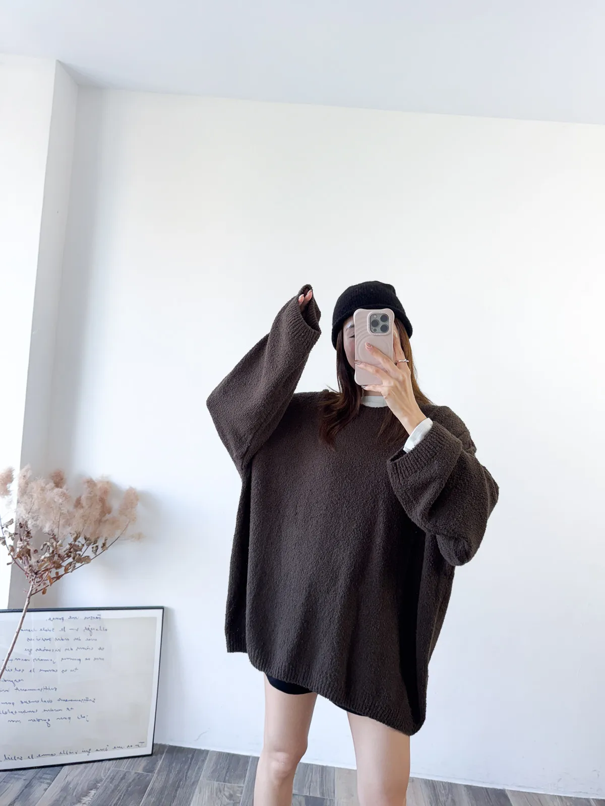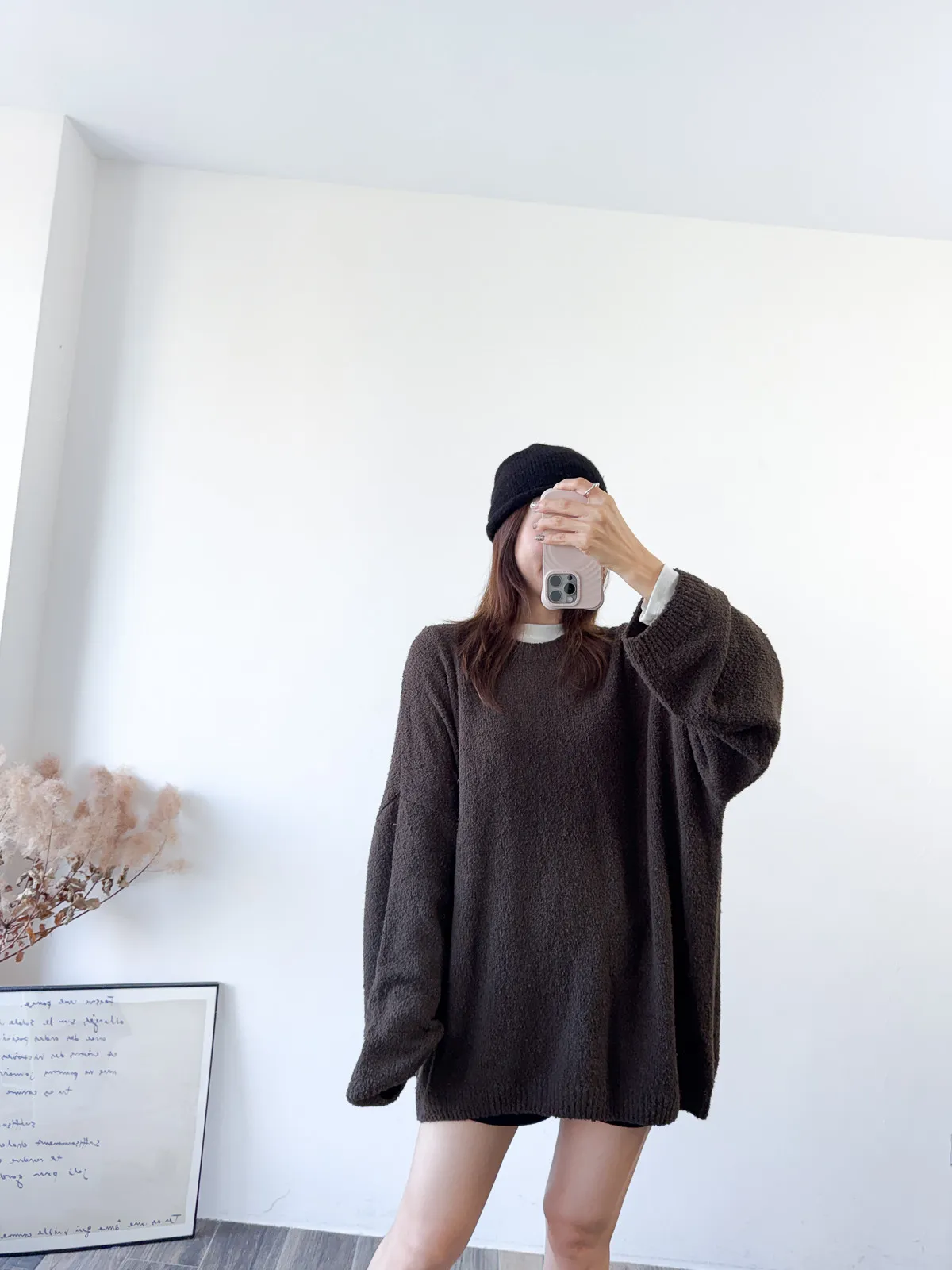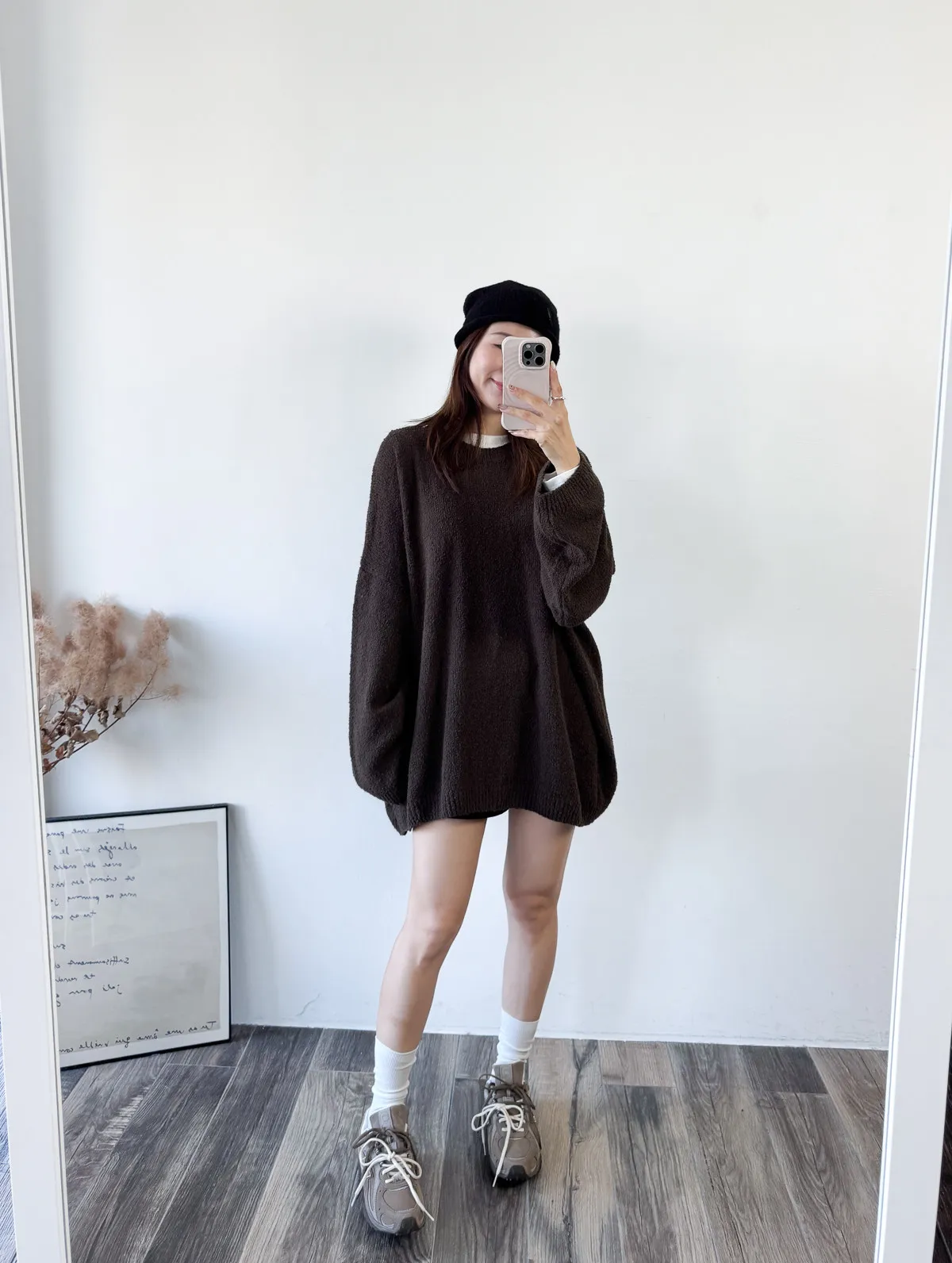 針織料 / 有彈性這件很厲害耶~各種身形都可以! S~XL穿都好看 小個子穿可以搭配短褲穿出下半身失蹤感 高個穿可以當寬大上衣 連我先生178/66寬肩膀穿都OK~ 這款算是薄料純針織無混毛 不怕冷的話很可以入手~~ 我超愛這款的顏色寶藍好可愛咖色好質感! Model 158/48(腰26 臀35.5吋) detail/