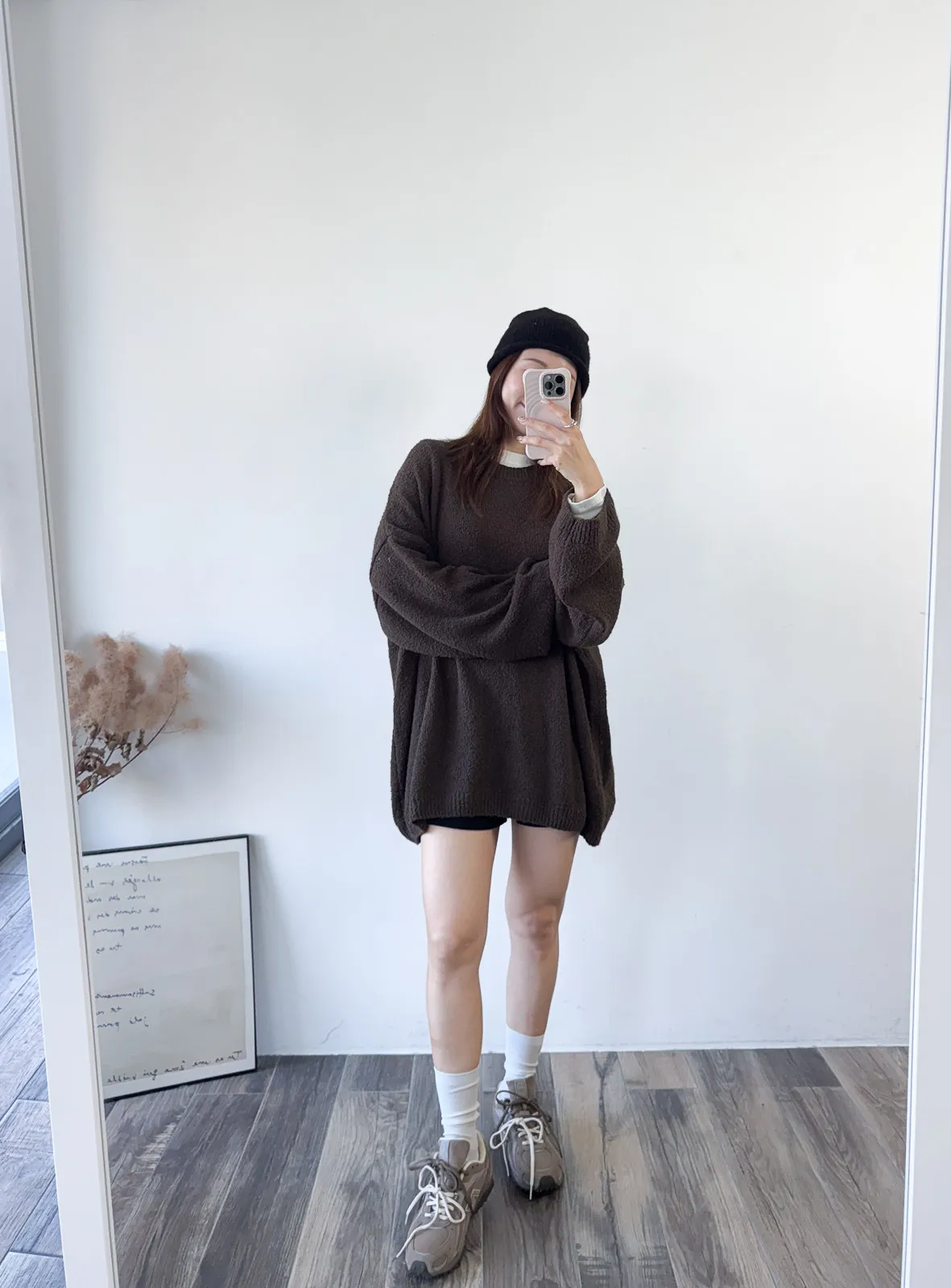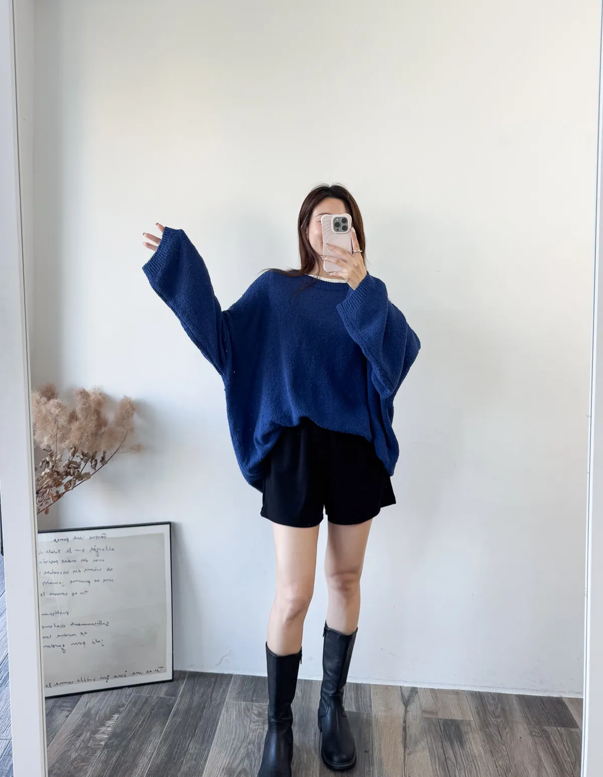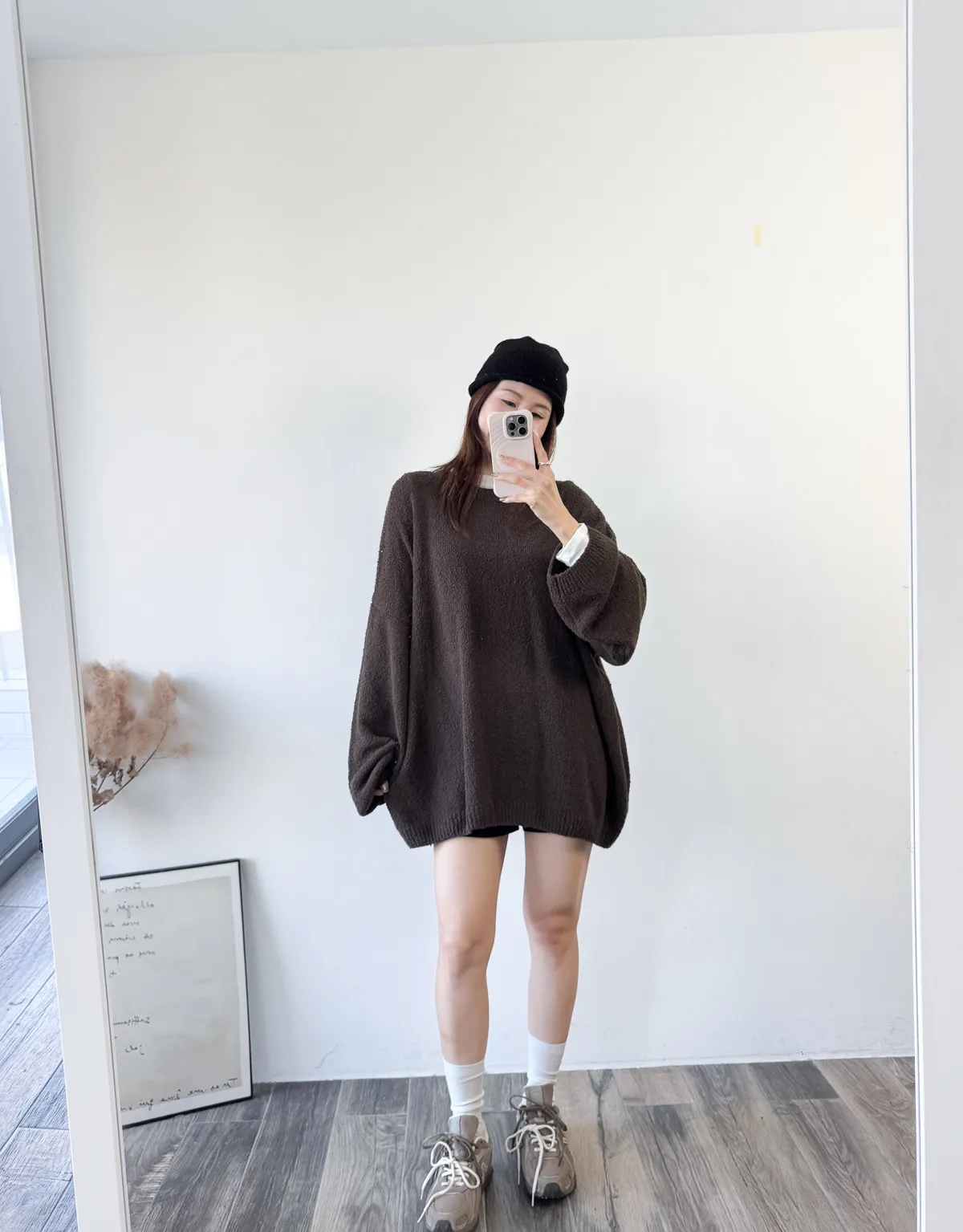 針織料 / 有彈性這件很厲害耶~各種身形都可以! S~XL穿都好看 小個子穿可以搭配短褲穿出下半身失蹤感 高個穿可以當寬大上衣 連我先生178/66寬肩膀穿都OK~ 這款算是薄料純針織無混毛 不怕冷的話很可以入手~~ 我超愛這款的顏色寶藍好可愛咖色好質感! Model 158/48(腰26 臀35.5吋) detail/