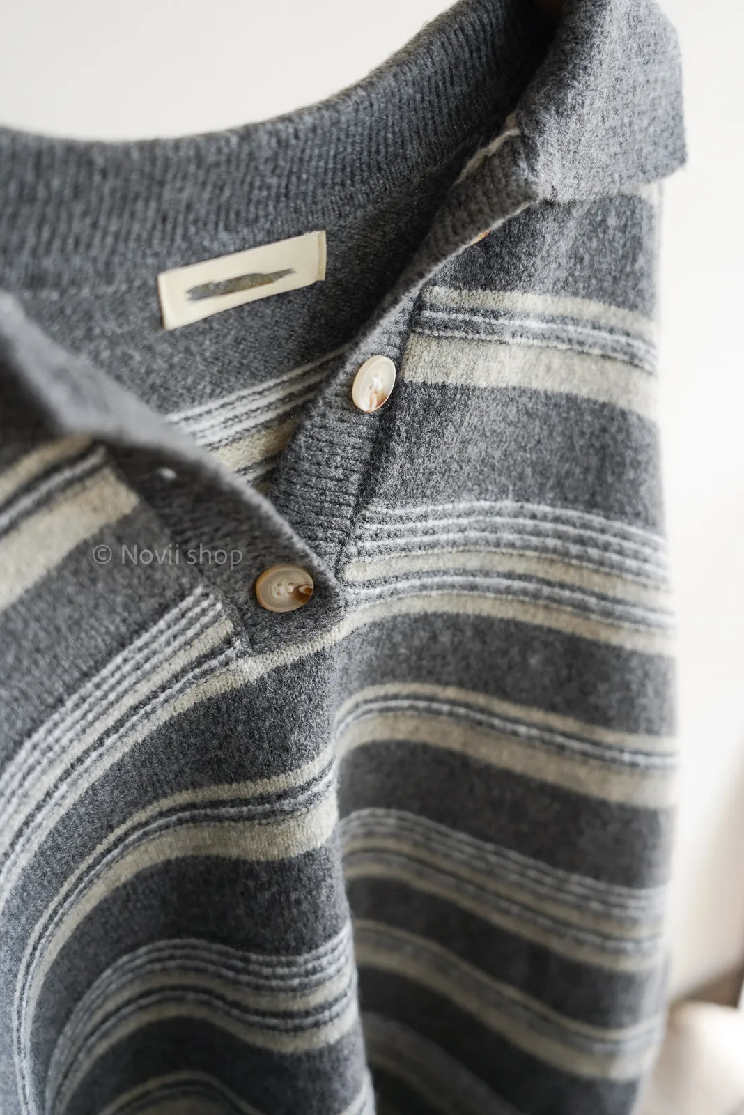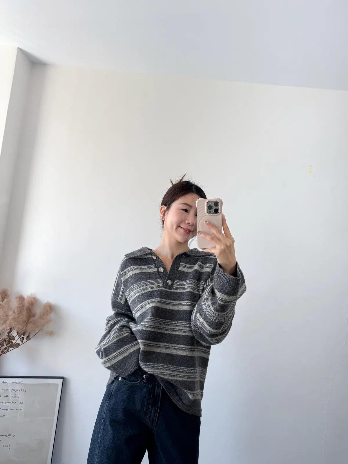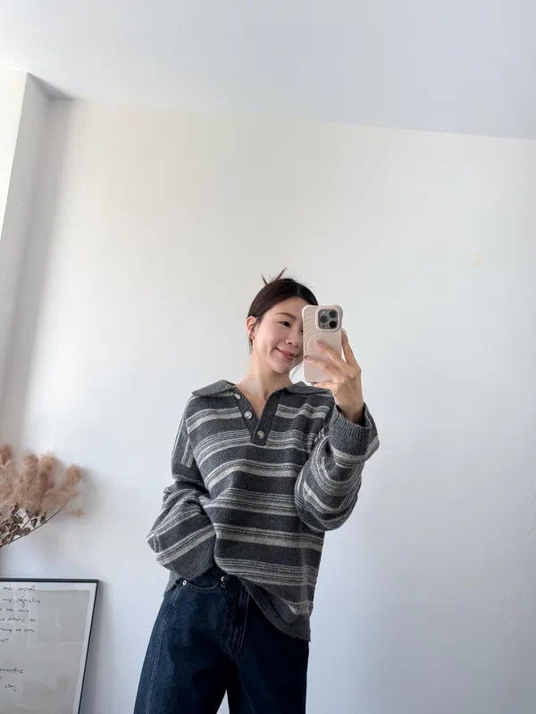 針織毛料 羊毛15% / 有彈性 近年韓國有混羊毛的毛衣材質都越來越親膚 不像以往那樣扎皮膚了! 這件手感QQ軟棉棉超級舒服! 配色我自己好喜歡~不會太誇張但是一件就很有型 領口三顆扣子配上開V把領口往後拉一點 慵懶又漂亮! Model 158/48(腰26 臀35.5吋) detail/