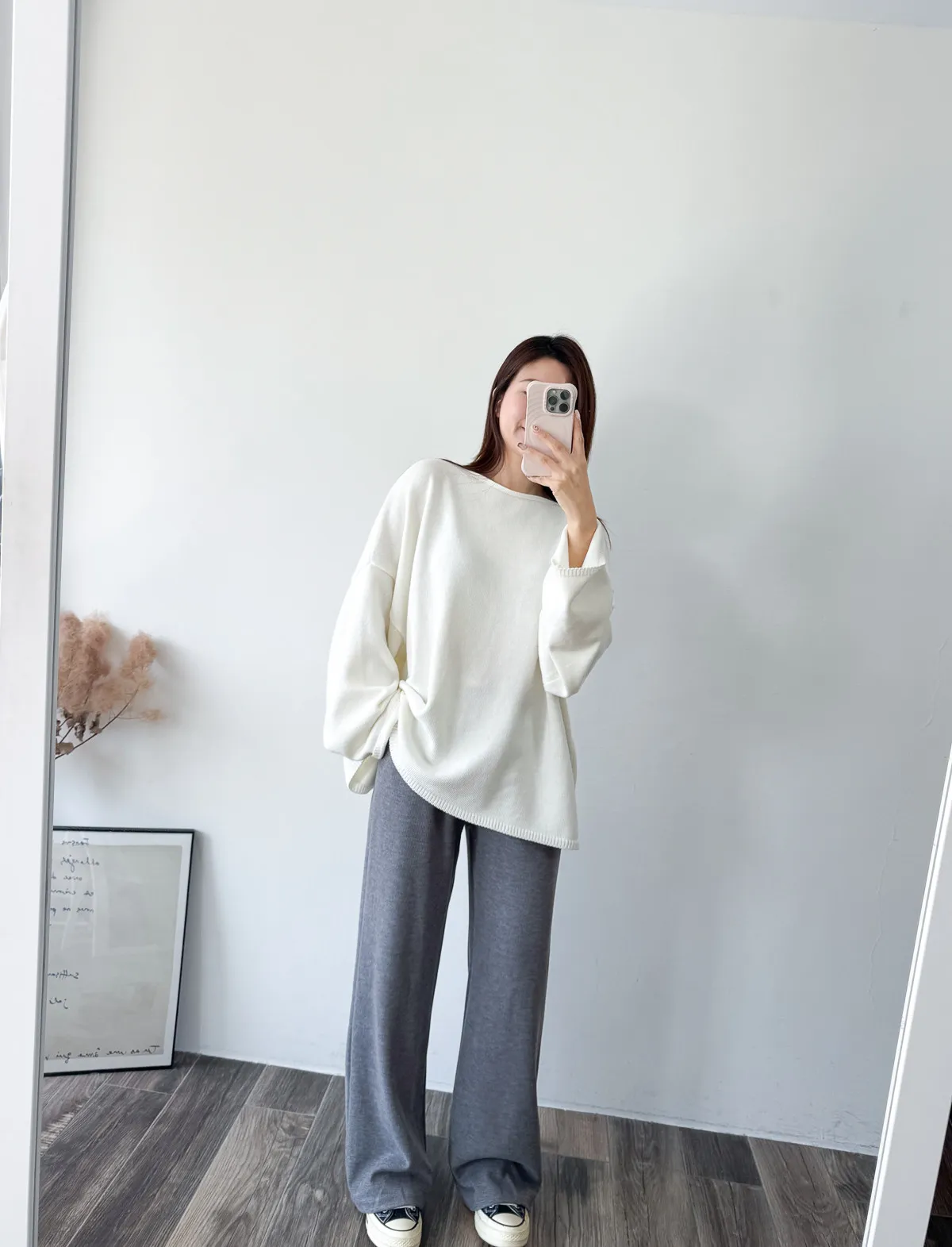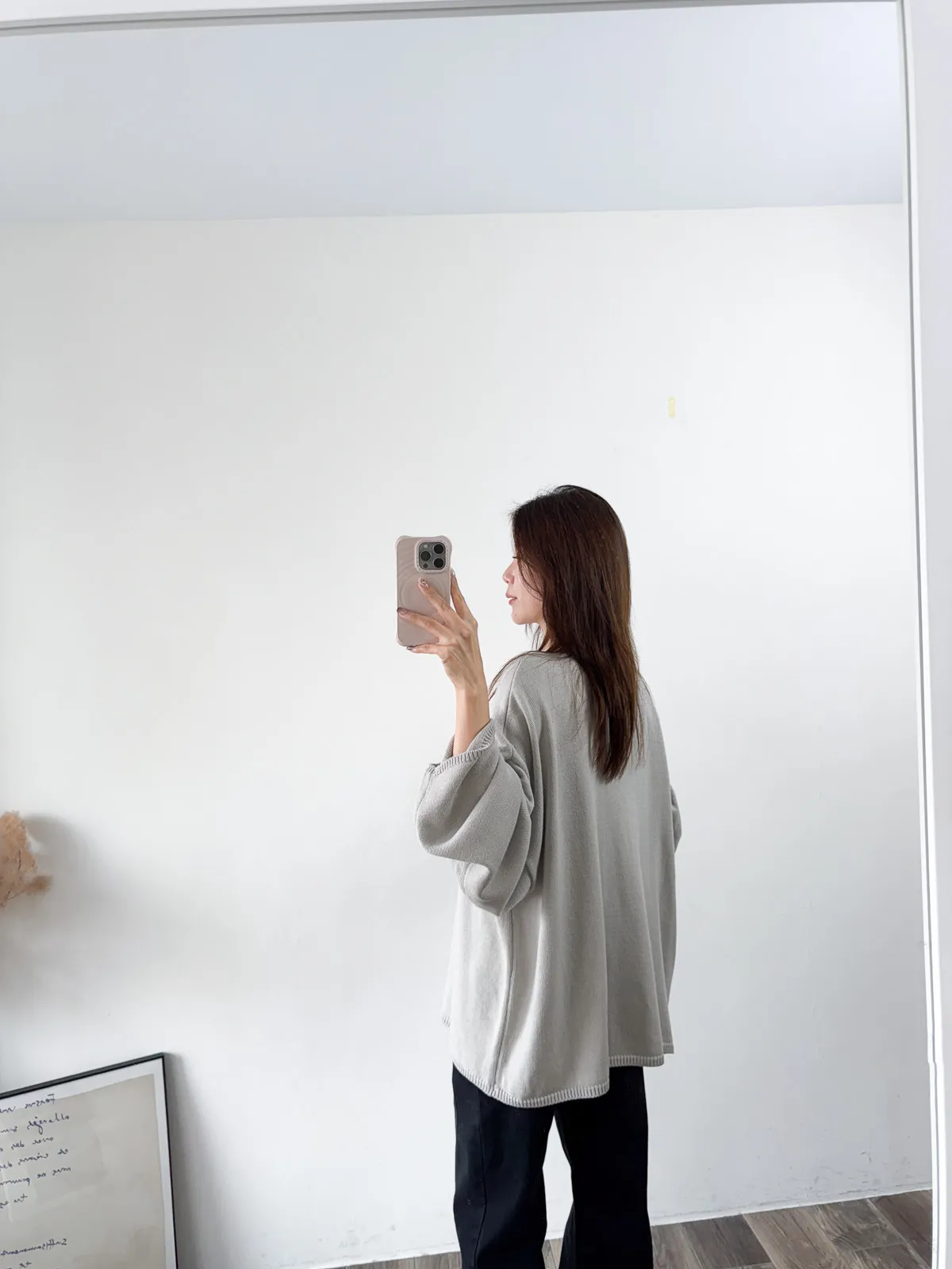 針織料 /有彈性 哇賽~ 我好愛這件有夠慵懶的上衣 布料雖然都是針織但總覺得內裡的觸感又更軟更親膚一些 拿到這件之後已經穿了好多次XD 垂墜度很夠整件寬寬鬆鬆好舒服 領口是做一字領!各部位都是做細收邊 實穿起來不會太過粗獷多了幾分溫柔感呢! 這款的灰杏色很迷人~ 色調好曖昧好好看 Model 158/48(腰26 臀35.5吋)