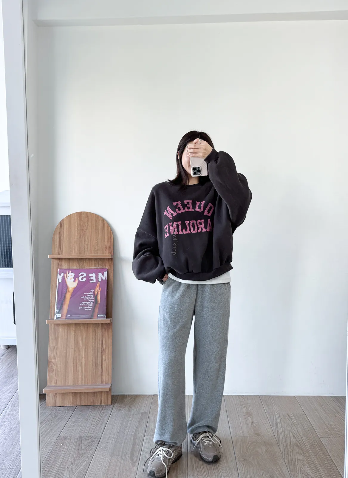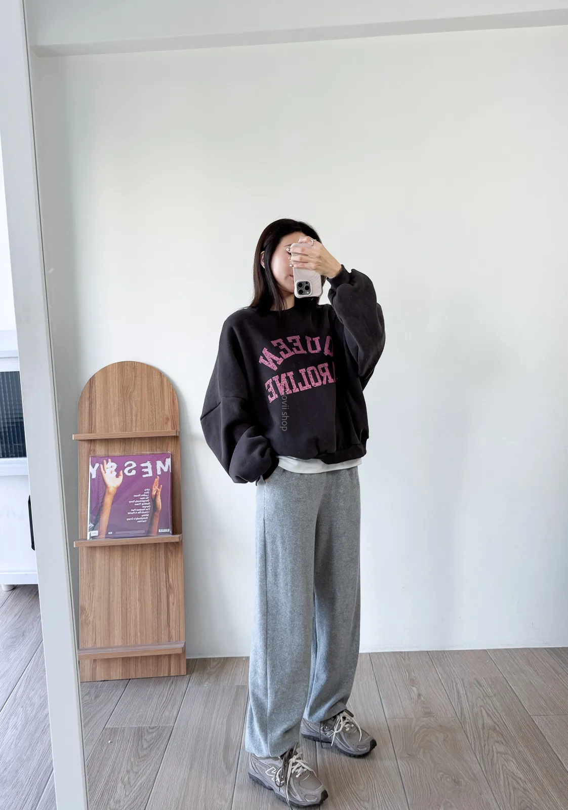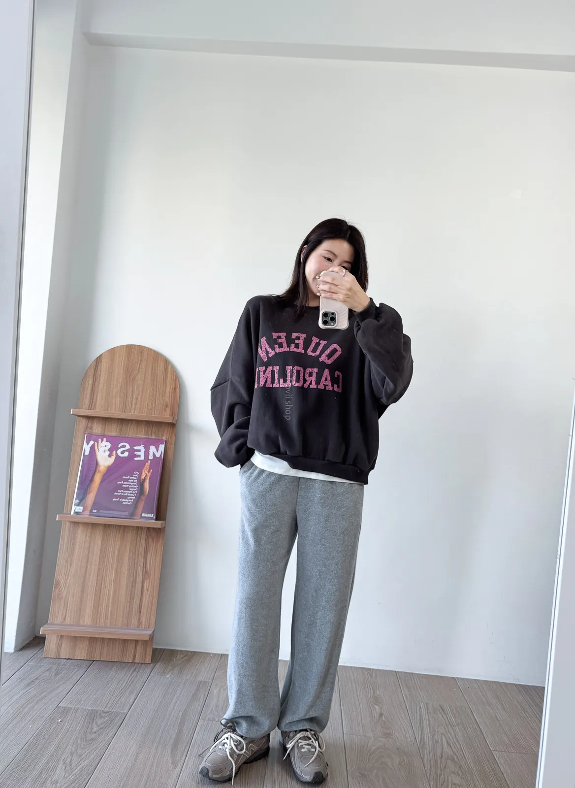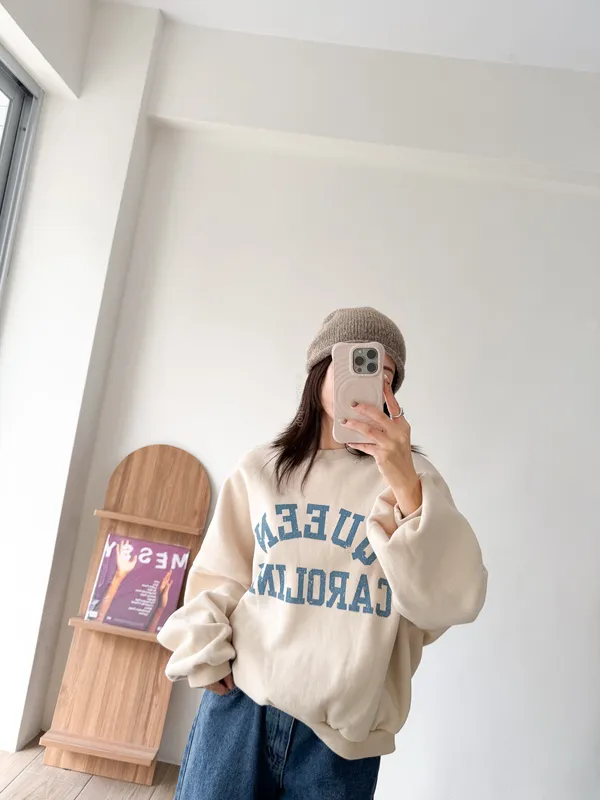 棉質 / 有彈性 / 內刷毛 這款是比較厚實的刷毛T單穿一件就很夠! 版型鬆鬆衣長適中是很好駕馭的版型~ 重點是這配色好好看~ 尤其是深灰配上粉字 太可愛 台灣天氣穿這件就很夠了呢! Model 158/47 (腰26腰 臀35.5吋) detail/