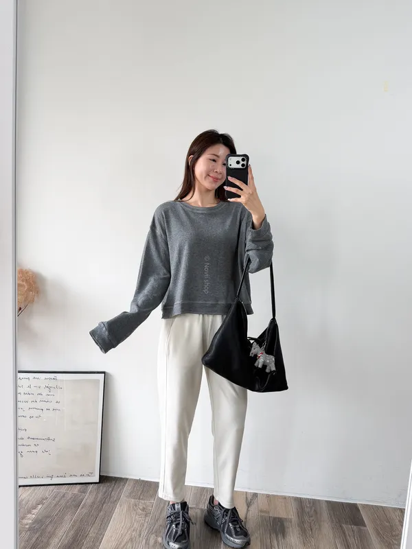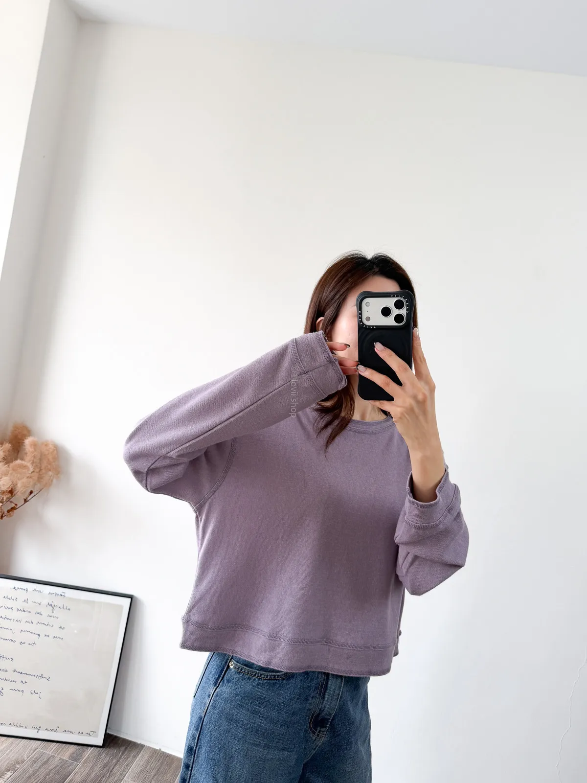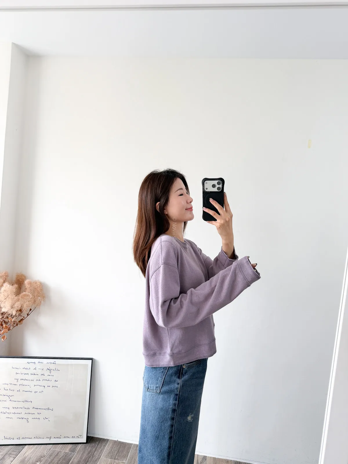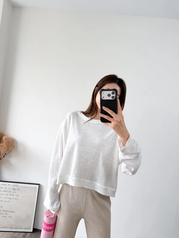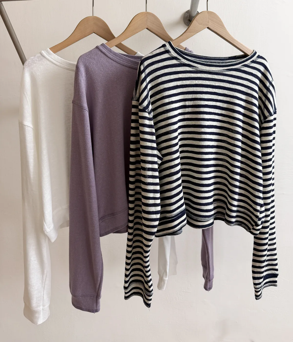 棉質 / 有彈性 帶點微透感的布料~ 很適合春秋換季這種涼涼天氣 很喜歡他的短版鬆鬆感又帶點慵懶. 袖口和下擺都是雙層設計可以讓整件版型更挺一些 除了基本的白灰~ 條紋也意外很可愛 還有不會太亮的紫色也很可愛! Model 158/48 (腰26 臀35.5吋) detail//
