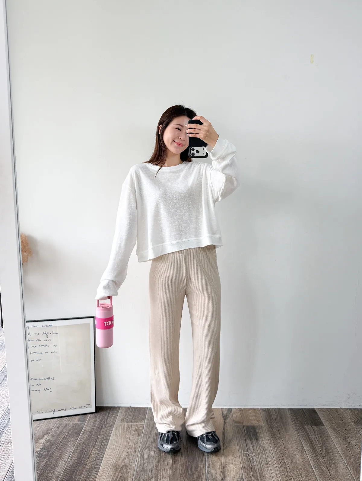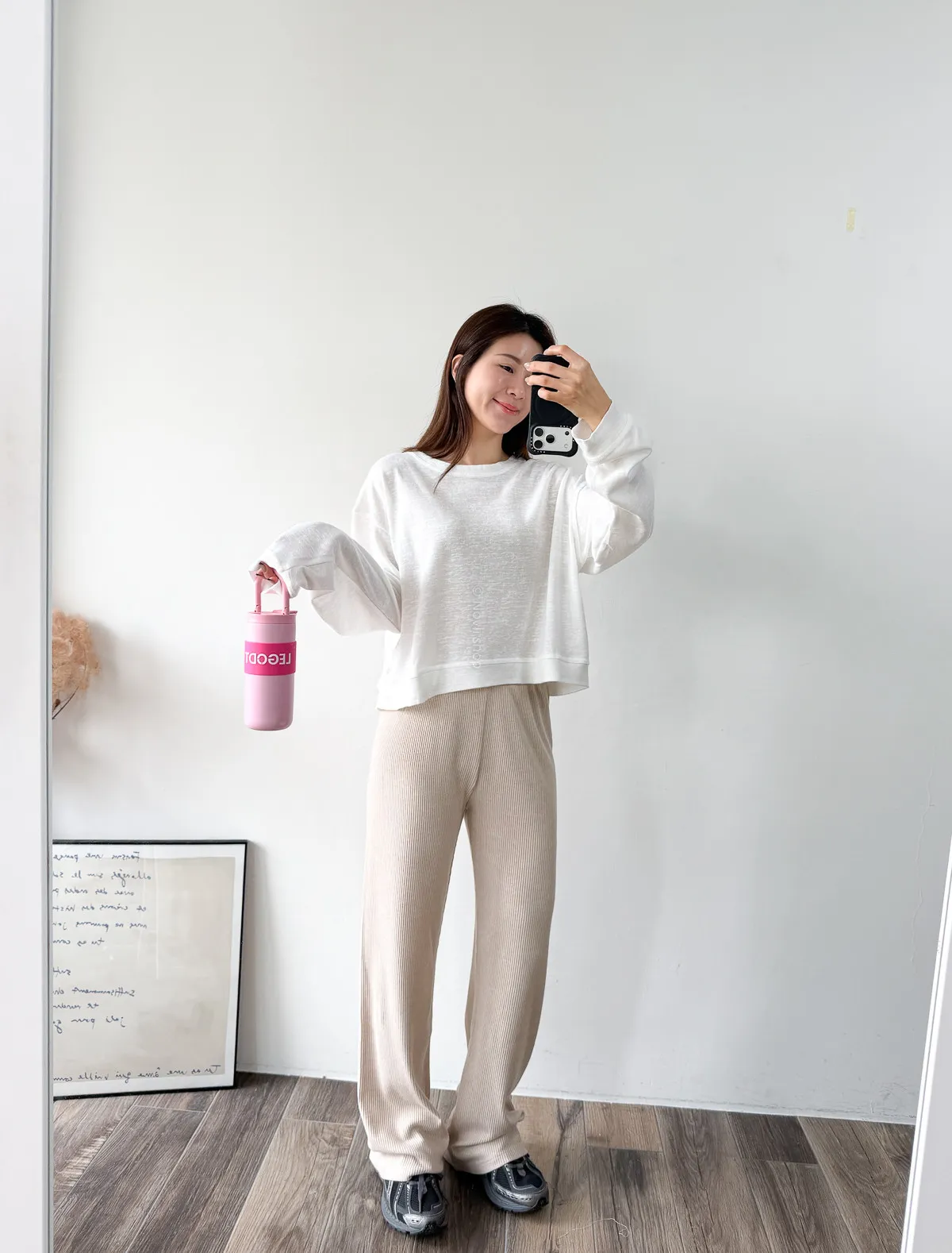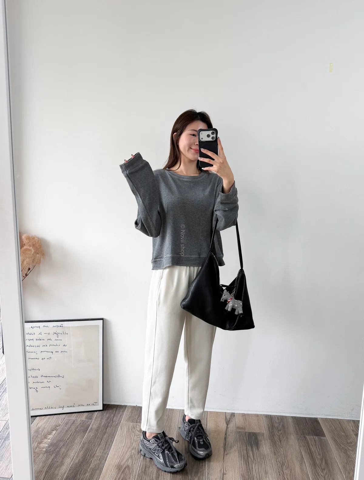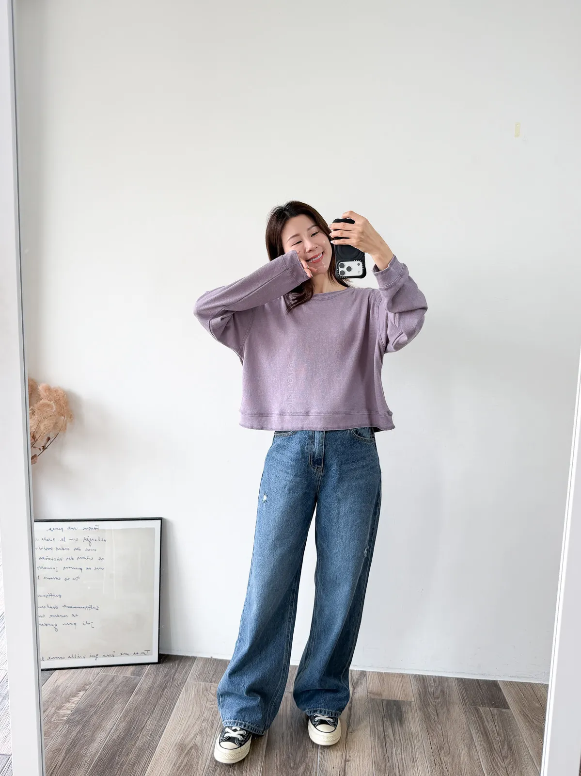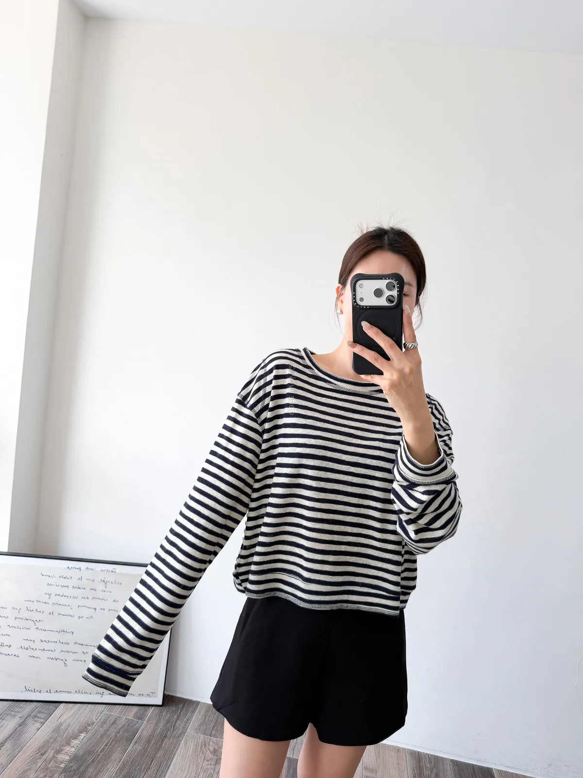 棉質 / 有彈性 帶點微透感的布料~ 很適合春秋換季這種涼涼天氣 很喜歡他的短版鬆鬆感又帶點慵懶. 袖口和下擺都是雙層設計可以讓整件版型更挺一些 除了基本的白灰~ 條紋也意外很可愛 還有不會太亮的紫色也很可愛! Model 158/48 (腰26 臀35.5吋) detail//