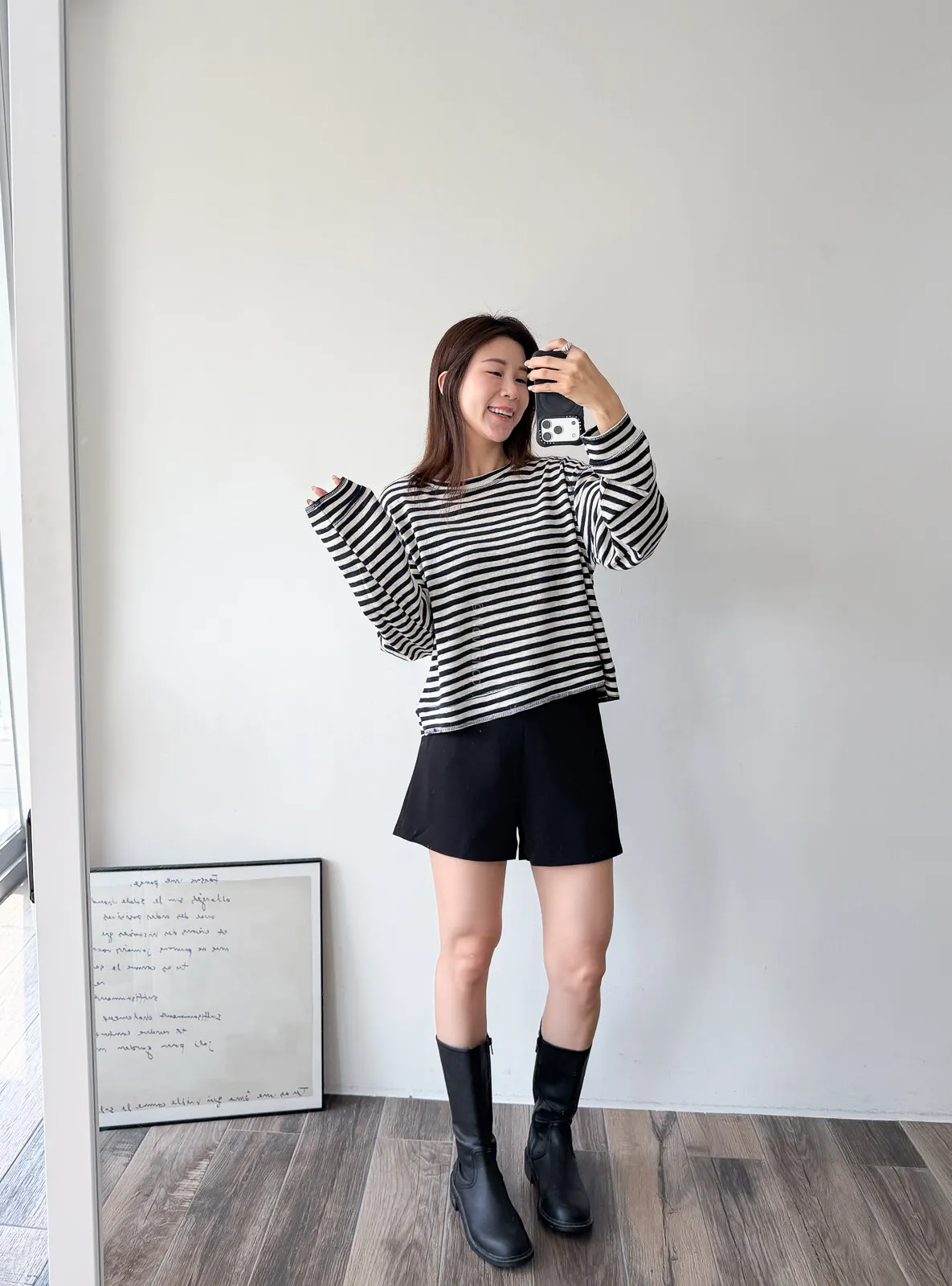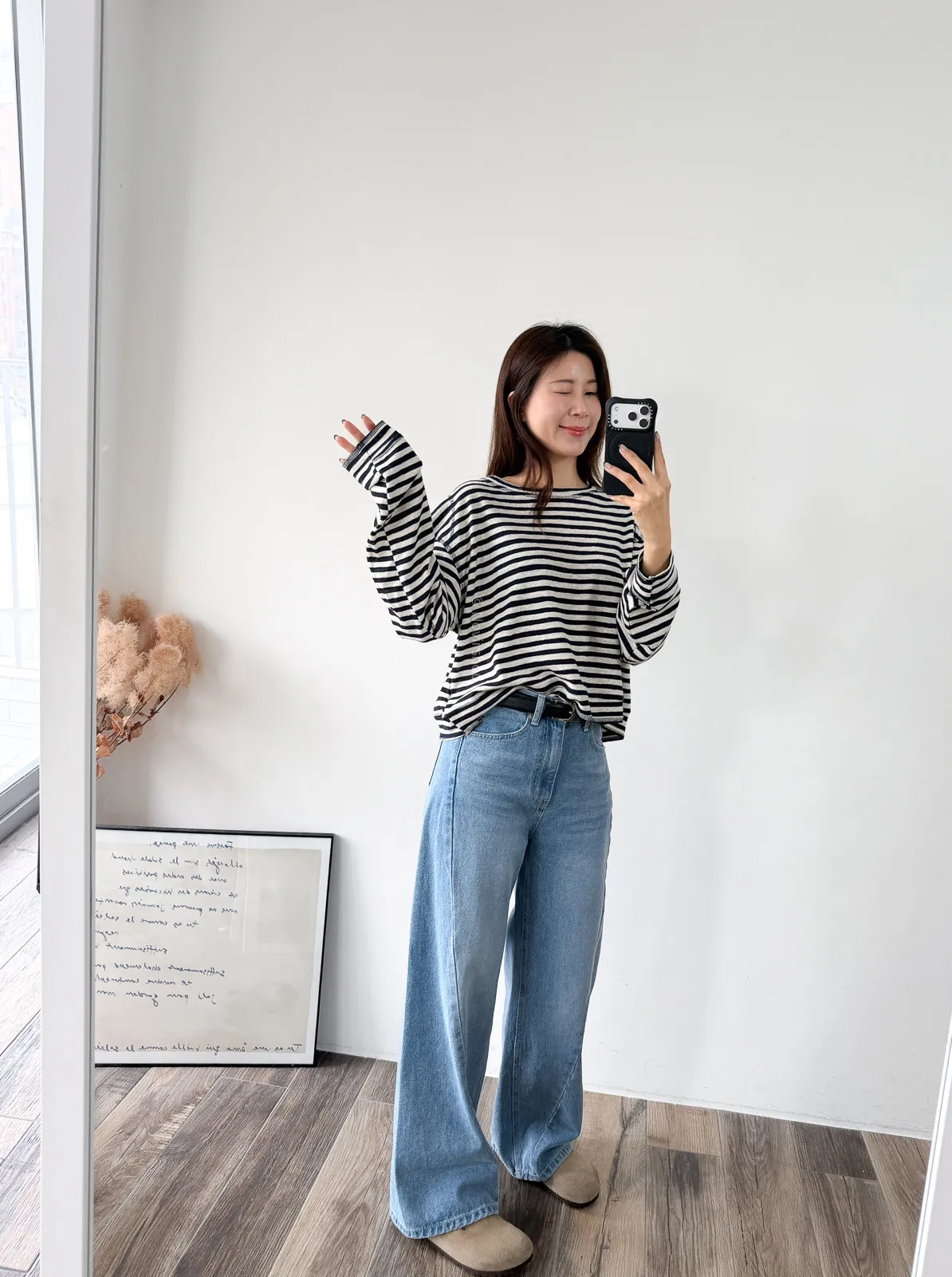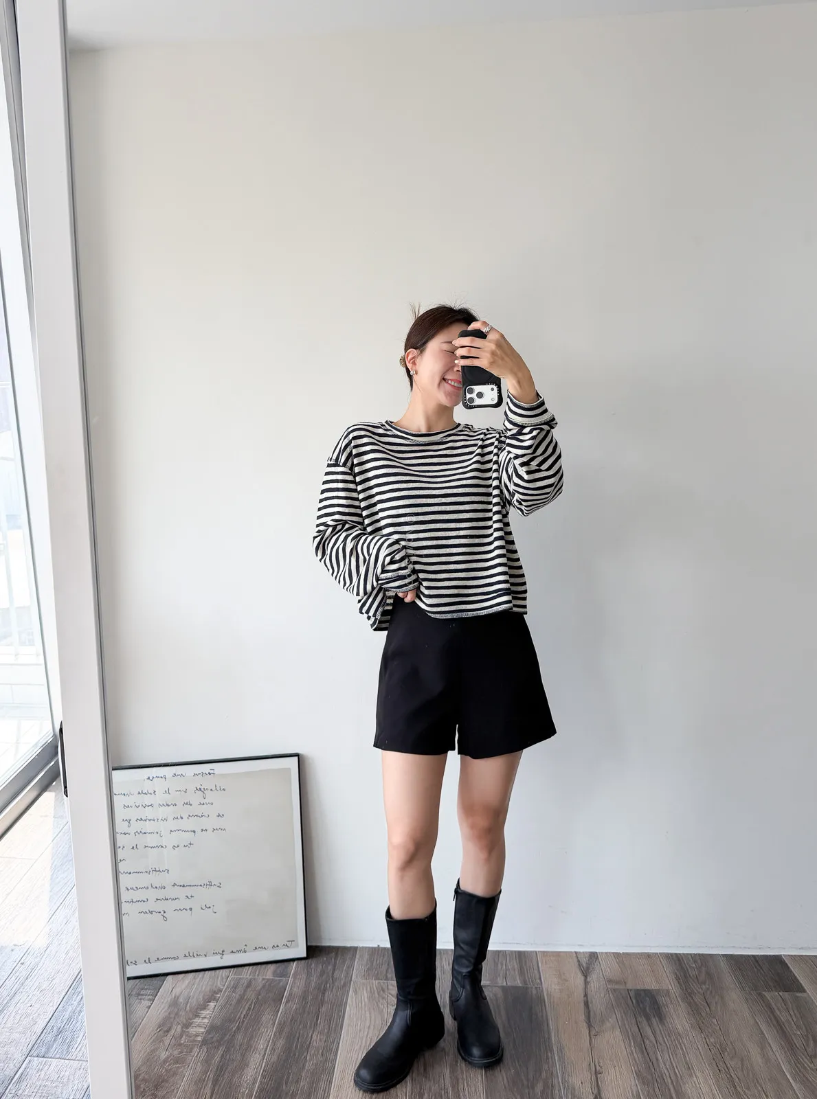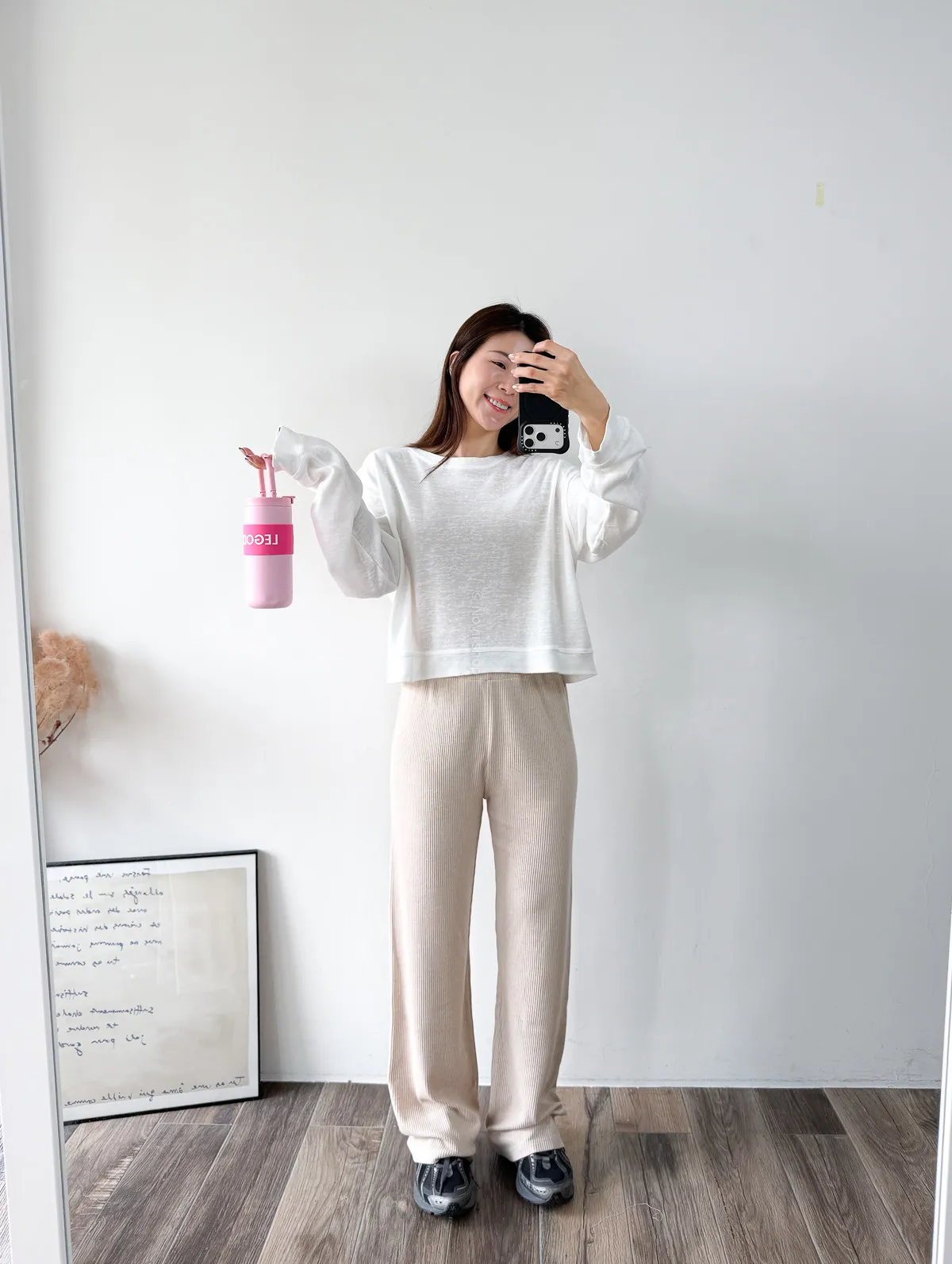 棉質 / 有彈性 帶點微透感的布料~ 很適合春秋換季這種涼涼天氣 很喜歡他的短版鬆鬆感又帶點慵懶. 袖口和下擺都是雙層設計可以讓整件版型更挺一些 除了基本的白灰~ 條紋也意外很可愛 還有不會太亮的紫色也很可愛! Model 158/48 (腰26 臀35.5吋) detail//