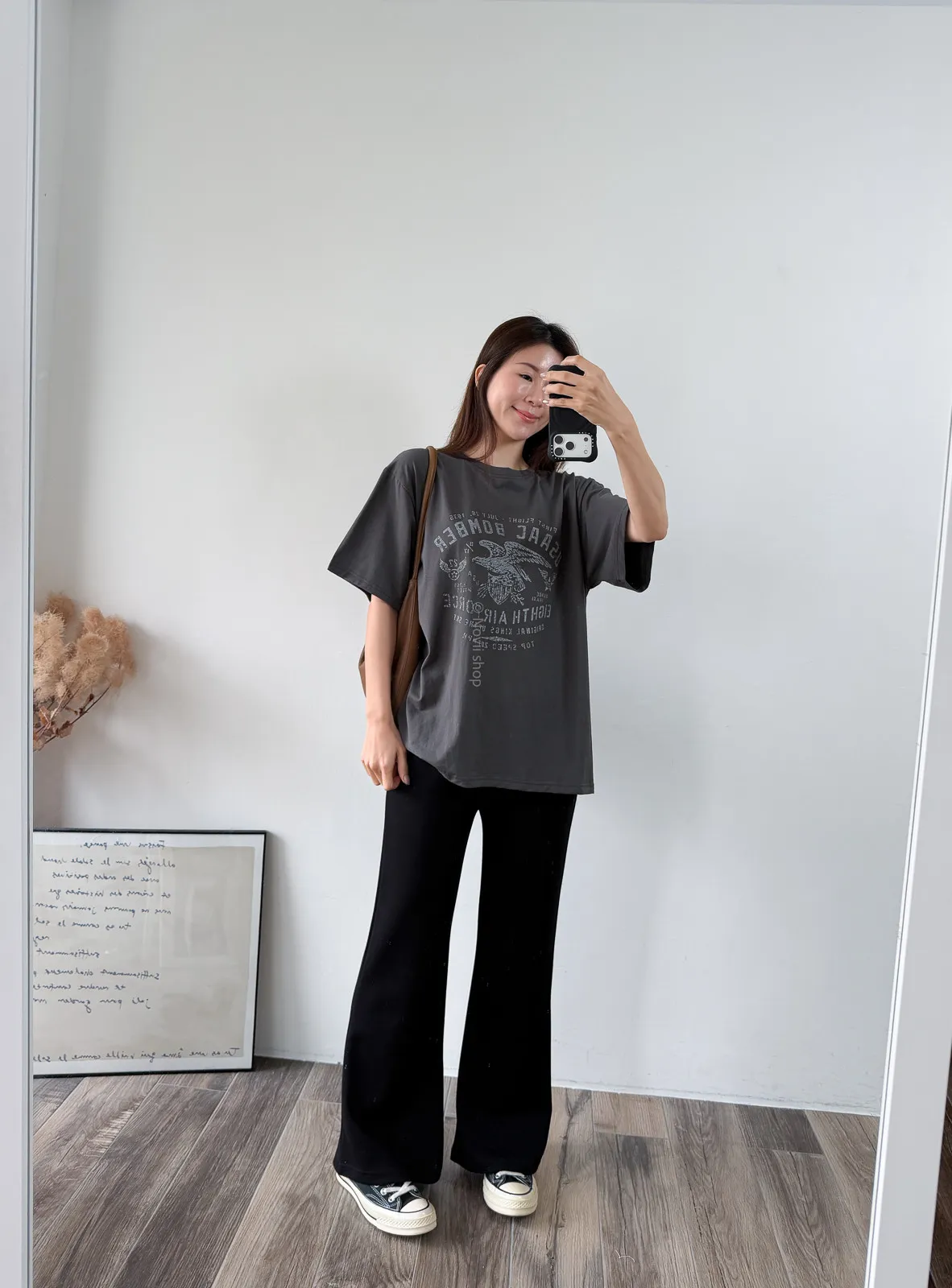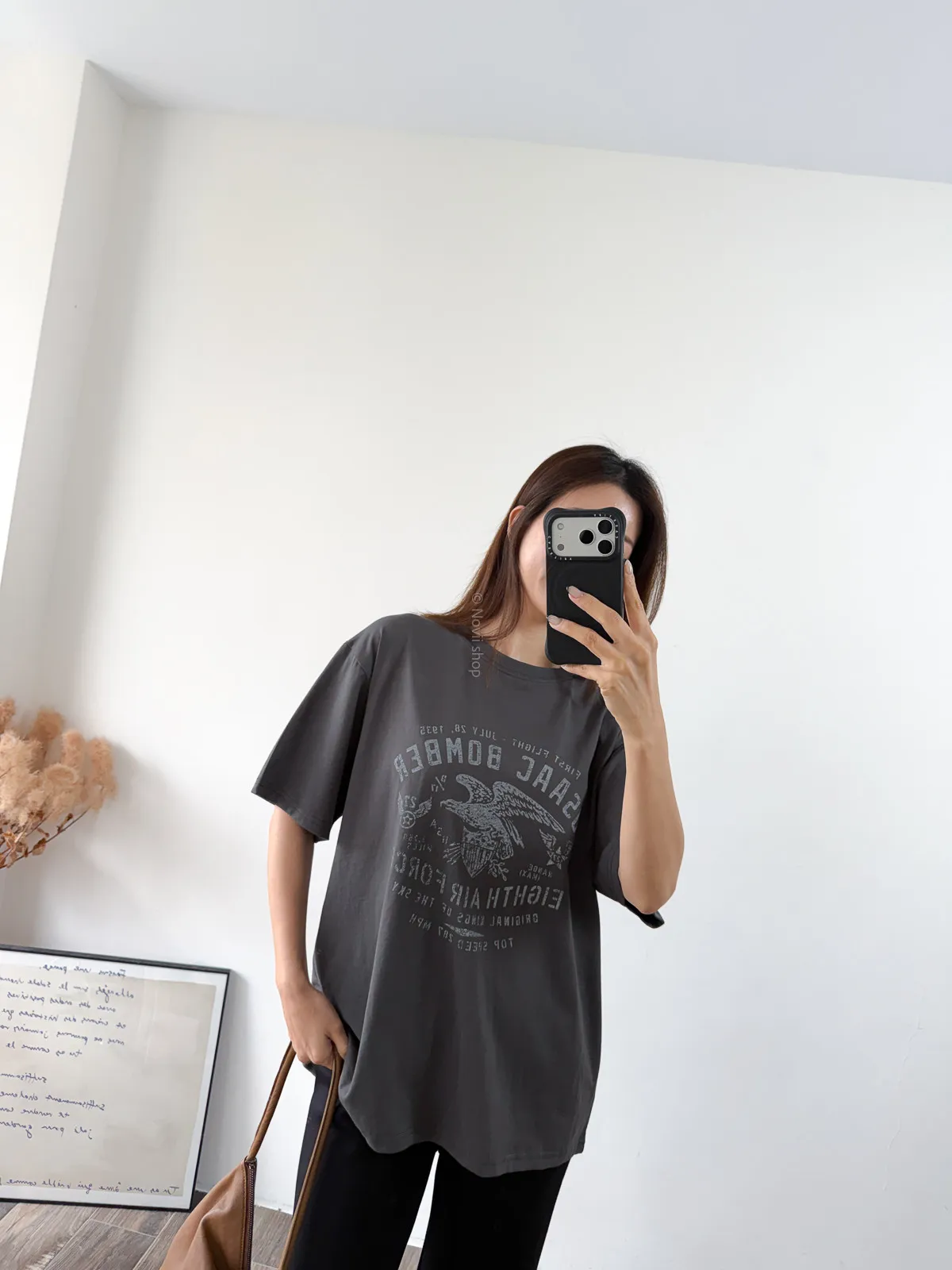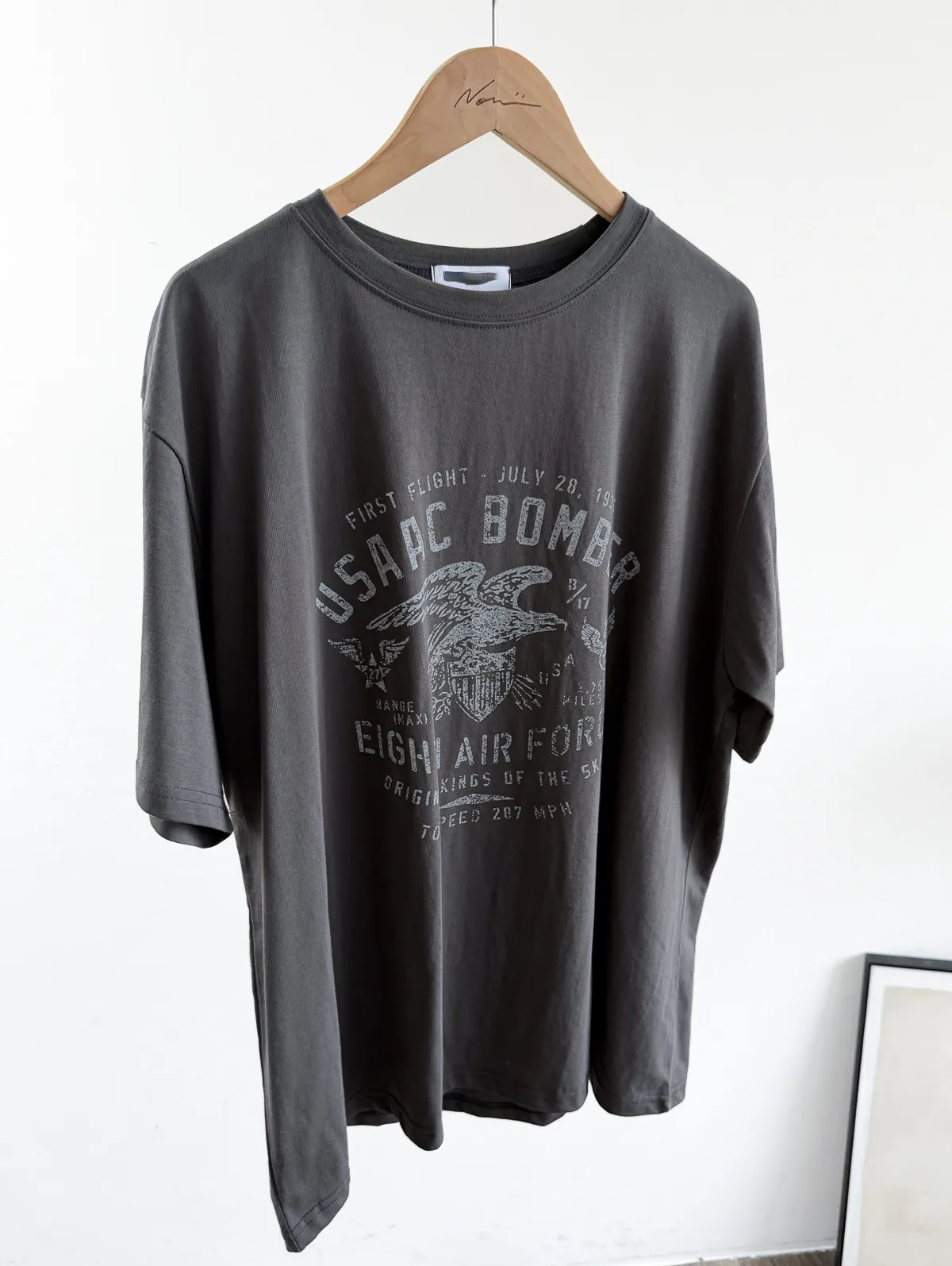 棉質 / 有彈性 這件的寬鬆感也不會過大件~ 布料薄薄的夏天穿也絕對沒問題 除了單穿當長版T 也可以整件扎進褲子裡露出美式老鷹的印刷圖 一秒就有型呀!! Model 158/48 (腰26 臀35.5吋) detail//