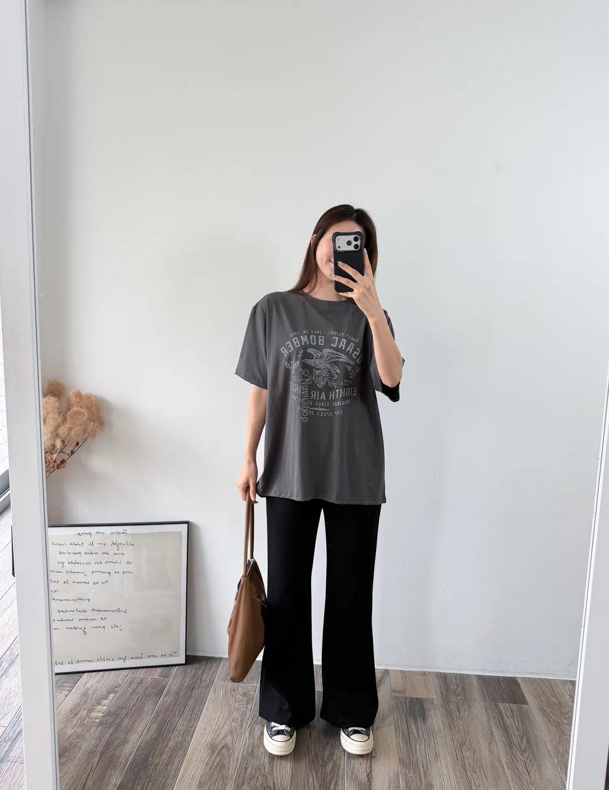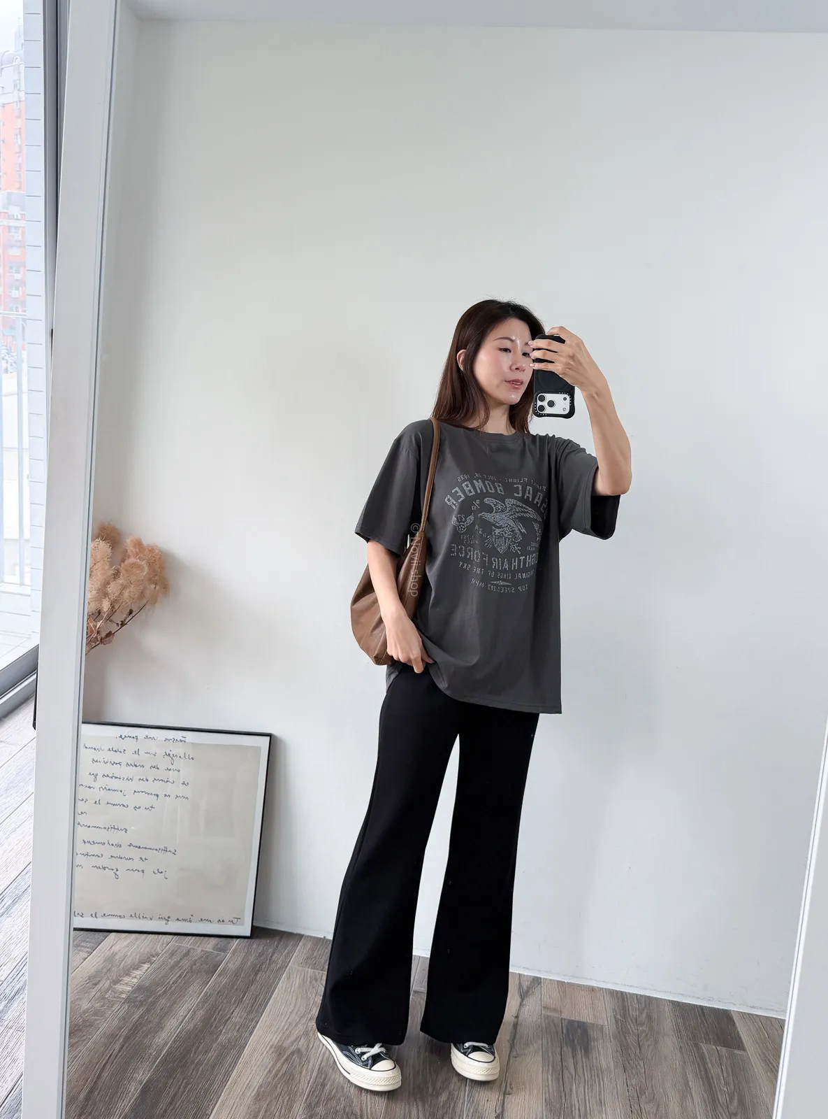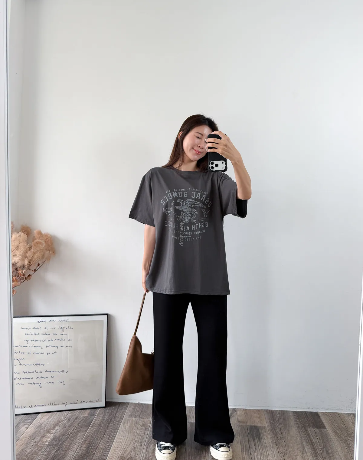 棉質 / 有彈性 這件的寬鬆感也不會過大件~ 布料薄薄的夏天穿也絕對沒問題 除了單穿當長版T 也可以整件扎進褲子裡露出美式老鷹的印刷圖 一秒就有型呀!! Model 158/48 (腰26 臀35.5吋) detail//