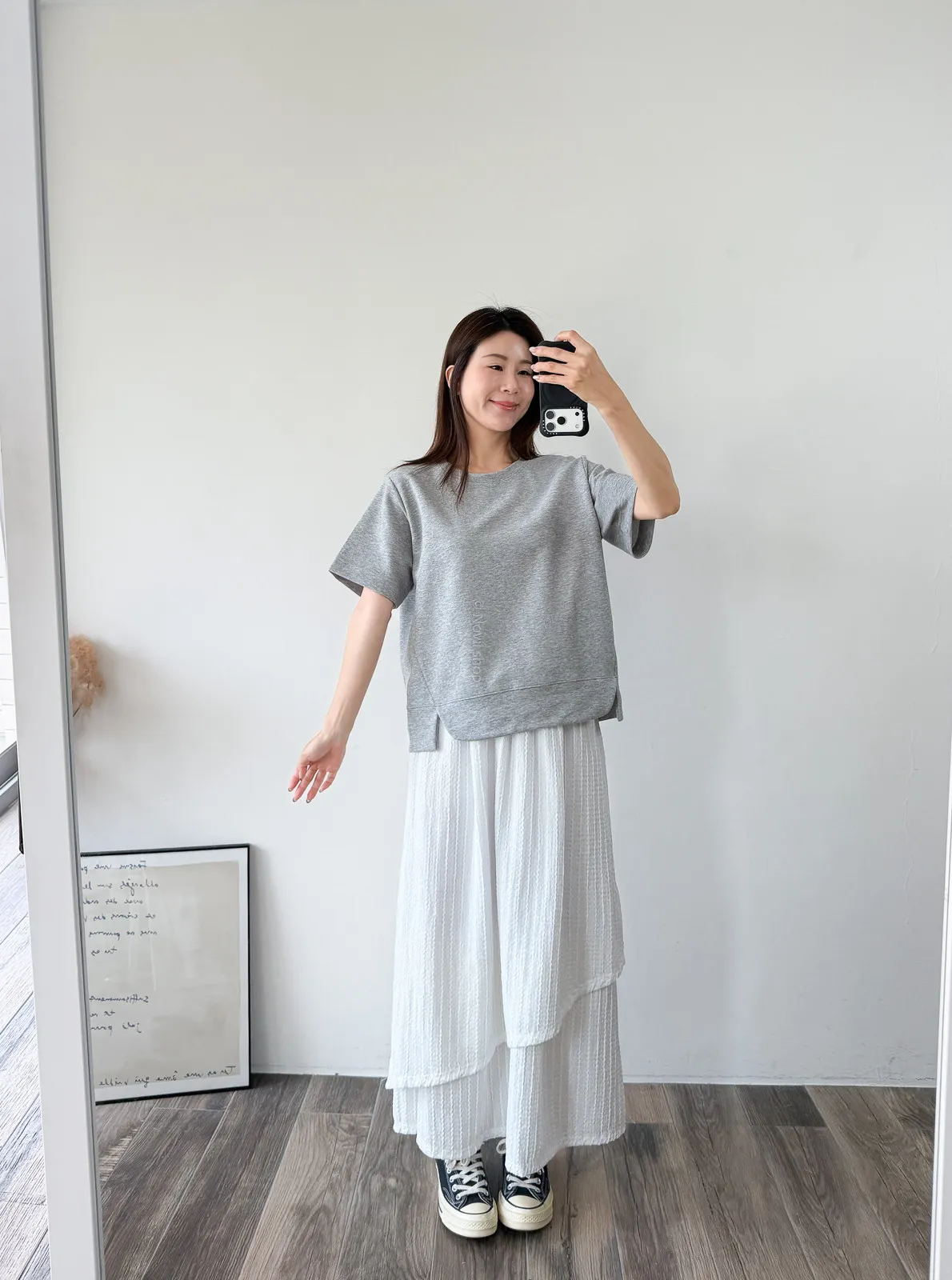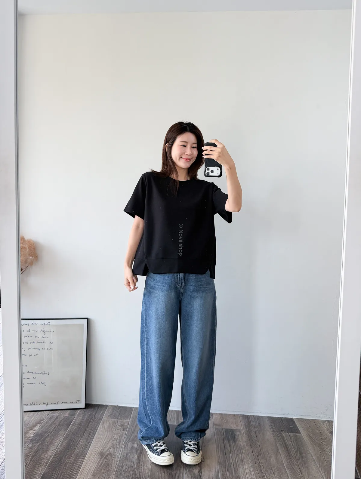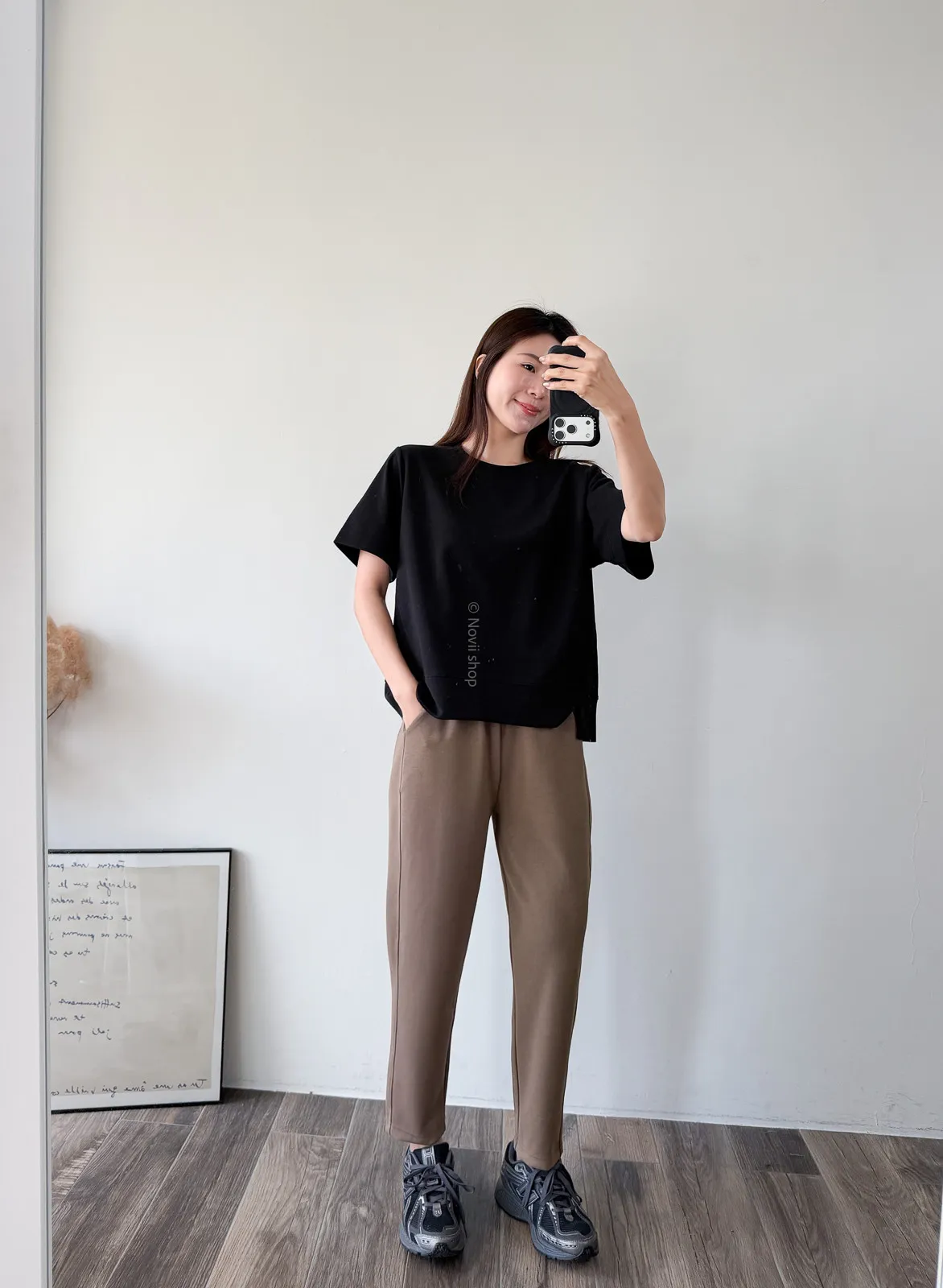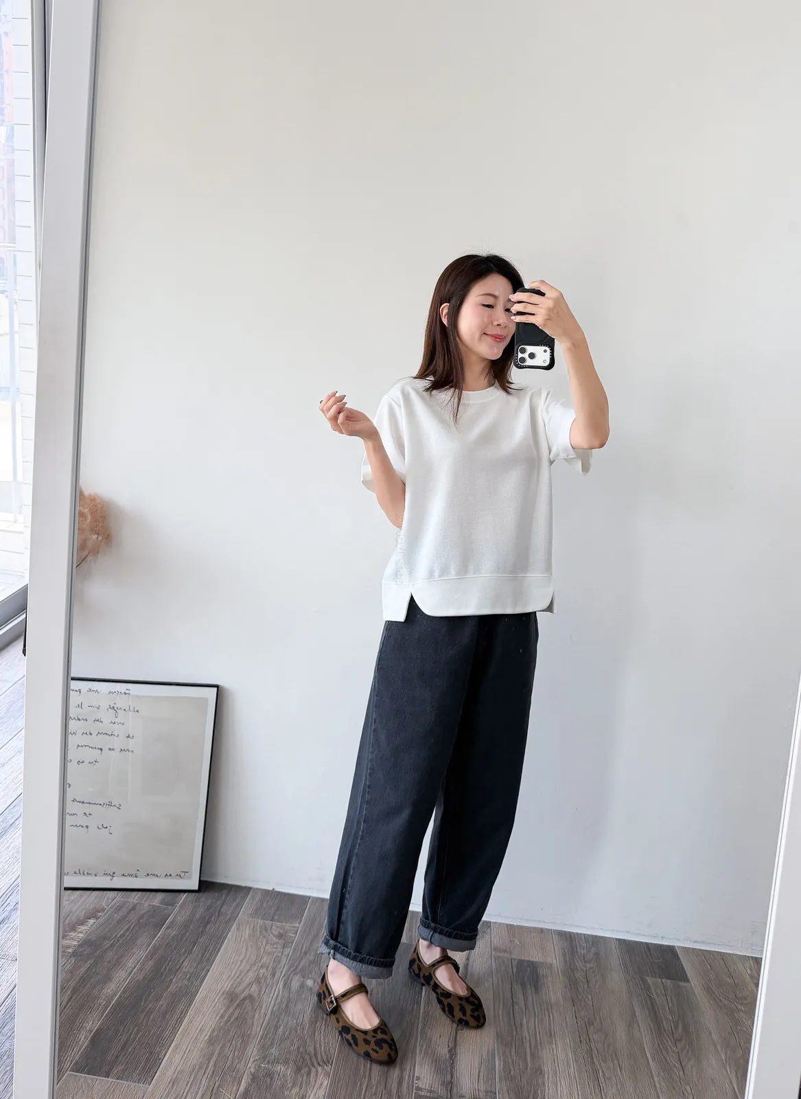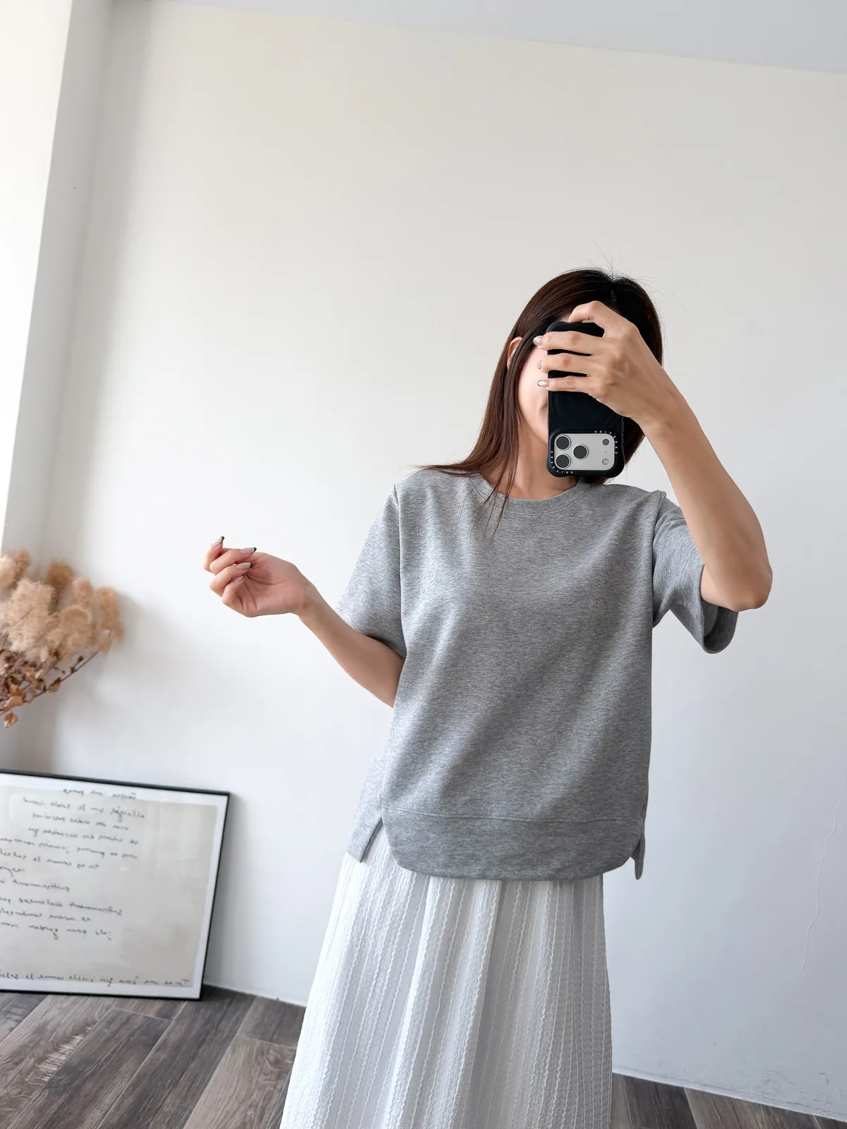 棉質 / 有彈性 布料非常的輕盈 七分袖寬鬆版型人人都可以駕馭~ 正面下擺有兩側有小小開衩造型~ 好可愛吶! 下半身隨意配上自己喜歡的褲子 整體穿單簡單卻不無聊! 讚讚 Model 158/48 (腰26 臀35.5吋) detail//