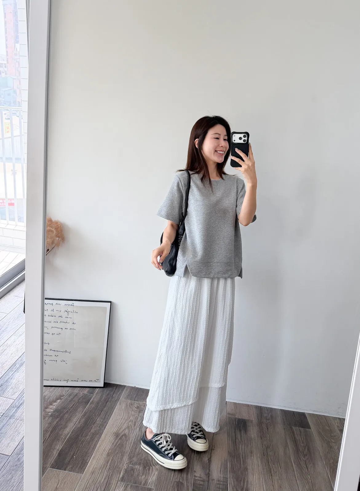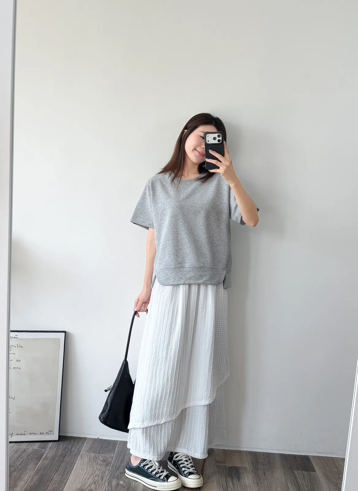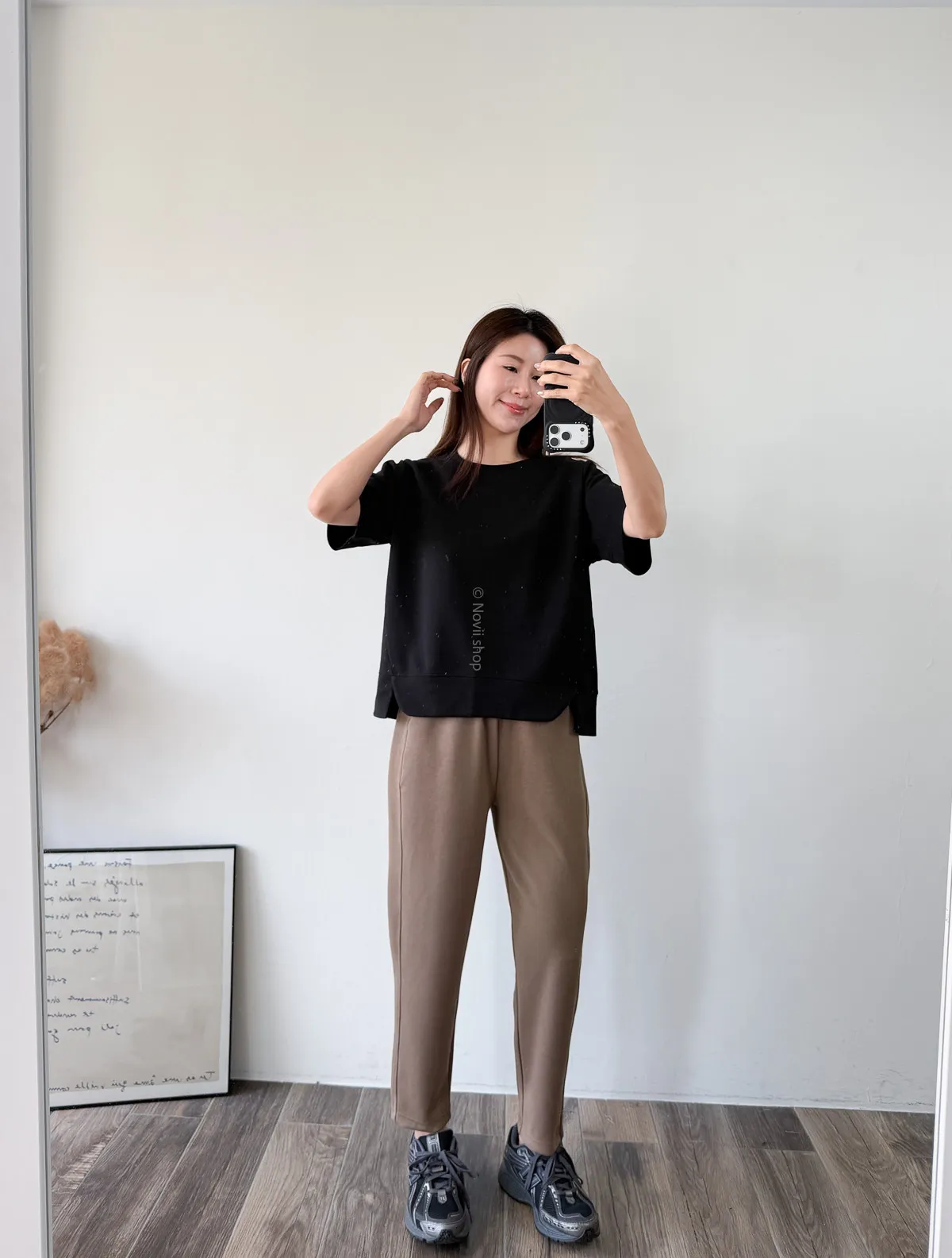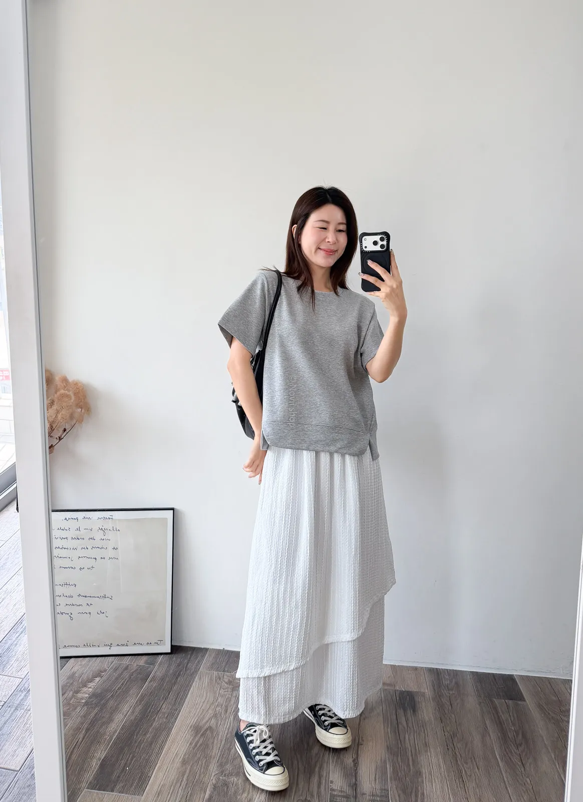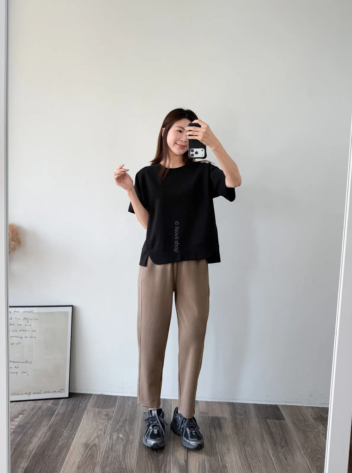 棉質 / 有彈性 布料非常的輕盈 七分袖寬鬆版型人人都可以駕馭~ 正面下擺有兩側有小小開衩造型~ 好可愛吶! 下半身隨意配上自己喜歡的褲子 整體穿單簡單卻不無聊! 讚讚 Model 158/48 (腰26 臀35.5吋) detail//