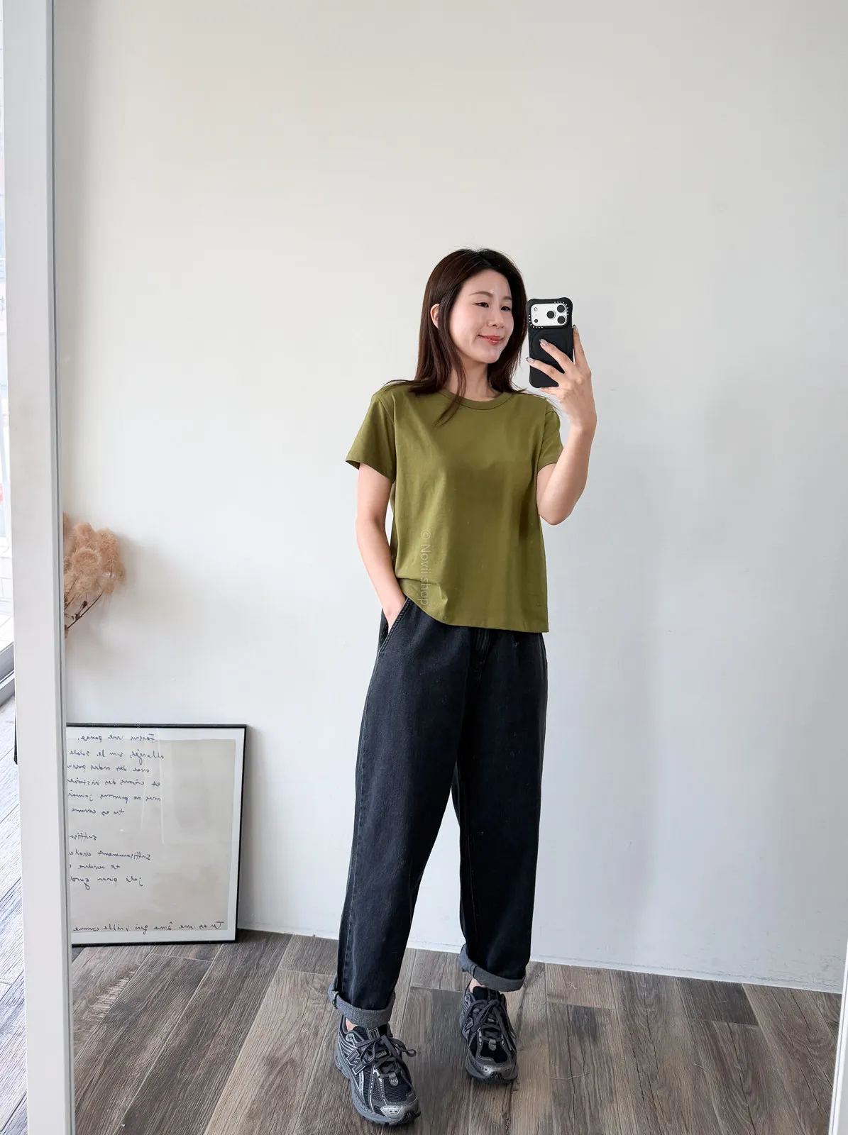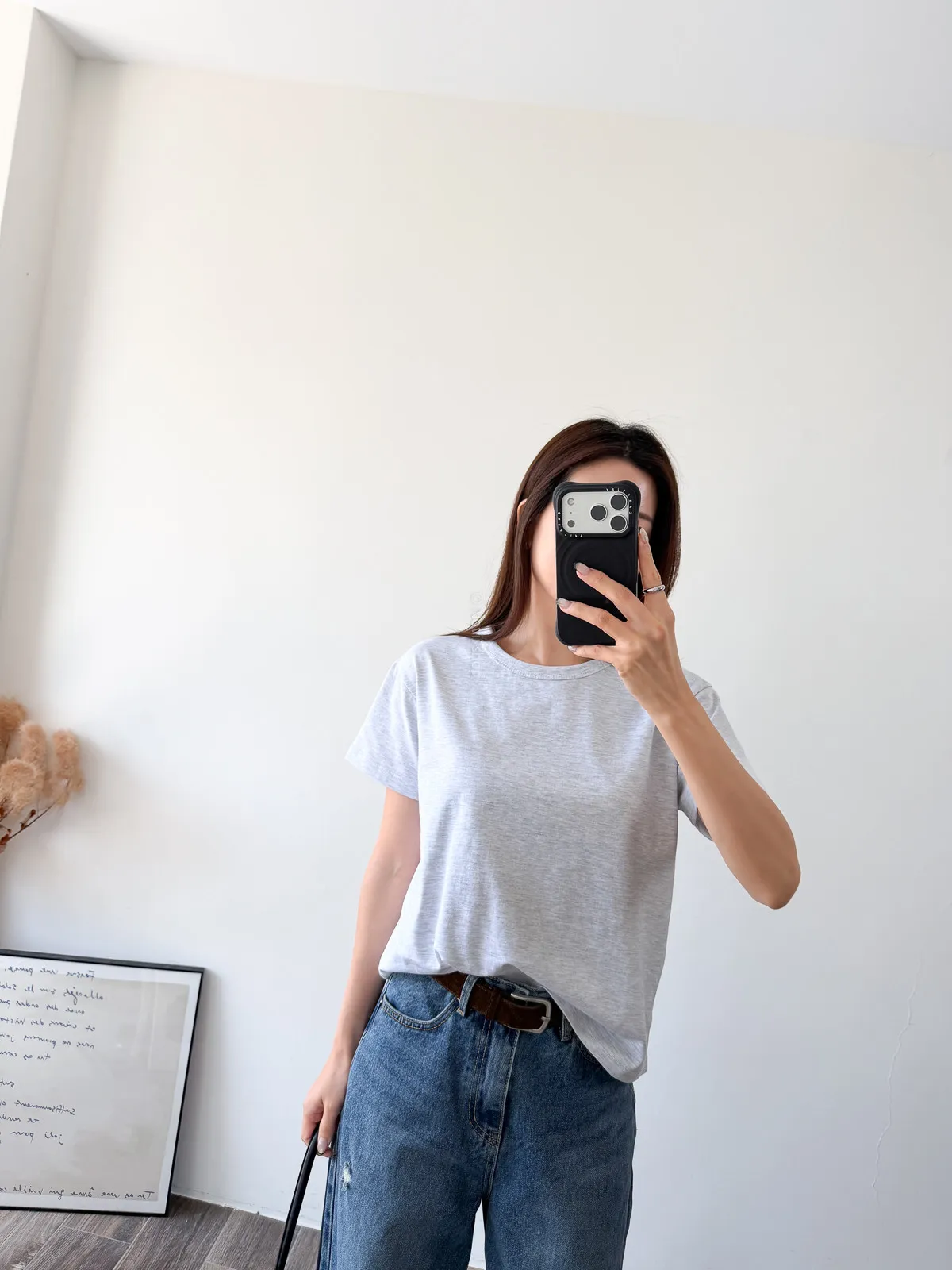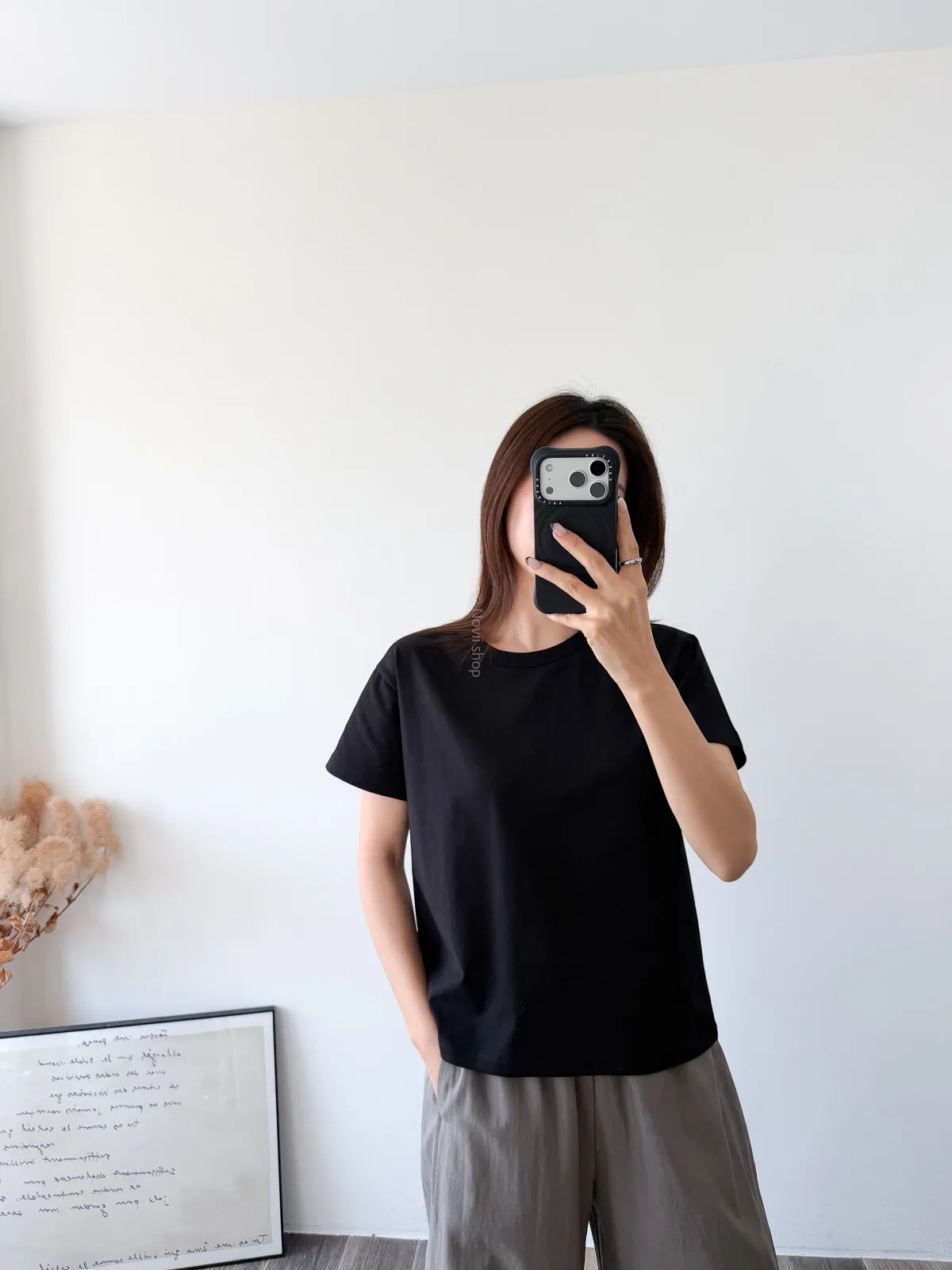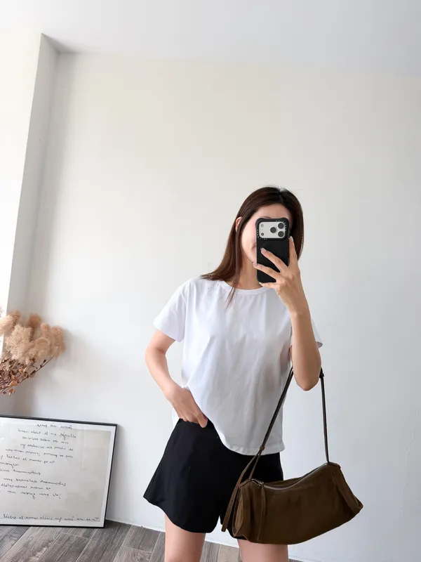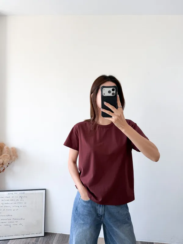 棉質 / 有彈性 這款很推薦噎!!! 寬鬆度、衣長和布料挺度都非常剛好 領口故意做雙層車縫不會擔心領口變成波浪的問題~ 版型S~L都可以駕馭 喜歡他的布料是扎實的挺度不過也不會太厚喔! 素T控必收!!! Model 158/48 (腰26 臀35.5吋)