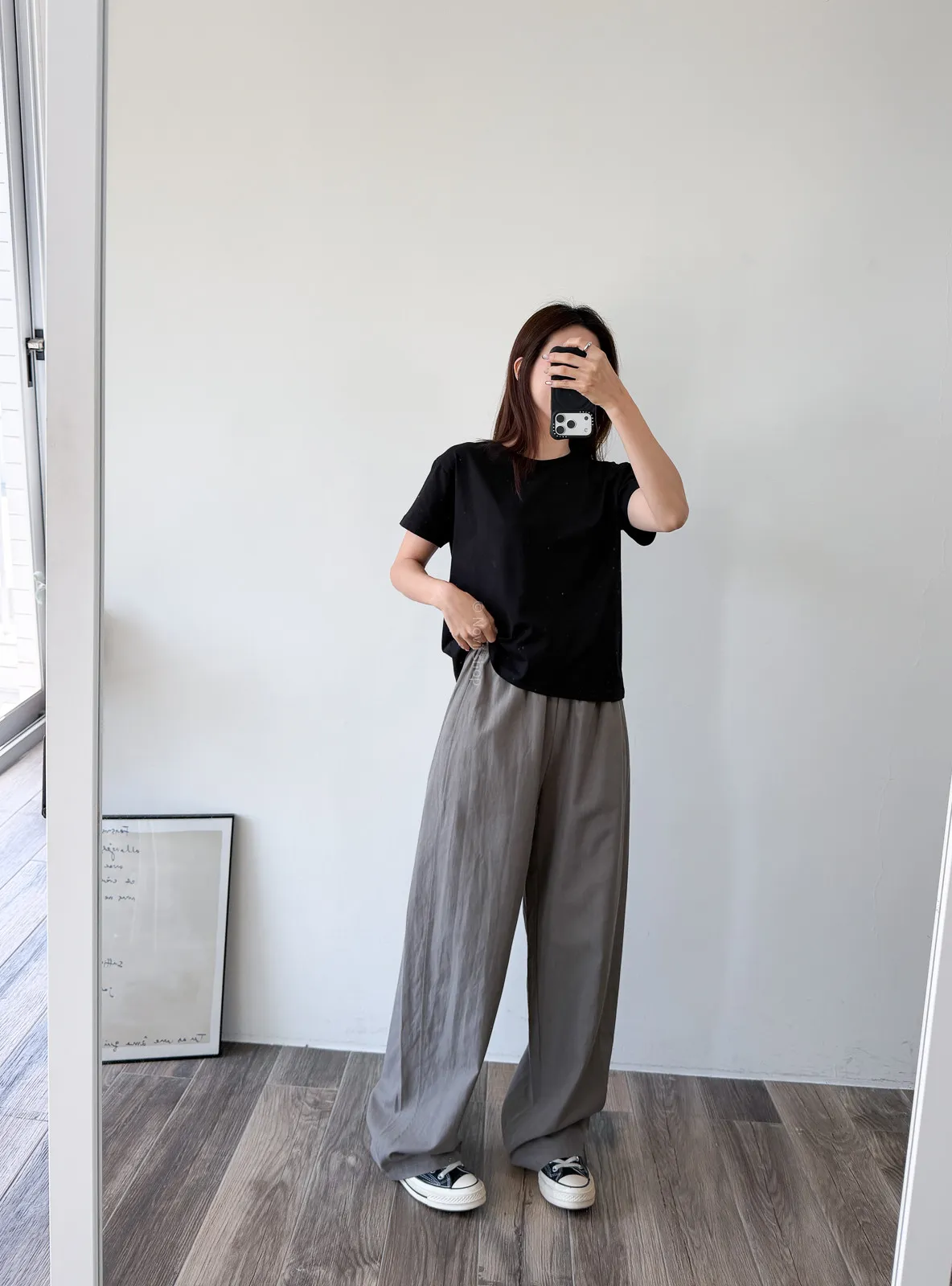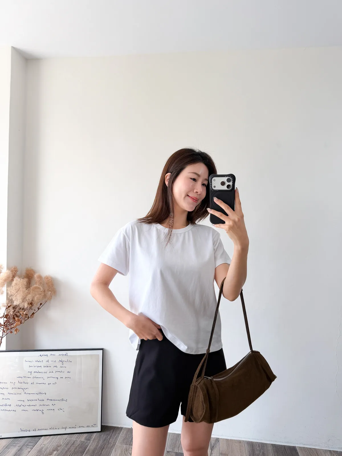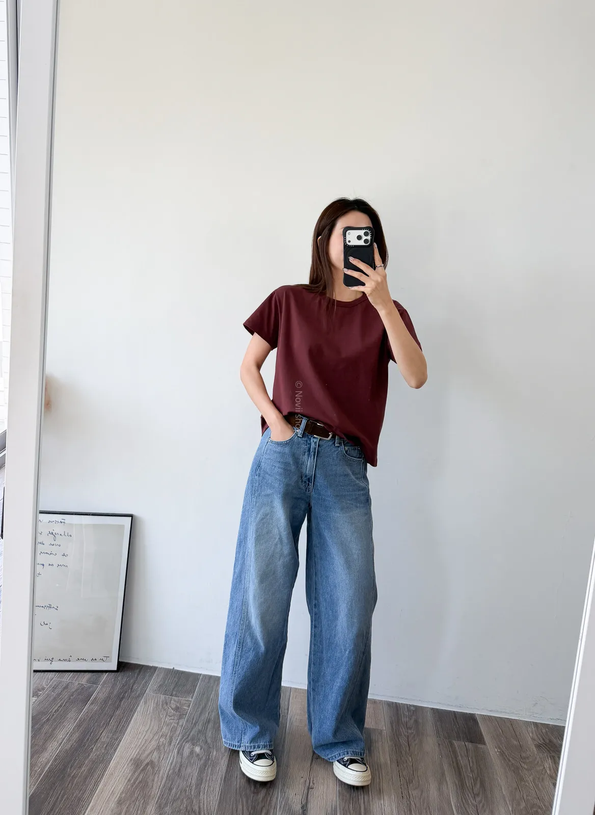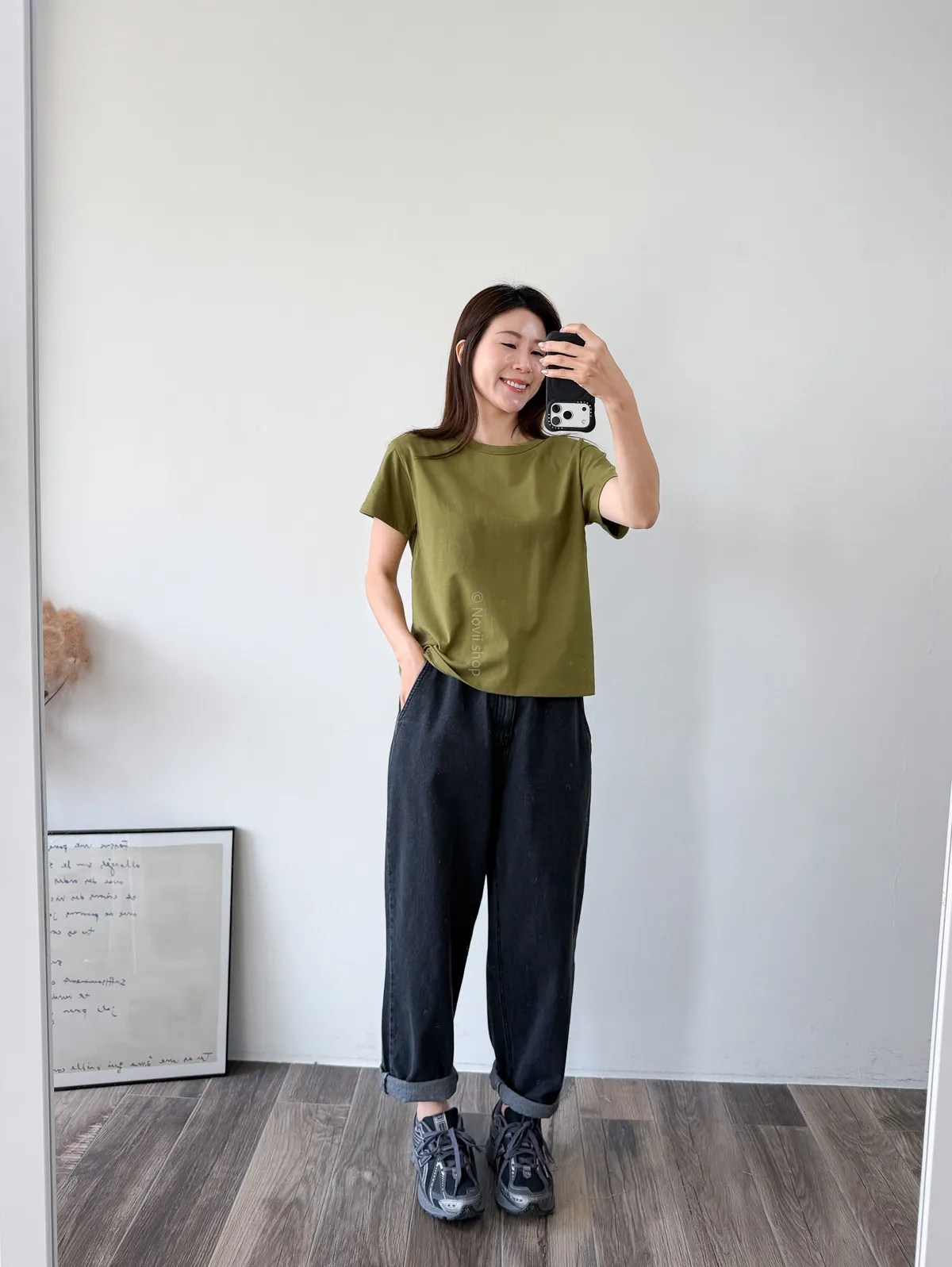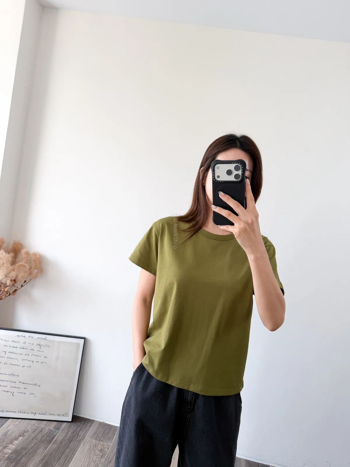 棉質 / 有彈性 這款很推薦噎!!! 寬鬆度、衣長和布料挺度都非常剛好 領口故意做雙層車縫不會擔心領口變成波浪的問題~ 版型S~L都可以駕馭 喜歡他的布料是扎實的挺度不過也不會太厚喔! 素T控必收!!! Model 158/48 (腰26 臀35.5吋)