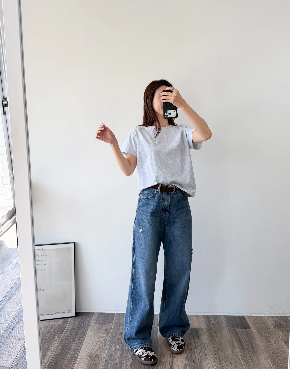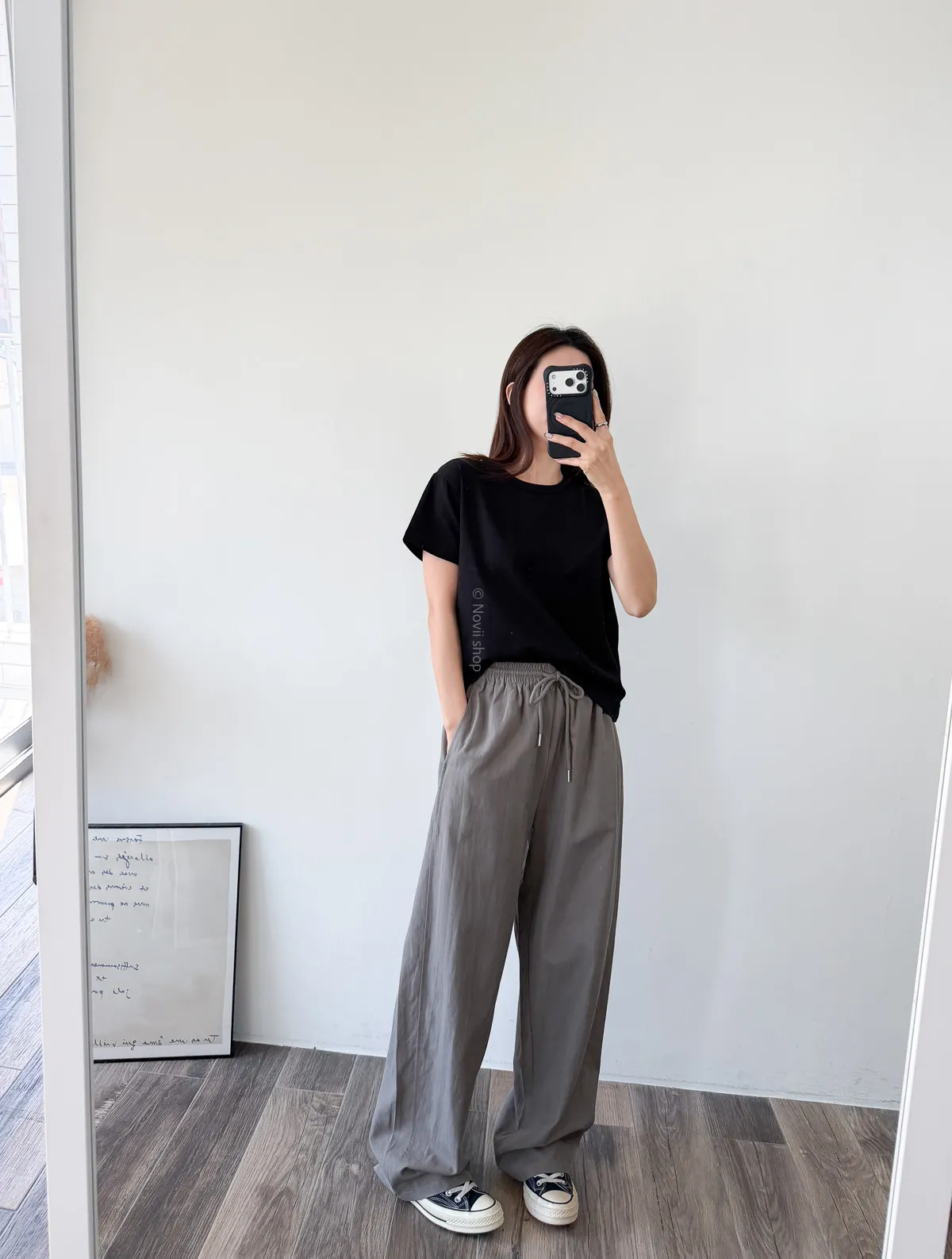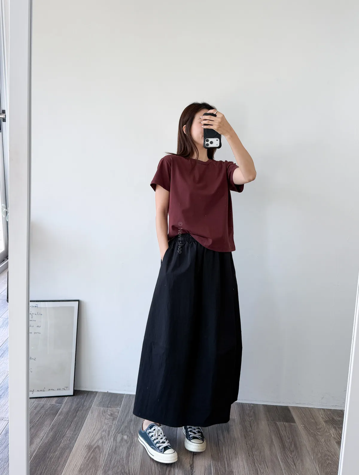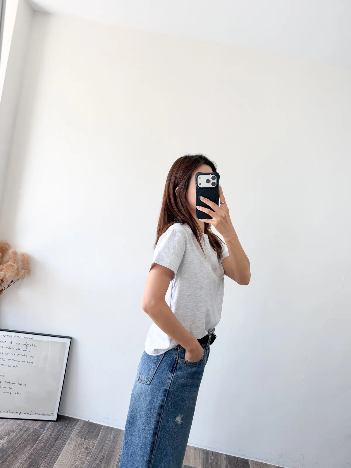 棉質 / 有彈性 這款很推薦噎!!! 寬鬆度、衣長和布料挺度都非常剛好 領口故意做雙層車縫不會擔心領口變成波浪的問題~ 版型S~L都可以駕馭 喜歡他的布料是扎實的挺度不過也不會太厚喔! 素T控必收!!! Model 158/48 (腰26 臀35.5吋)