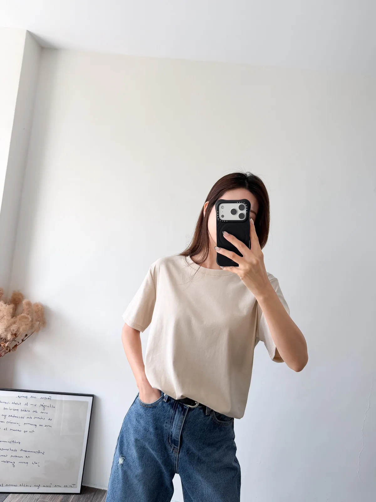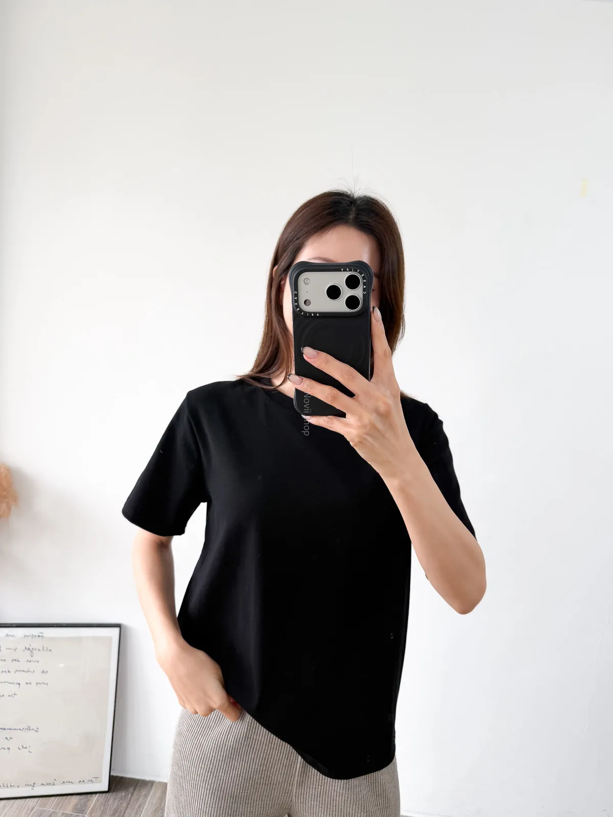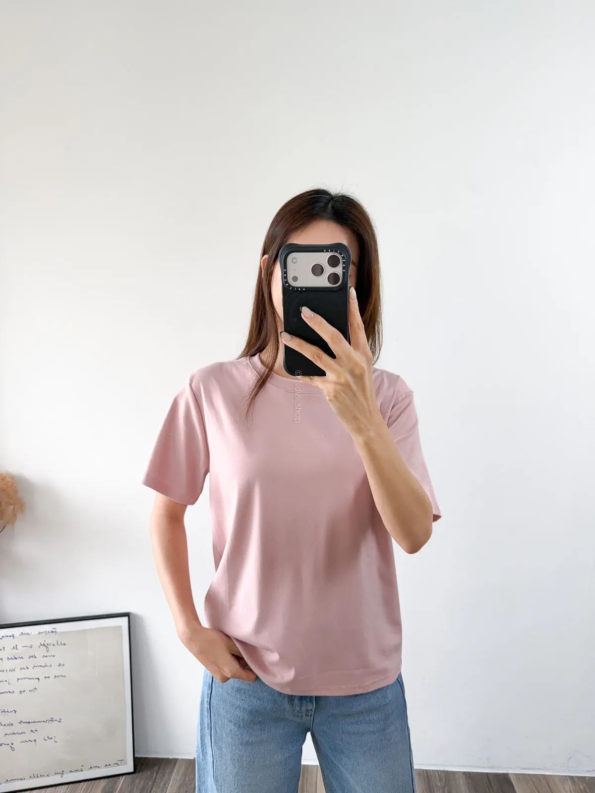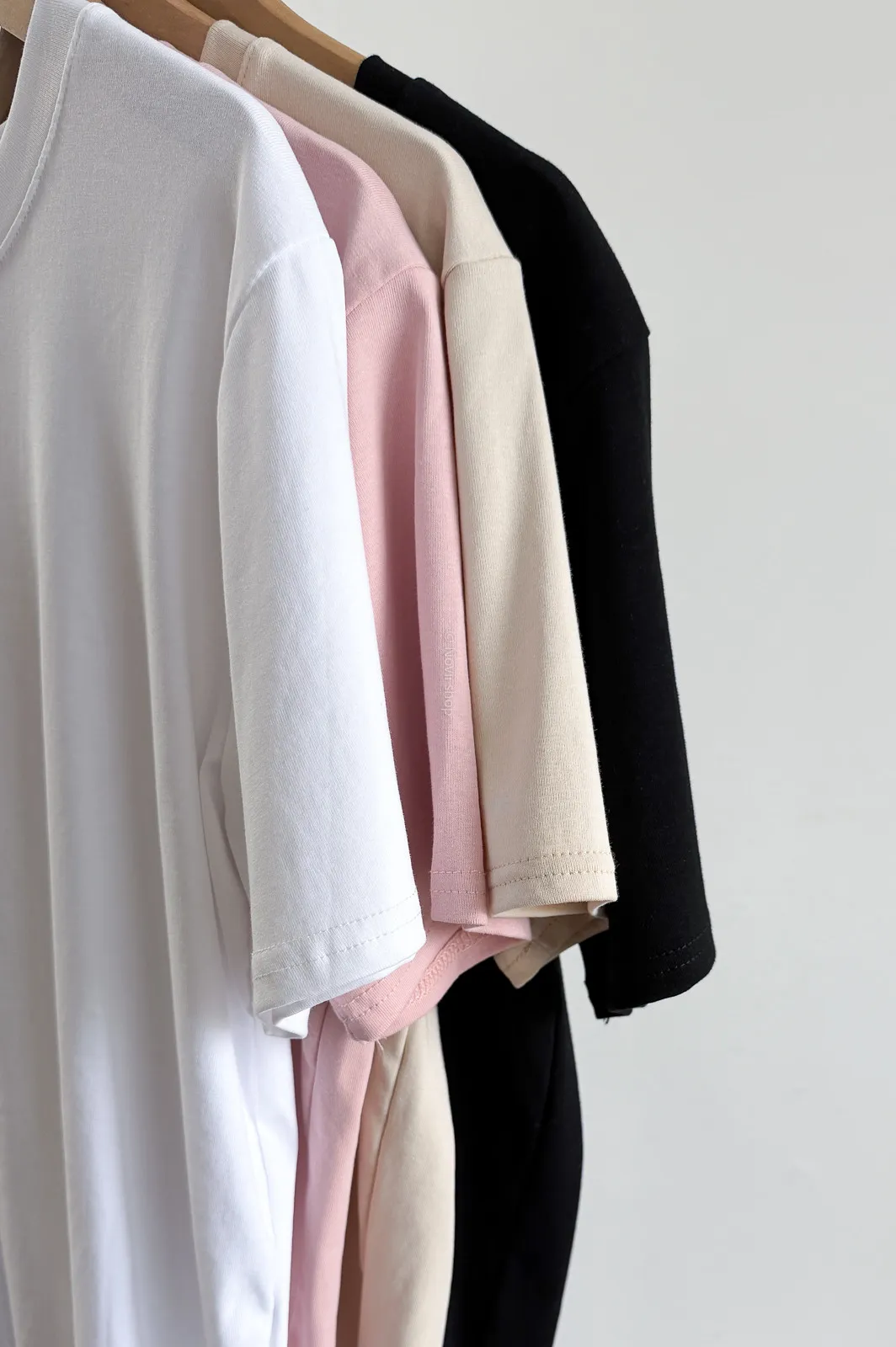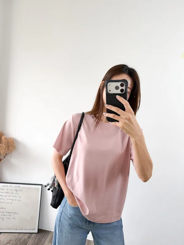 棉質 / 有彈性 版型整體寬鬆感布料很薄又有彈力 把整件紮進褲子也很可以不會讓肚子鼓鼓的~ 這布料夏天穿絕對OK!!! 非常涼快~ 價格也可愛 Model 158/48 (腰26 臀35.5吋) detail//