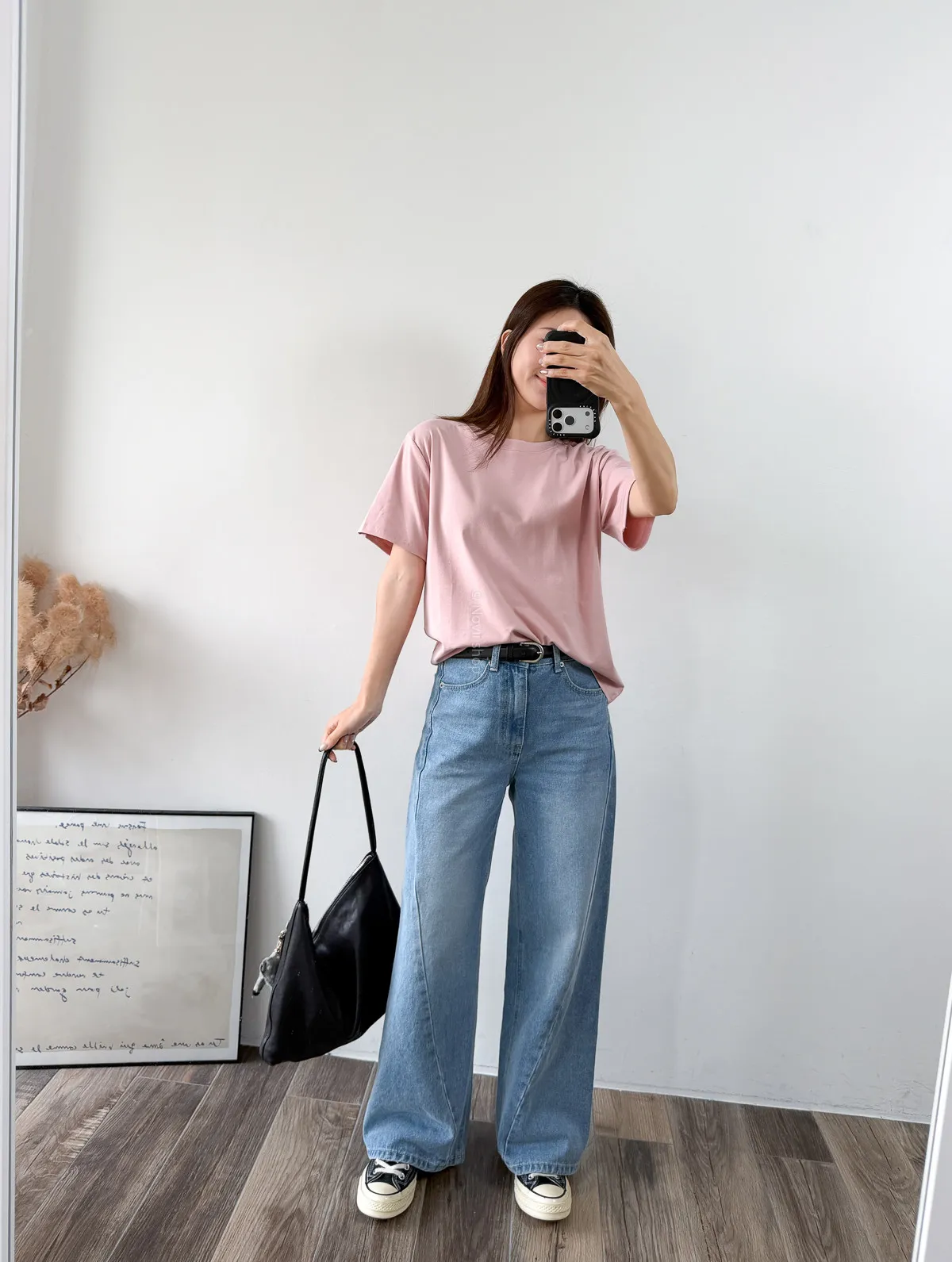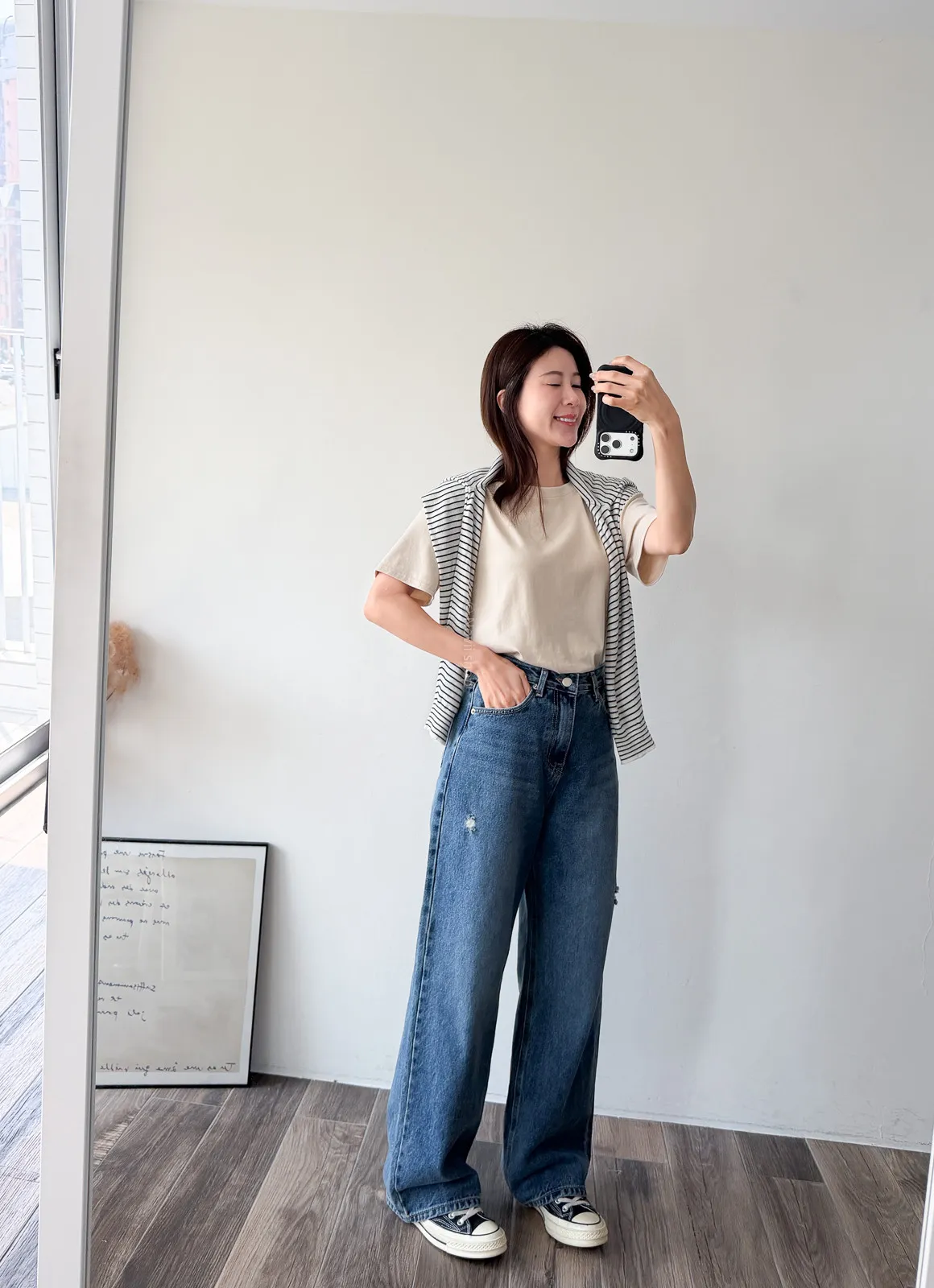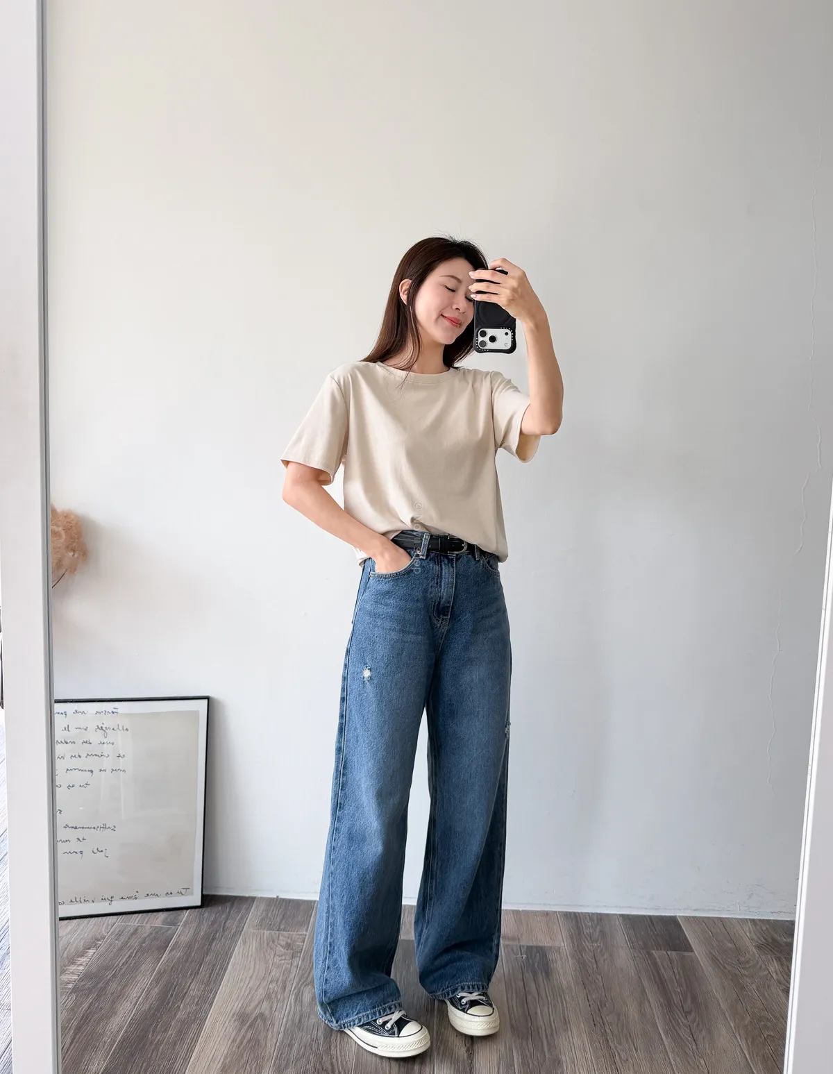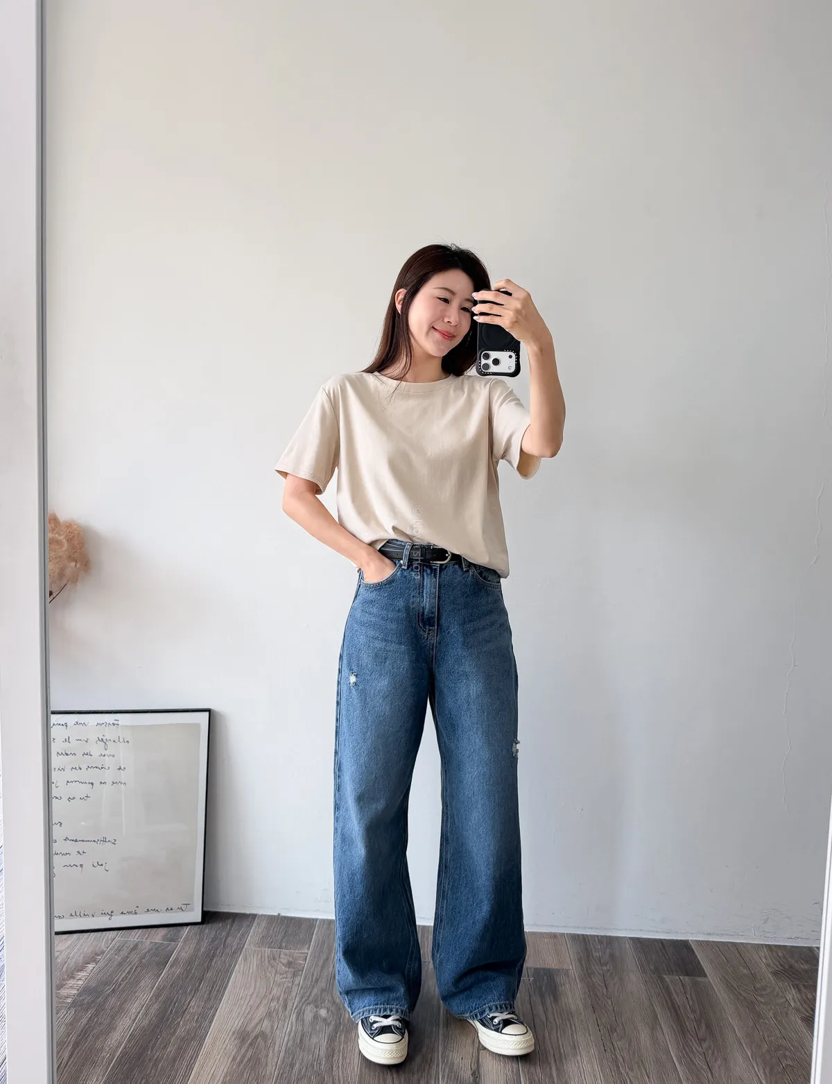 棉質 / 有彈性 版型整體寬鬆感布料很薄又有彈力 把整件紮進褲子也很可以不會讓肚子鼓鼓的~ 這布料夏天穿絕對OK!!! 非常涼快~ 價格也可愛 Model 158/48 (腰26 臀35.5吋) detail//