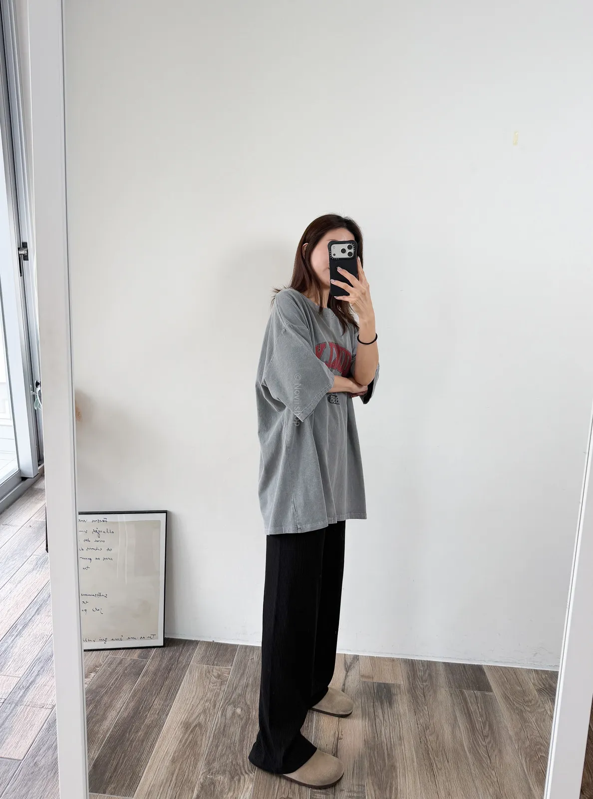 水洗棉/ 有彈性 這件材質超舒服耶!!!跟平常摸到的水洗棉又不太一樣 這件手感帶點滑感冰冰涼涼很舒服 第一次試穿我就決定買兩色了XD 每一個顏色都很好看 穿起來都有不同的感覺~~ 版型寬寬大大小個子可以搭配短褲或是四分褲 高個子可以直接當長版上衣. Model 158/48 (腰26 臀35.5吋) detail//