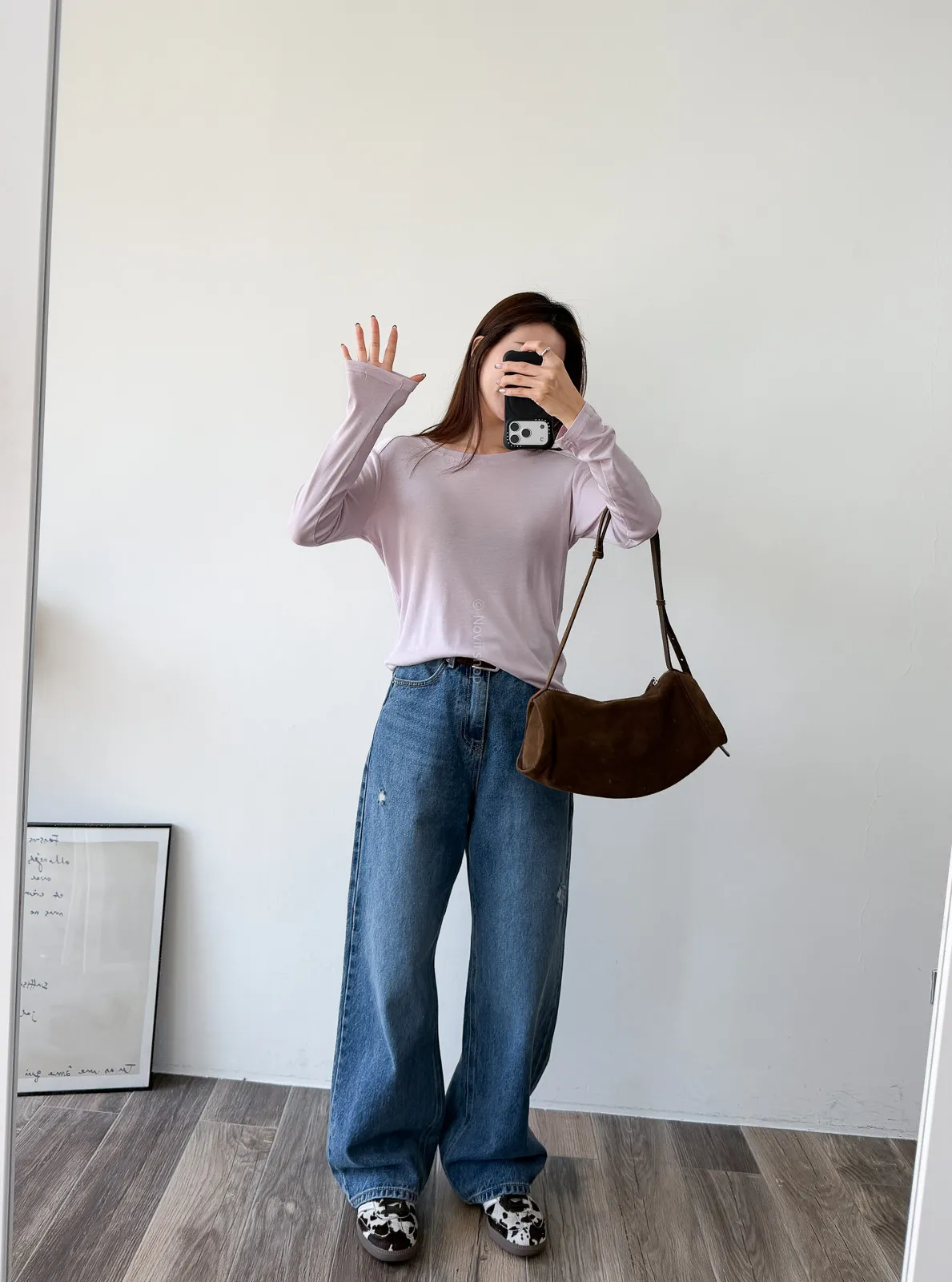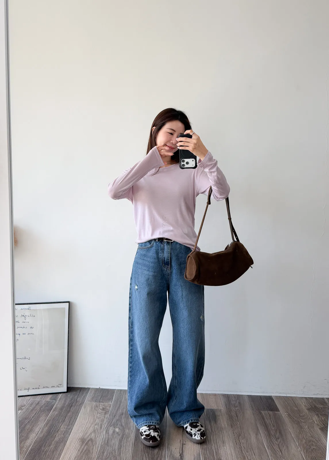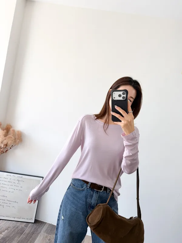 棉質 / 有彈性 這材質滑溜溜又很薄~ 布料好像面膜一樣舒服 穿起來整個人變好纖細感 可以放出來讓下擺有自然皺摺 比較慵懶感 也可以整件紮進褲子裡 比較有精神 除了基本的黑白~ 這款的粉是帶點紫色調的粉,很美!! 深藍非常顯白,也很顯瘦 Model 158/48 (腰26 臀35.5吋)