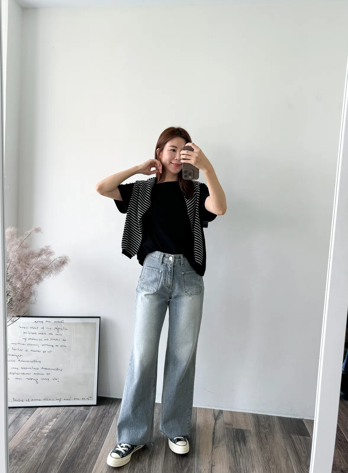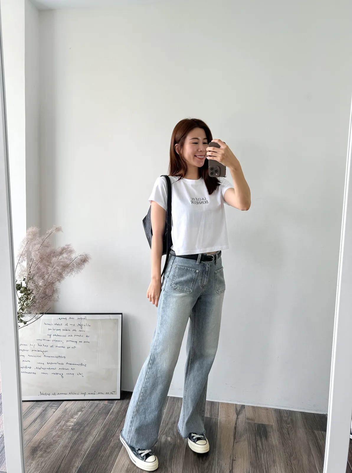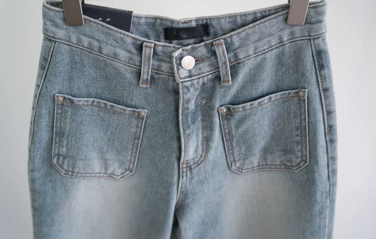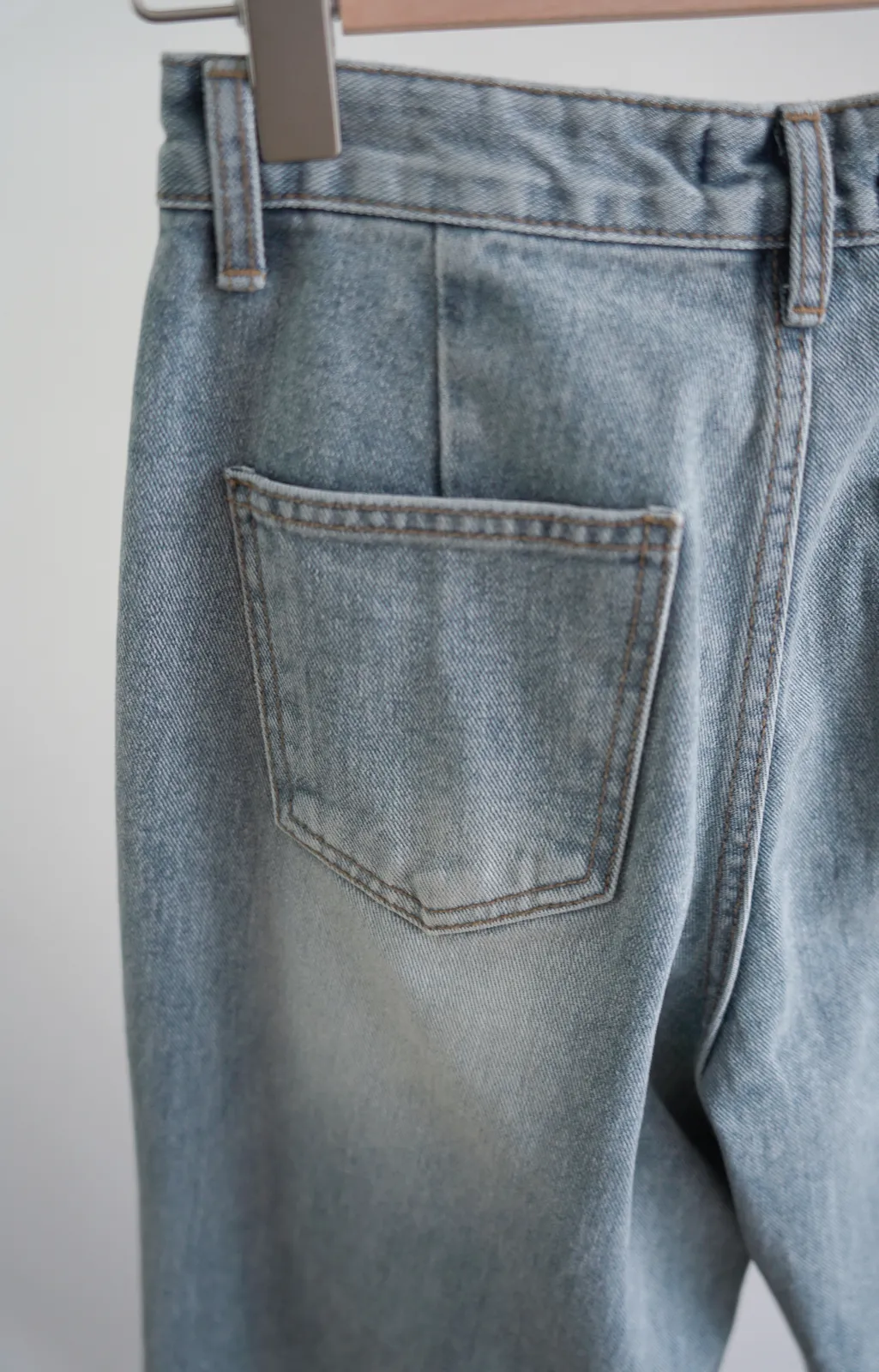 牛仔料 / 無彈性 / 中高腰 刷色實在爆美內!!! 非常少見的灰灰藍藍色調 而且意外的非常好搭 版型穿起來也是順順的修身 褲腳不修邊讓腿看起來更有延伸感~ 我自己是越穿越喜歡 褲子搭配的每一套穿搭都好好滿意 尺寸:SML 版正常 Model 158/48 臀35.5吋 平常穿S,這款穿S舒服不緊不鬆 detail//