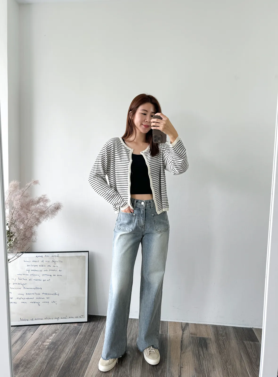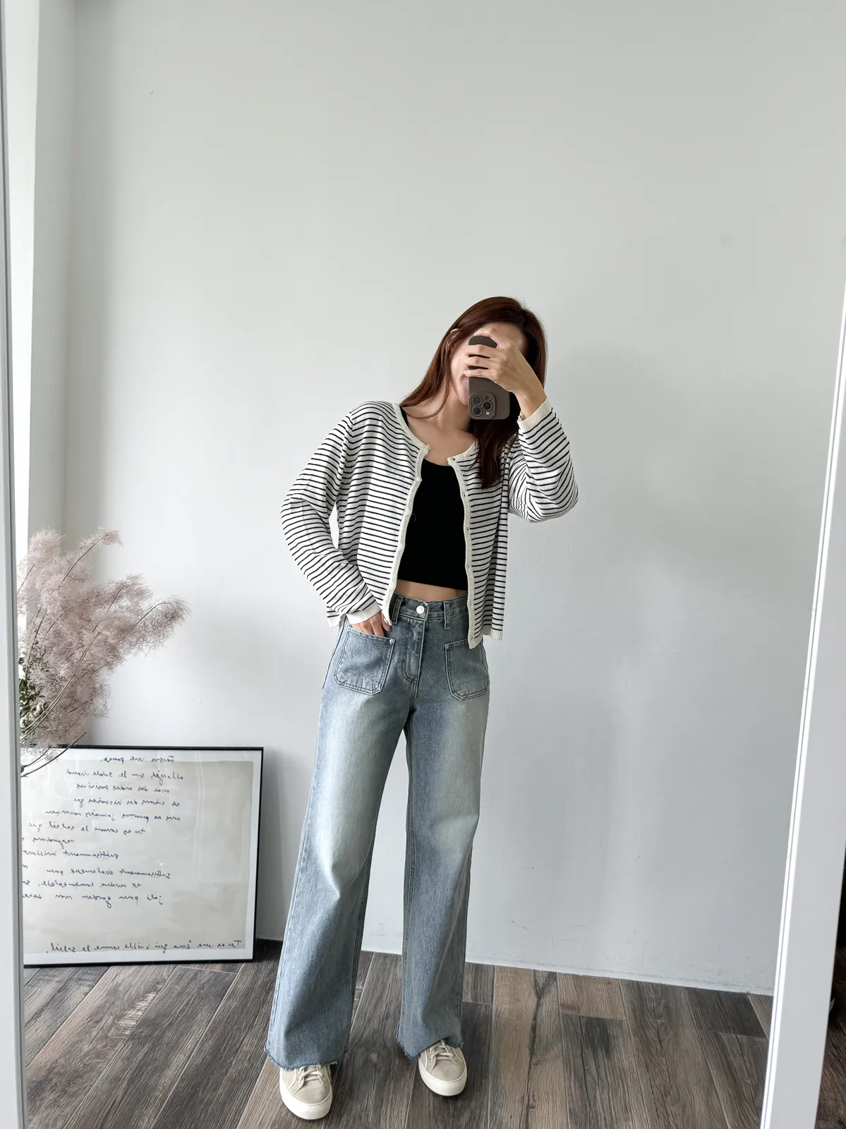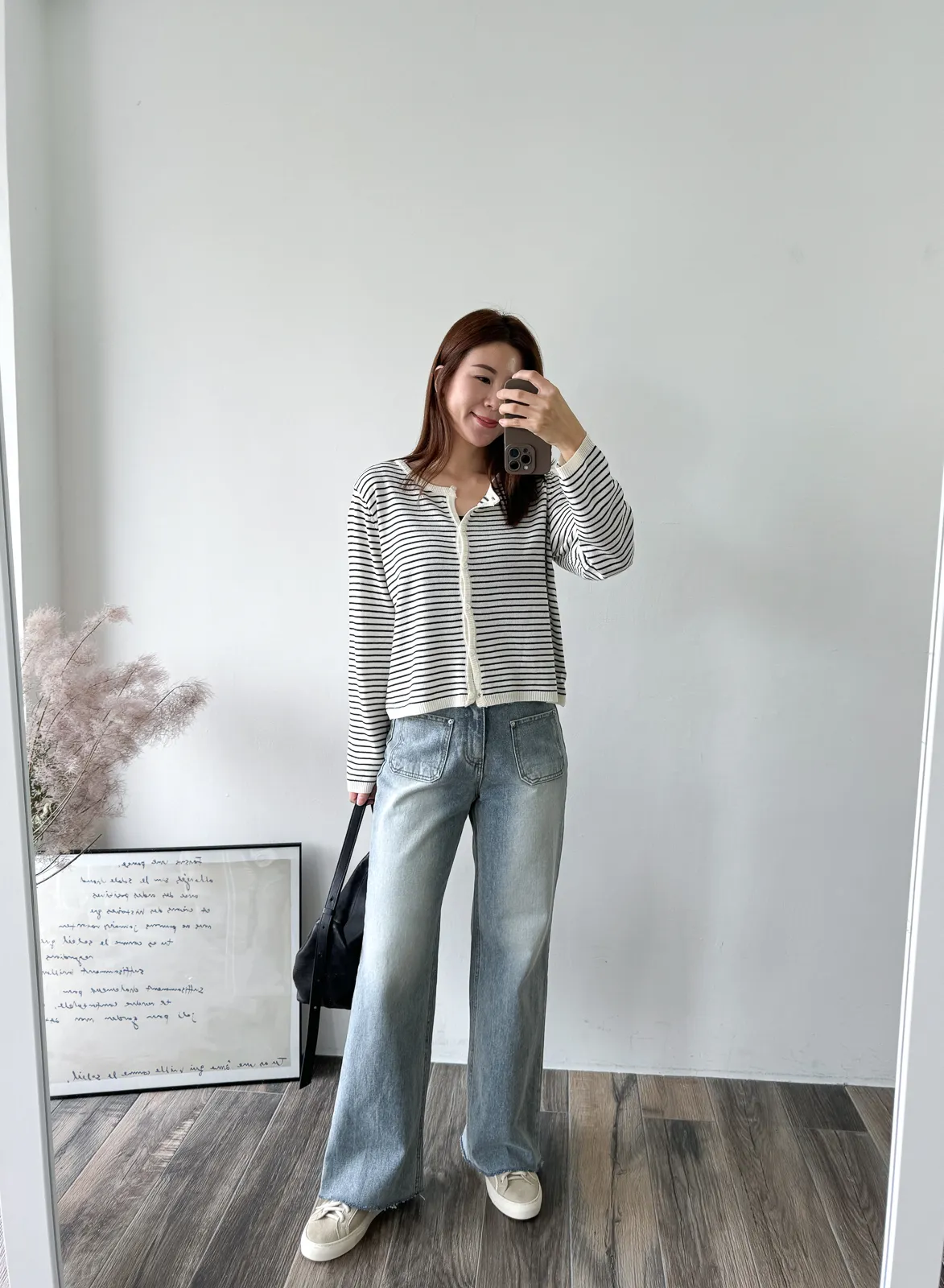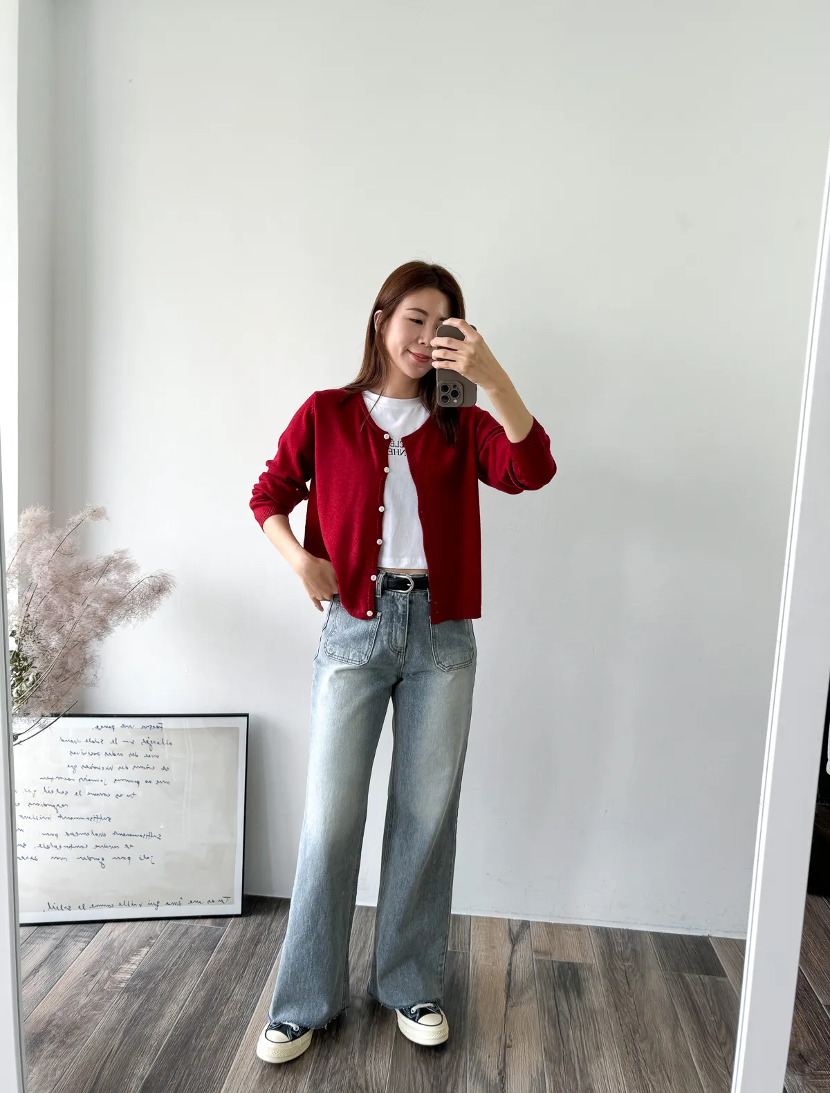 牛仔料 / 無彈性 / 中高腰 刷色實在爆美內!!! 非常少見的灰灰藍藍色調 而且意外的非常好搭 版型穿起來也是順順的修身 褲腳不修邊讓腿看起來更有延伸感~ 我自己是越穿越喜歡 褲子搭配的每一套穿搭都好好滿意 尺寸:SML 版正常 Model 158/48 臀35.5吋 平常穿S,這款穿S舒服不緊不鬆 detail//