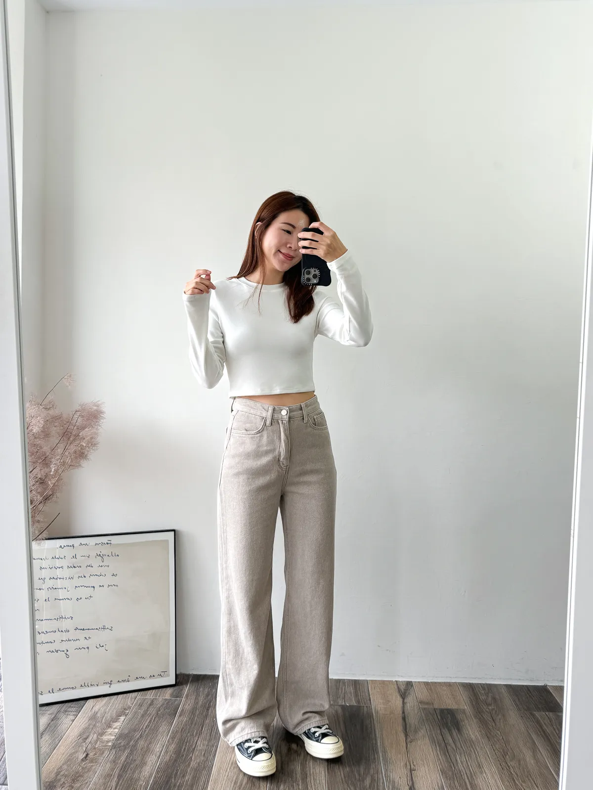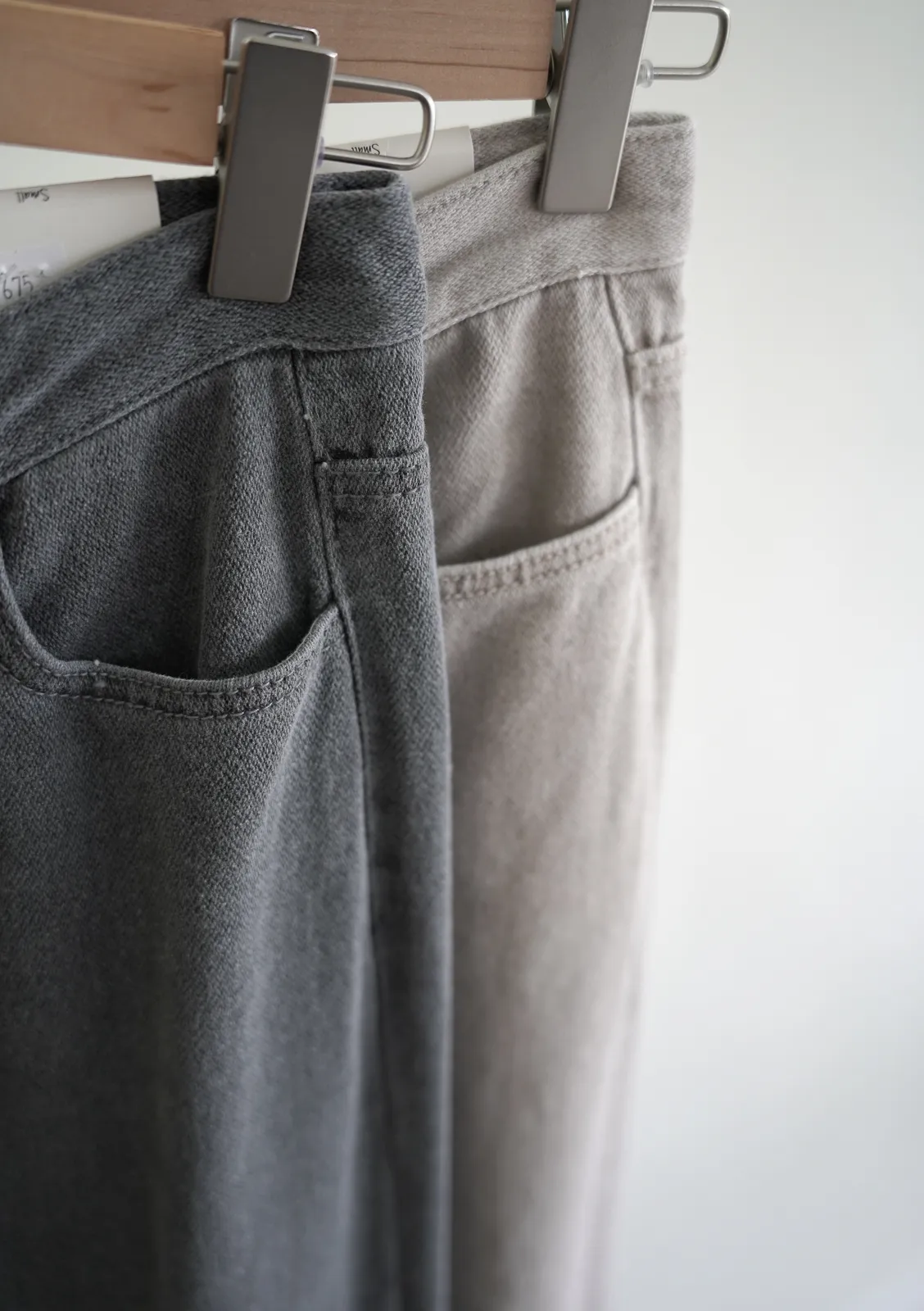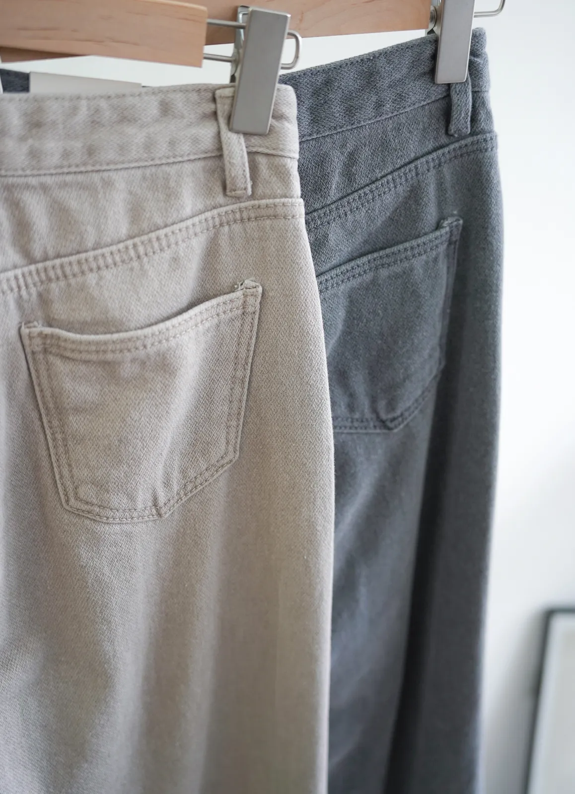 棉質 / 些微彈性 / 中高腰 完全被這款的顏色吸引~兩色都好迷人好美 再來吸引我的市內裏材質~是細緻的棉,非常親膚 版型有點像 “不會太寬直筒褲”那樣~臀圍到褲管順順直筒 不會太過寬鬆,上身配窄配寬都很好看 杏色很像沙色~ 也是這幾年最流行的色調 灰色是純色冷灰色調~我覺得也是少見的顏色 很美! model 158/48 (臀35.5吋) 平常穿S,這款穿S剛好,腰臀沒有空間 」