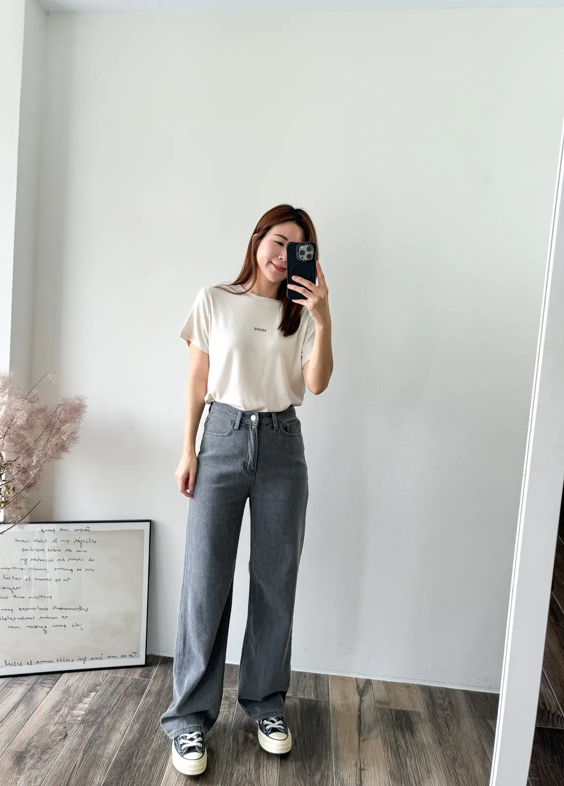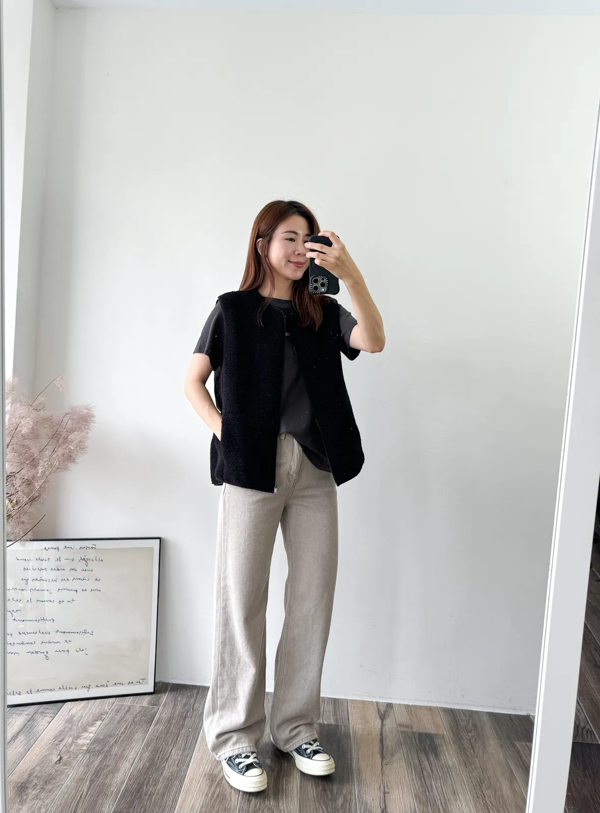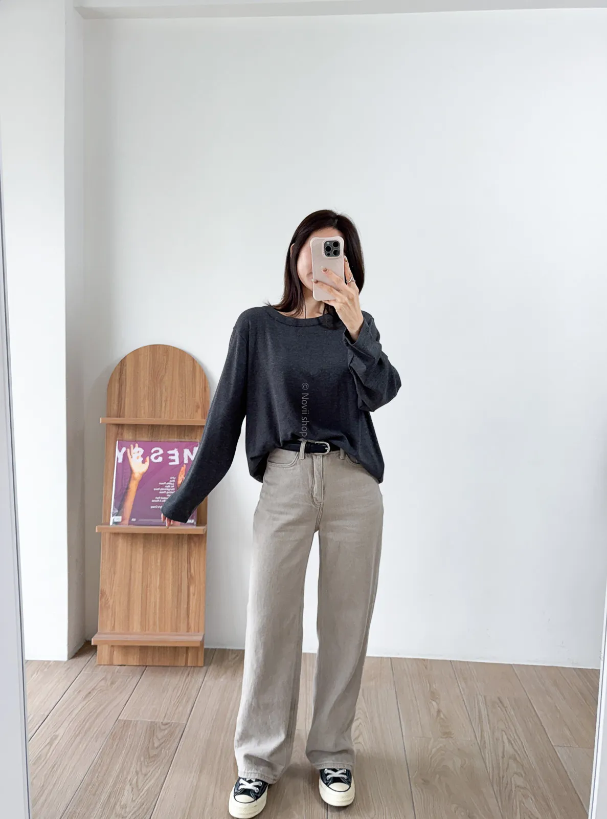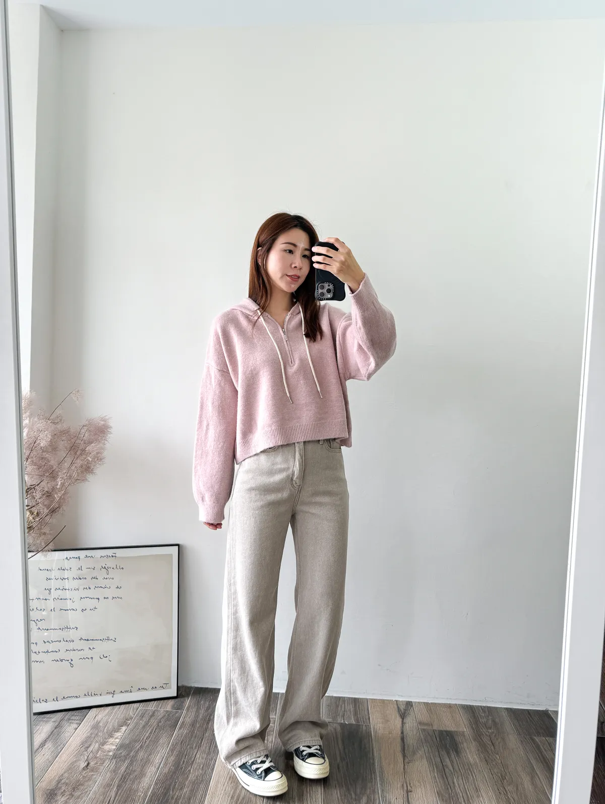 棉質 / 些微彈性 / 中高腰 完全被這款的顏色吸引~兩色都好迷人好美 再來吸引我的市內裏材質~是細緻的棉,非常親膚 版型有點像 “不會太寬直筒褲”那樣~臀圍到褲管順順直筒 不會太過寬鬆,上身配窄配寬都很好看 杏色很像沙色~ 也是這幾年最流行的色調 灰色是純色冷灰色調~我覺得也是少見的顏色 很美! model 158/48 (臀35.5吋) 平常穿S,這款穿S剛好,腰臀沒有空間 」
