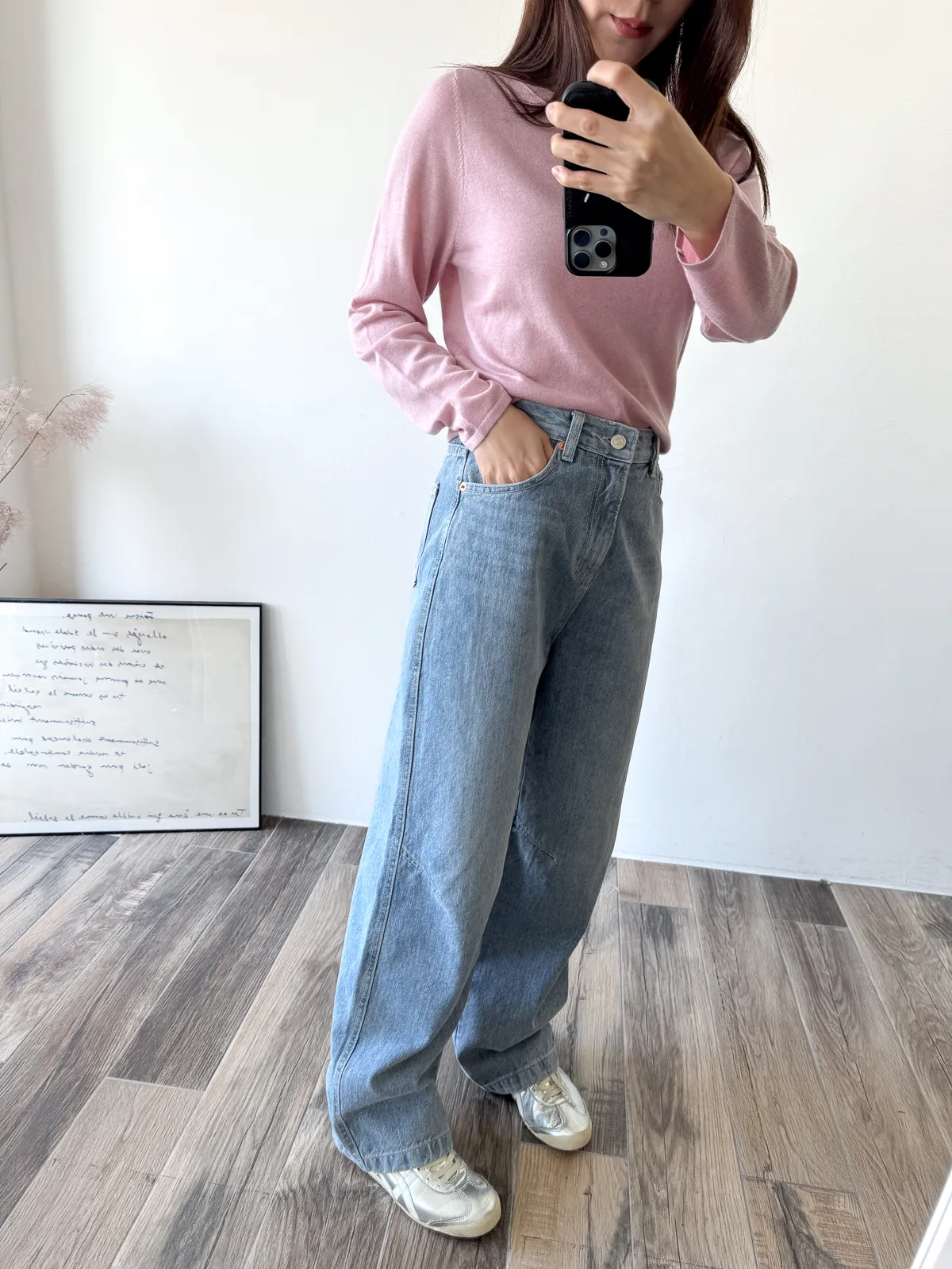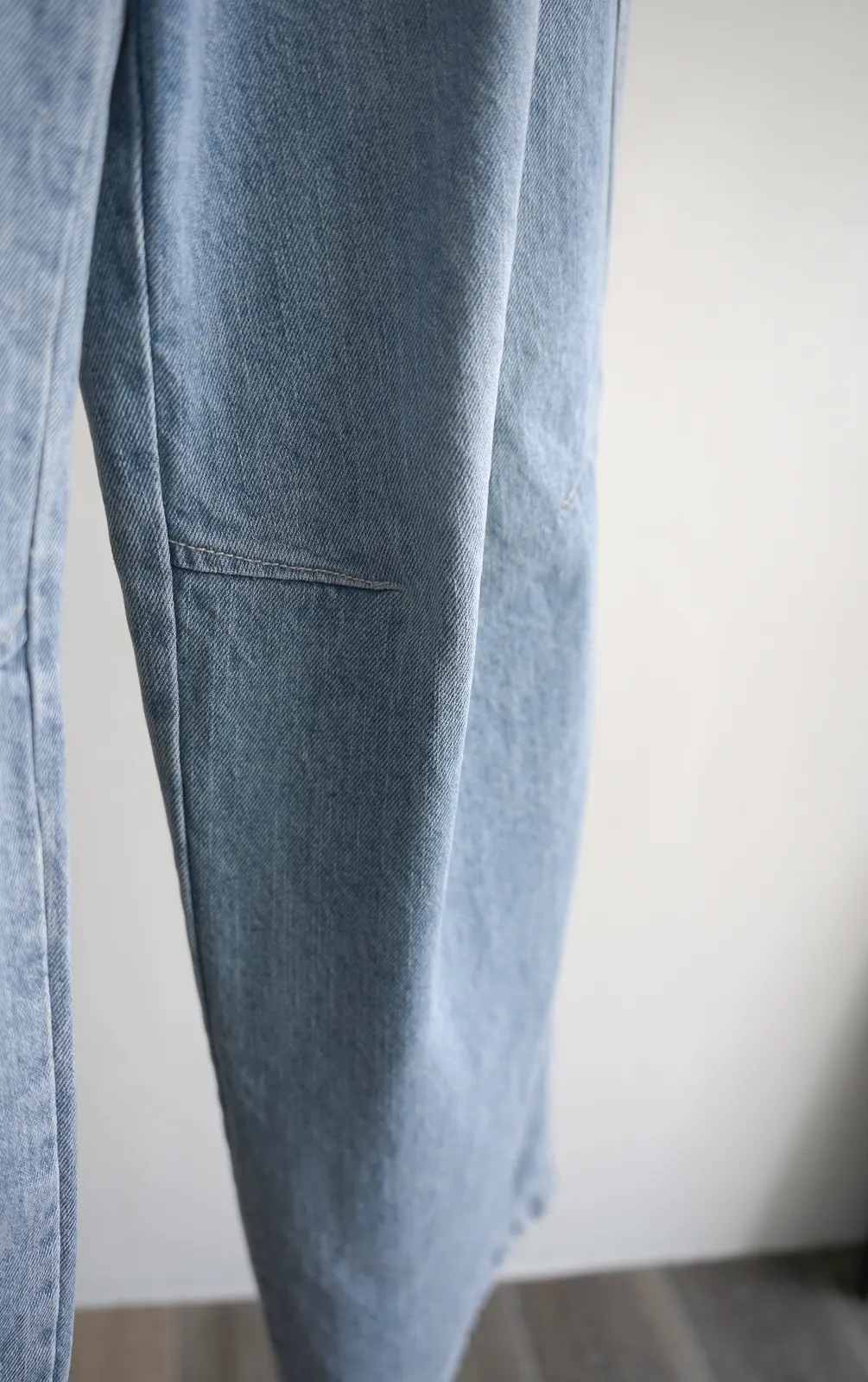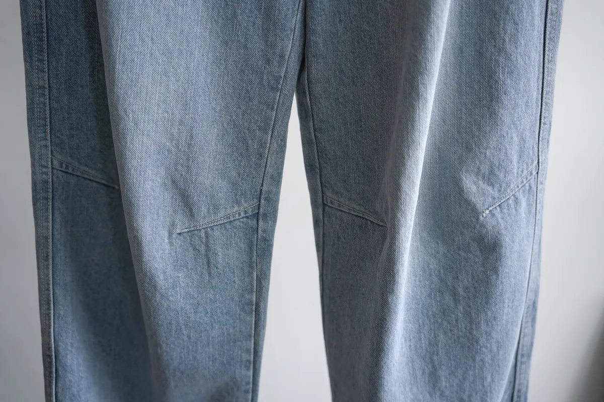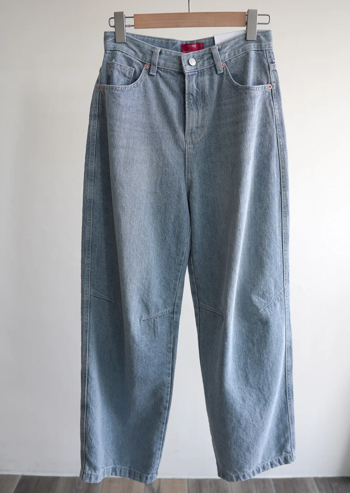 牛仔料/ 無彈性 / 中高腰 今年也很流行繭型褲~但這款不會太誇張 在膝蓋處多了一條斜車線讓褲子在中段立體一些. 從大腿一路直筒延伸到褲管地方微微縮小 就是繭型寬褲的重點 這件我自己也很喜歡~ 率性的感覺加上漂亮的刷色. SML 版稍大,平常小M27腰可以選S,小L29腰可以選L Model 158/48 (腰26 臀35.5吋) 平常穿S,這款穿S腰臀都有一些空間(此為展示品) detail//