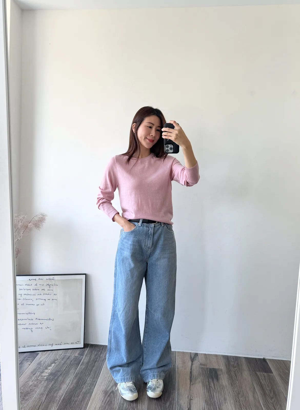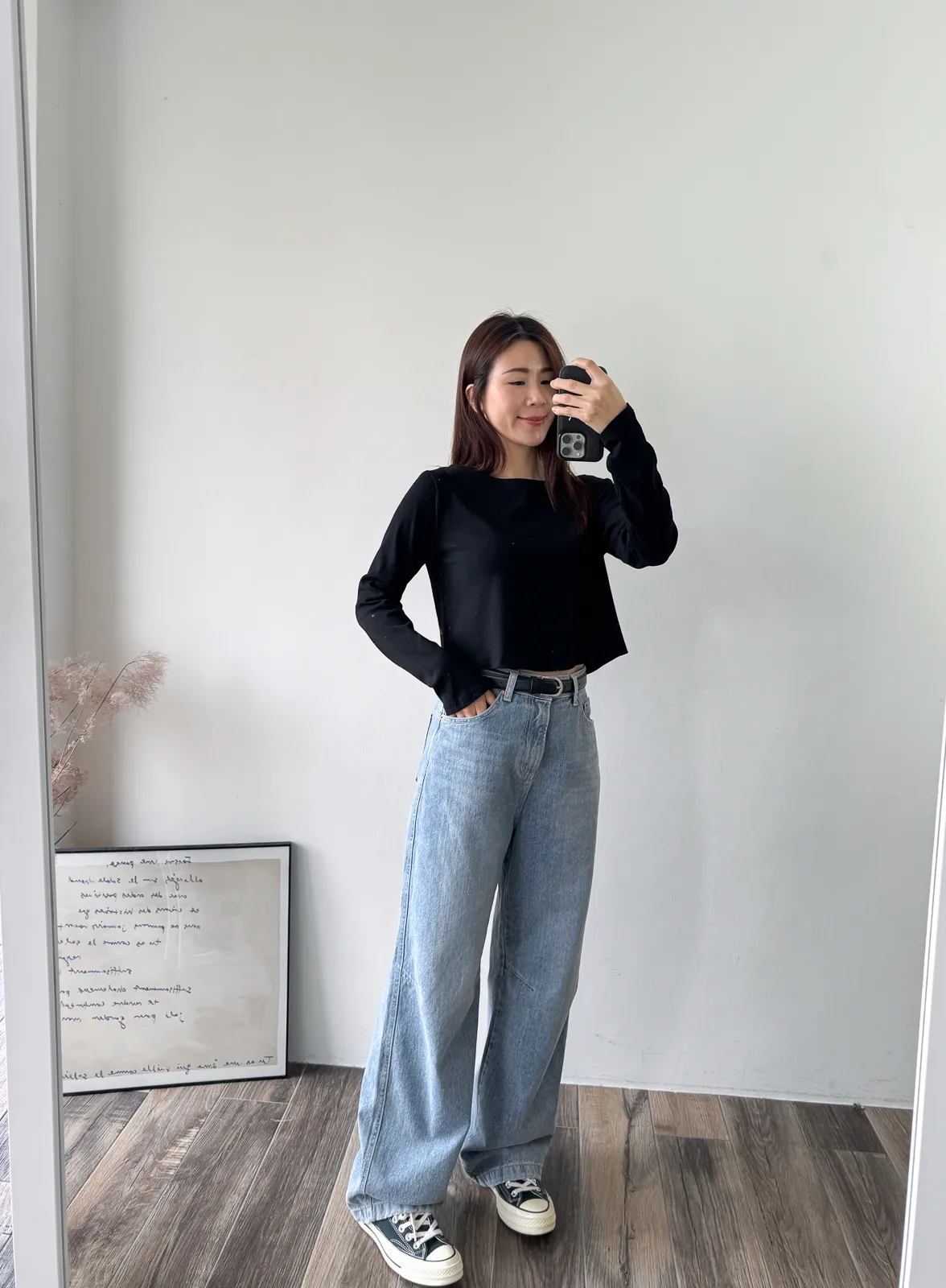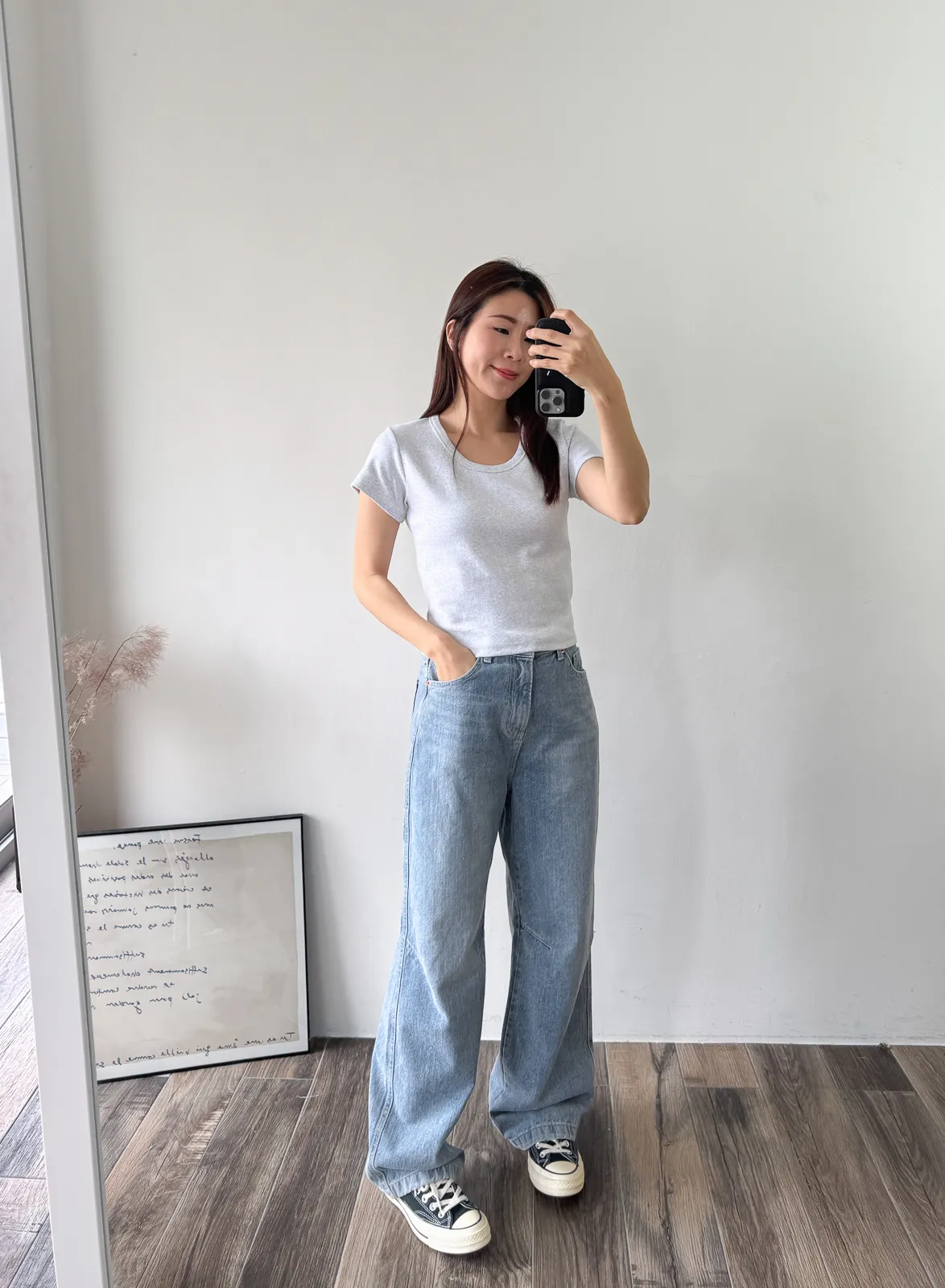 牛仔料/ 無彈性 / 中高腰 今年也很流行繭型褲~但這款不會太誇張 在膝蓋處多了一條斜車線讓褲子在中段立體一些. 從大腿一路直筒延伸到褲管地方微微縮小 就是繭型寬褲的重點 這件我自己也很喜歡~ 率性的感覺加上漂亮的刷色. SML 版稍大,平常小M27腰可以選S,小L29腰可以選L Model 158/48 (腰26 臀35.5吋) 平常穿S,這款穿S腰臀都有一些空間(此為展示品) detail//