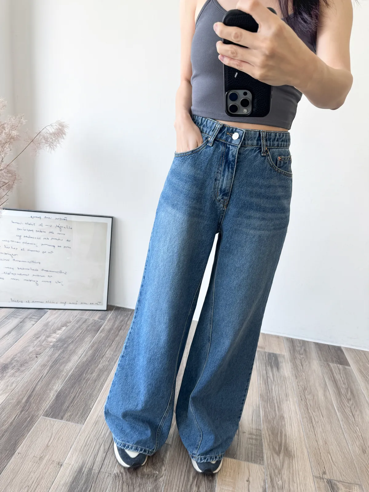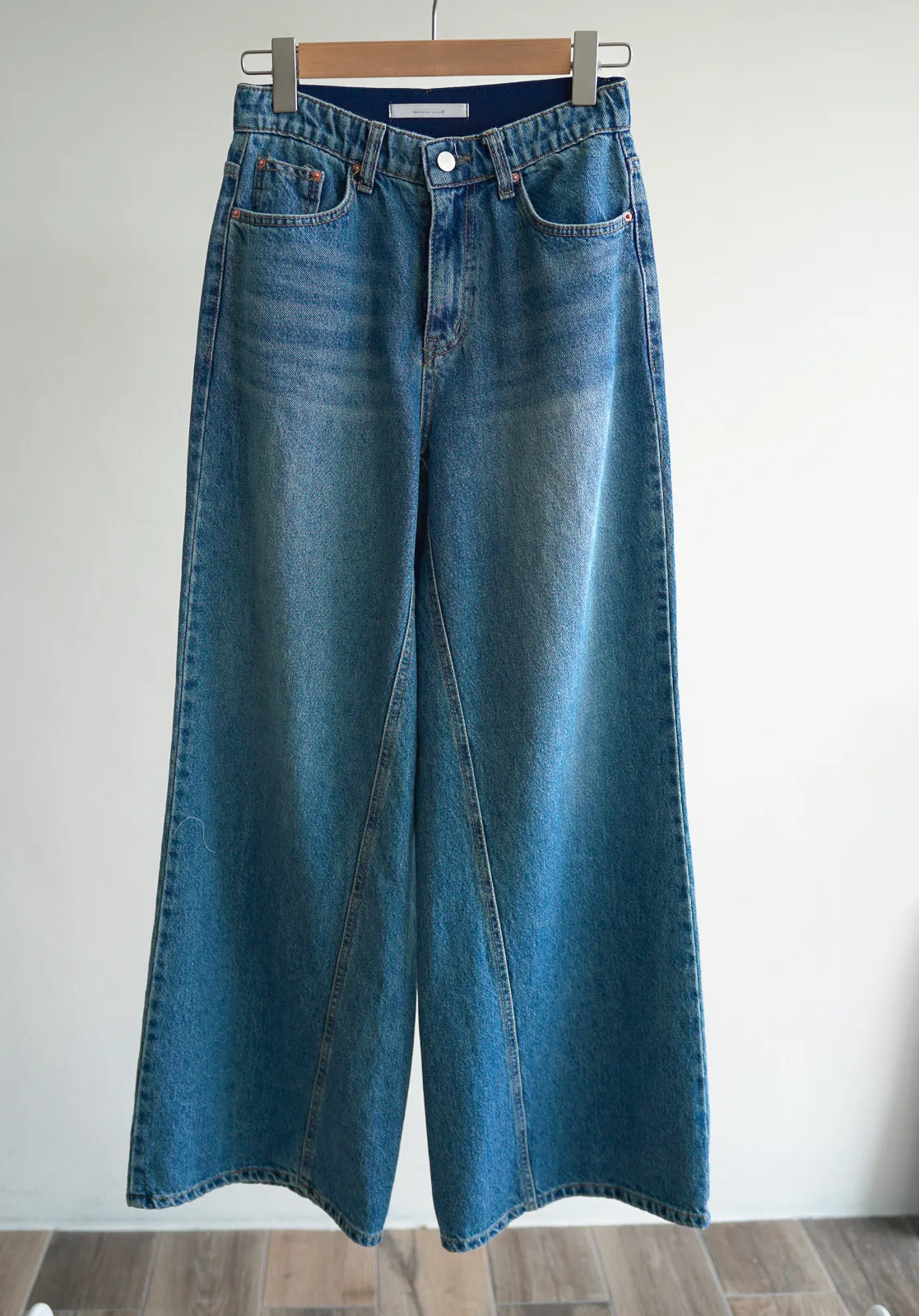 牛仔料 / 微彈性 / 中高腰 / 褲頭內圈鬆緊帶 哇賽!這件完全我的菜XD 本身是55身因此很愛穿短版上衣 配上這件A字寬褲超級完美~ 這件的刷色做得非常漂亮而且布料不是硬邦邦完全沒彈性的 活動上沒問題! 褲頭內圈鬆緊帶舒適度又更加分. 長度我覺得高個子也能帶我158搭配有些高度鞋子就可以要拿去改也OK 尺寸 SML 版微微偏大 27腰可以選S,29腰可以選M Model 158/49 (腰26 臀35.5吋) 平常穿S,這款穿S舒適,腰還有一點點空間(此為展示品) detail/