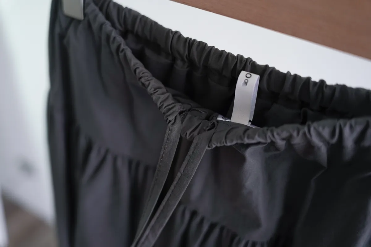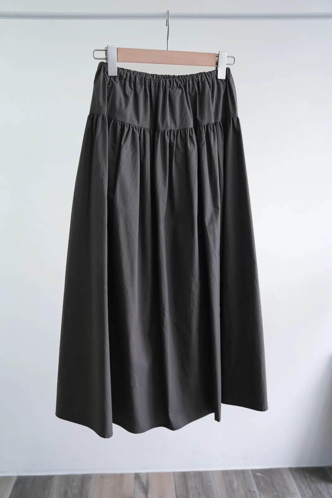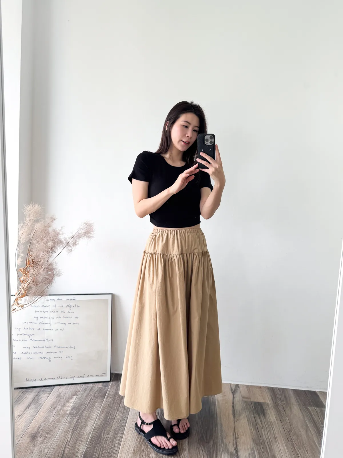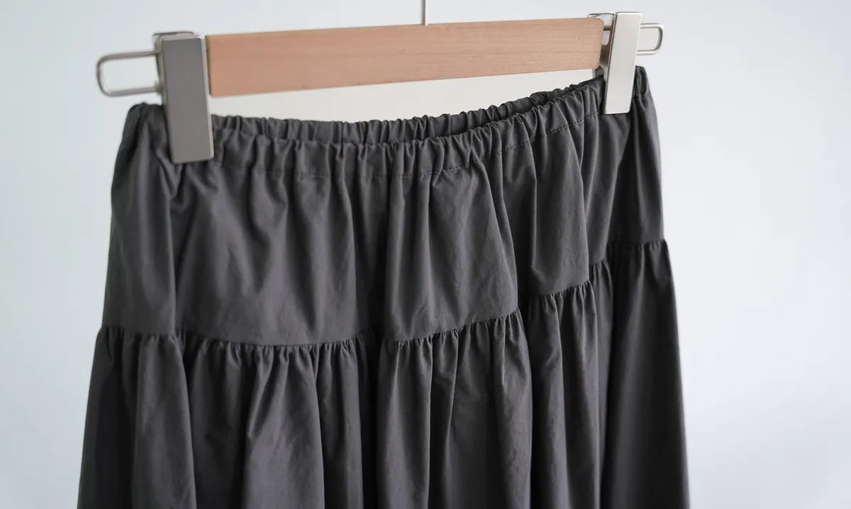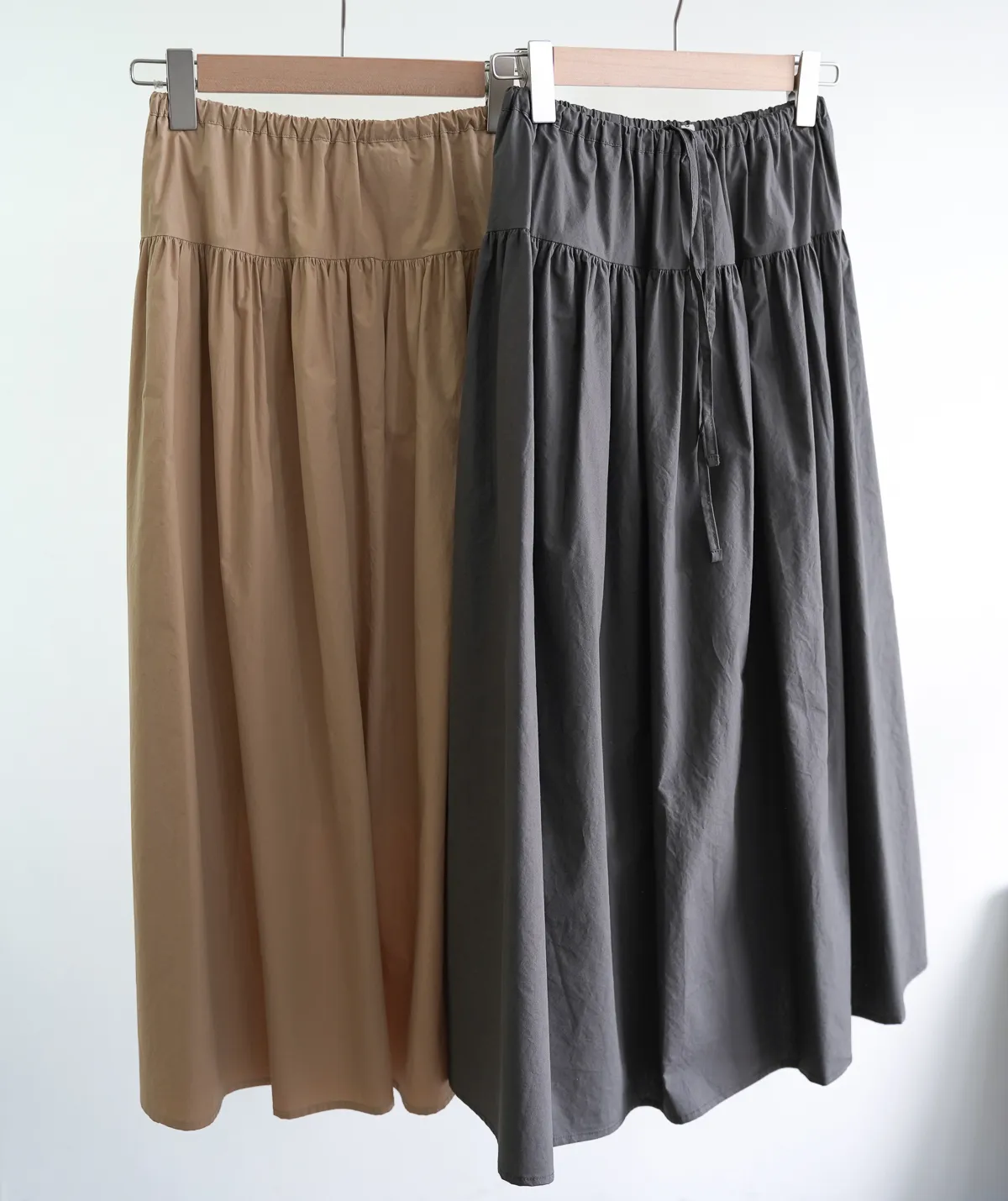 聚脂纖維 / 無彈性 /有內裡 這款好輕好薄夏天也完全沒問題的那種. 很喜歡肚子那邊多一條車線設計 讓裙子多了一點小設計感 但一樣素素的很好搭配~ 這款的抽繩是設計在背面內裡綁完後直接塞進去就可以 這樣肚子地方也不會凸凸的. Model 158/48 (腰26吋,臀35.5吋) detail//