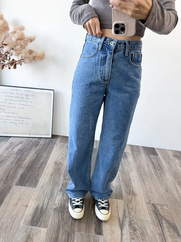牛仔料 / 無彈性/ 中高腰 去年熱賣破千的不會太寬直筒褲!! 大家一直敲碗再販售~這顏色真的是人見人愛 最後出來這個色調也是好喜歡沒讓我失望吶!! 真是不好意思~和目前出過的自訂直筒褲顏色真的都不同 這款是沒有多餘刷色和刷痕是很乾淨的中藍色調 特別的是~一年四季都可以拿來搭配! 再來~它的布料比去年不會太寬直筒褲觸感細緻許多 我自己好喜歡它的觸感每穿上都可以感受到舒服的布面. 版型部分就跟去年的不會太寬直筒褲一樣 順身又顯瘦不會太寬的版型怎麼搭配都不會出錯! Model 158/47 (腰26腰 臀35.5吋) 平常穿S,這款穿S剛好舒服 detail/