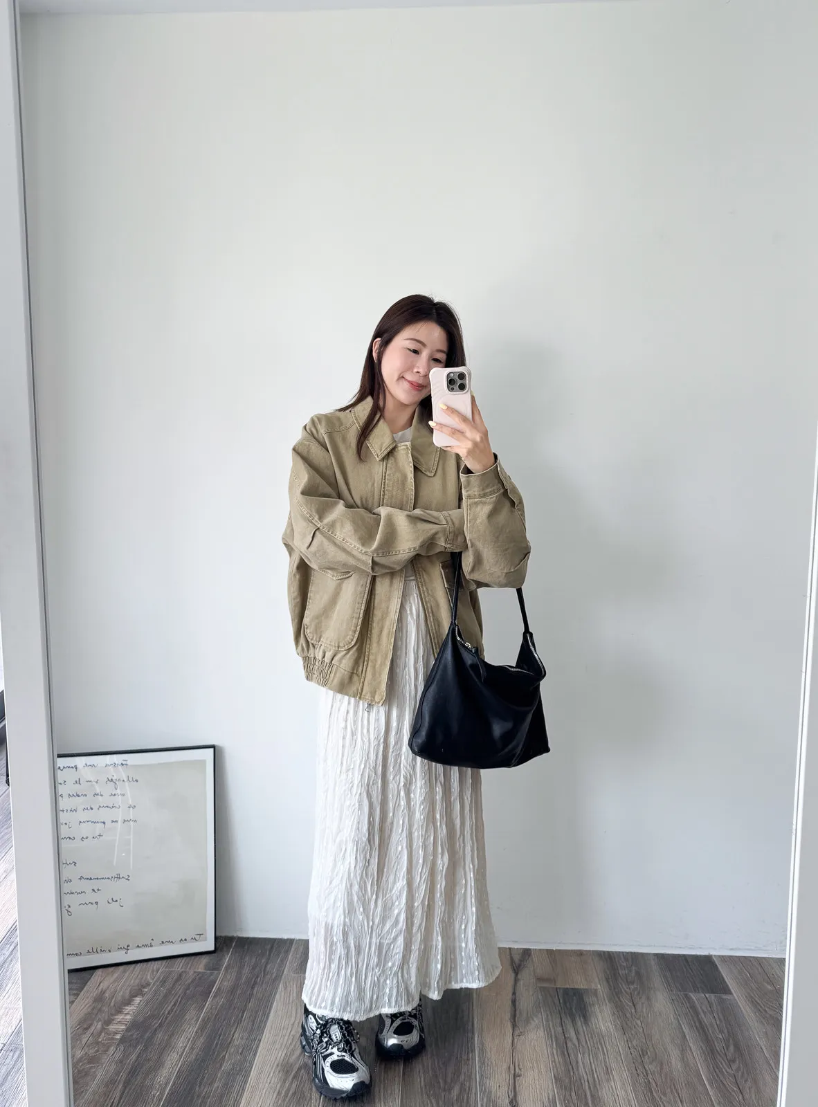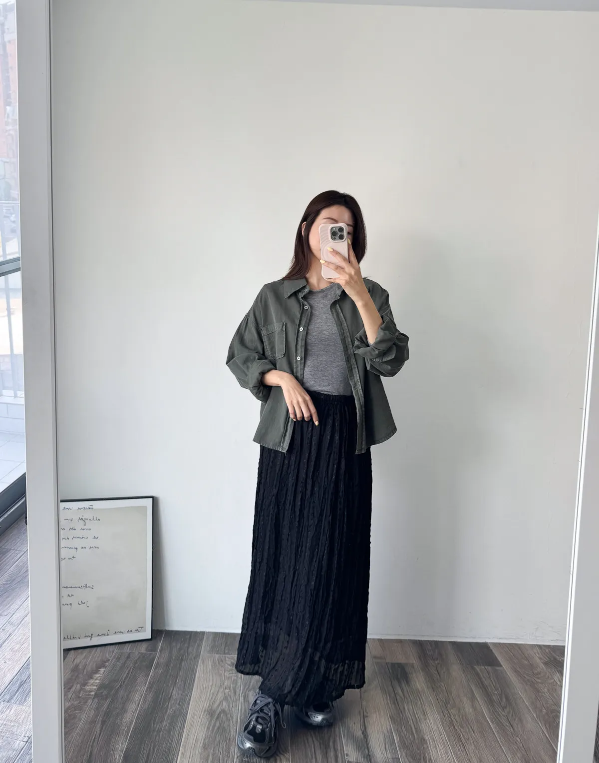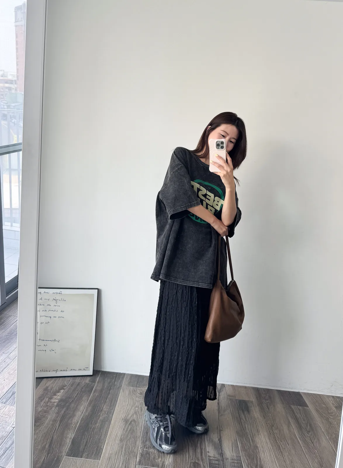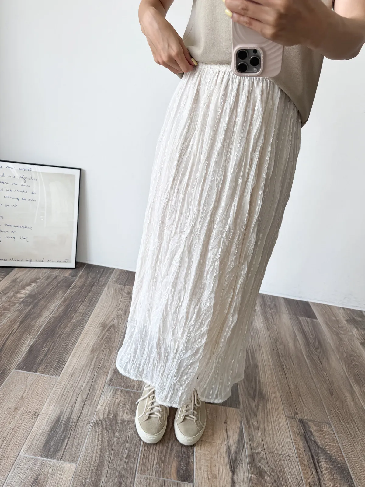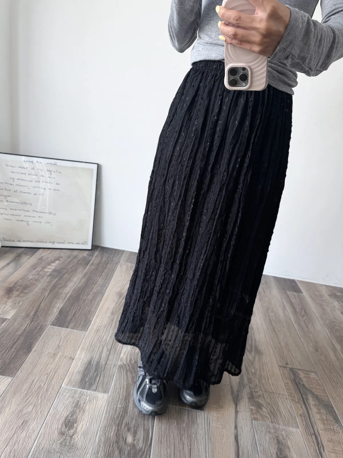 雪紡紗 / 有內裏 / 有彈性 這款也大推~ 喜歡女孩一點可以入手這款! 近看布料才可以看出共有三種不同材質組合而成 底部是素面細雪紡紗拼接粗紗的直線條紋 最後點點部分其實是帶點亮面的毛毛! 整件故意做皺皺布料穿起來莫名的很顯瘦和修飾呢~ Model 158/48 (腰25吋 臀35.5吋) detail//