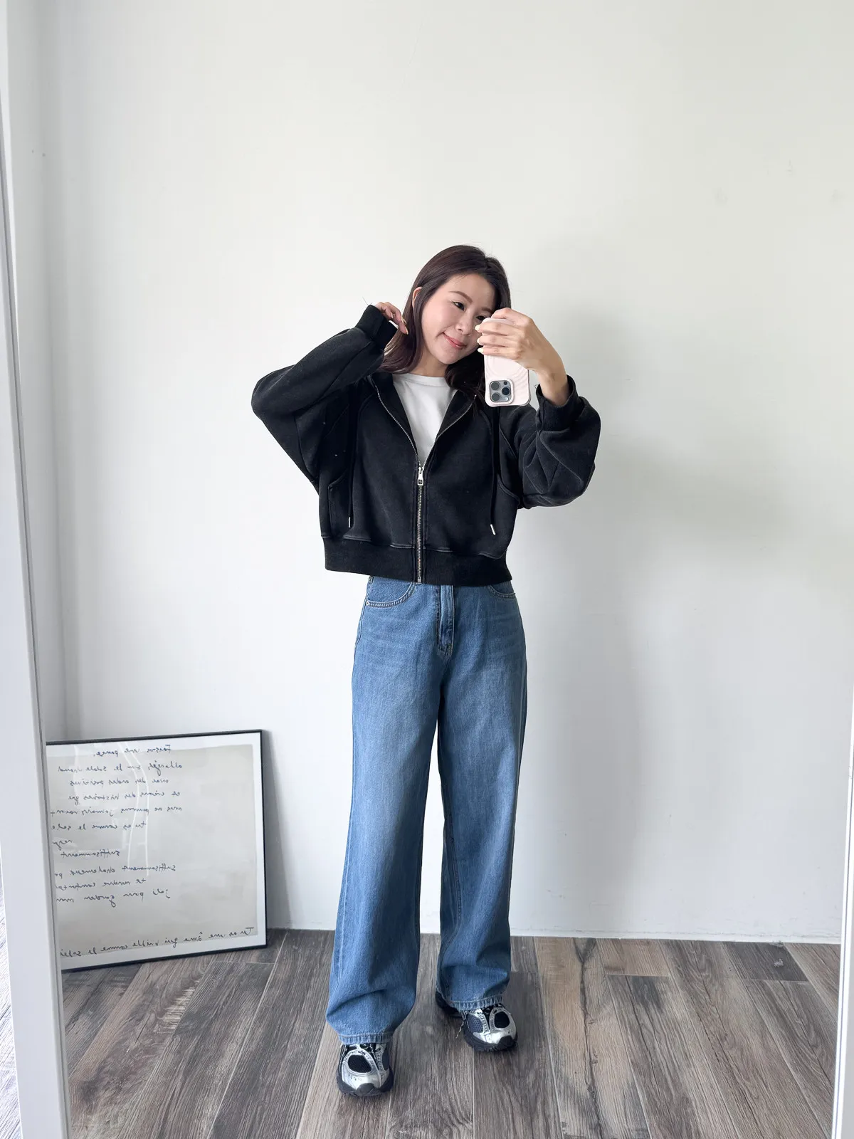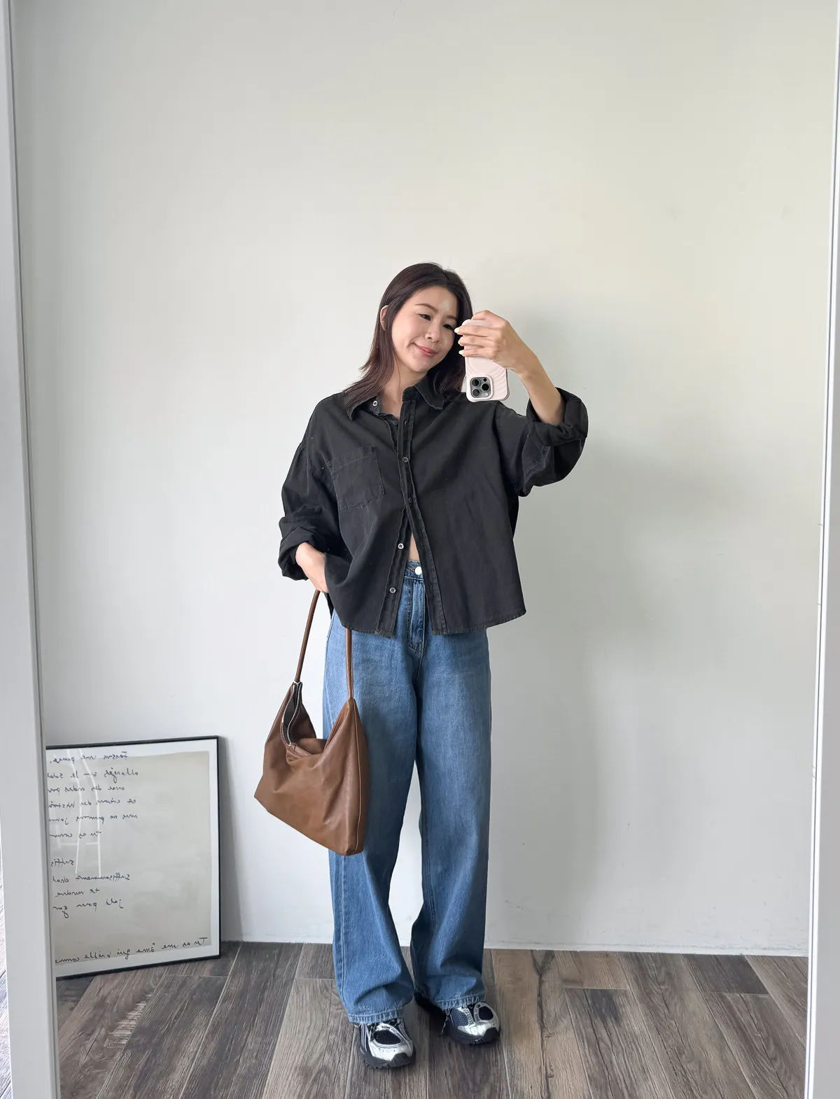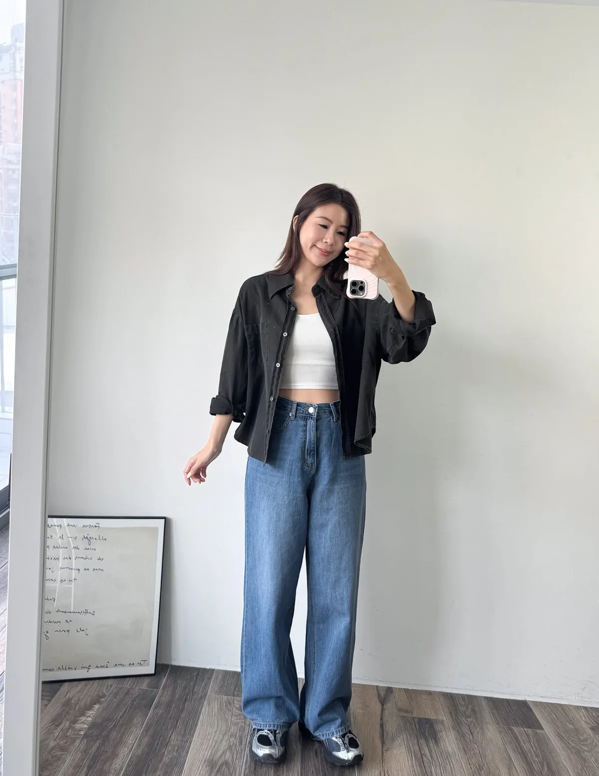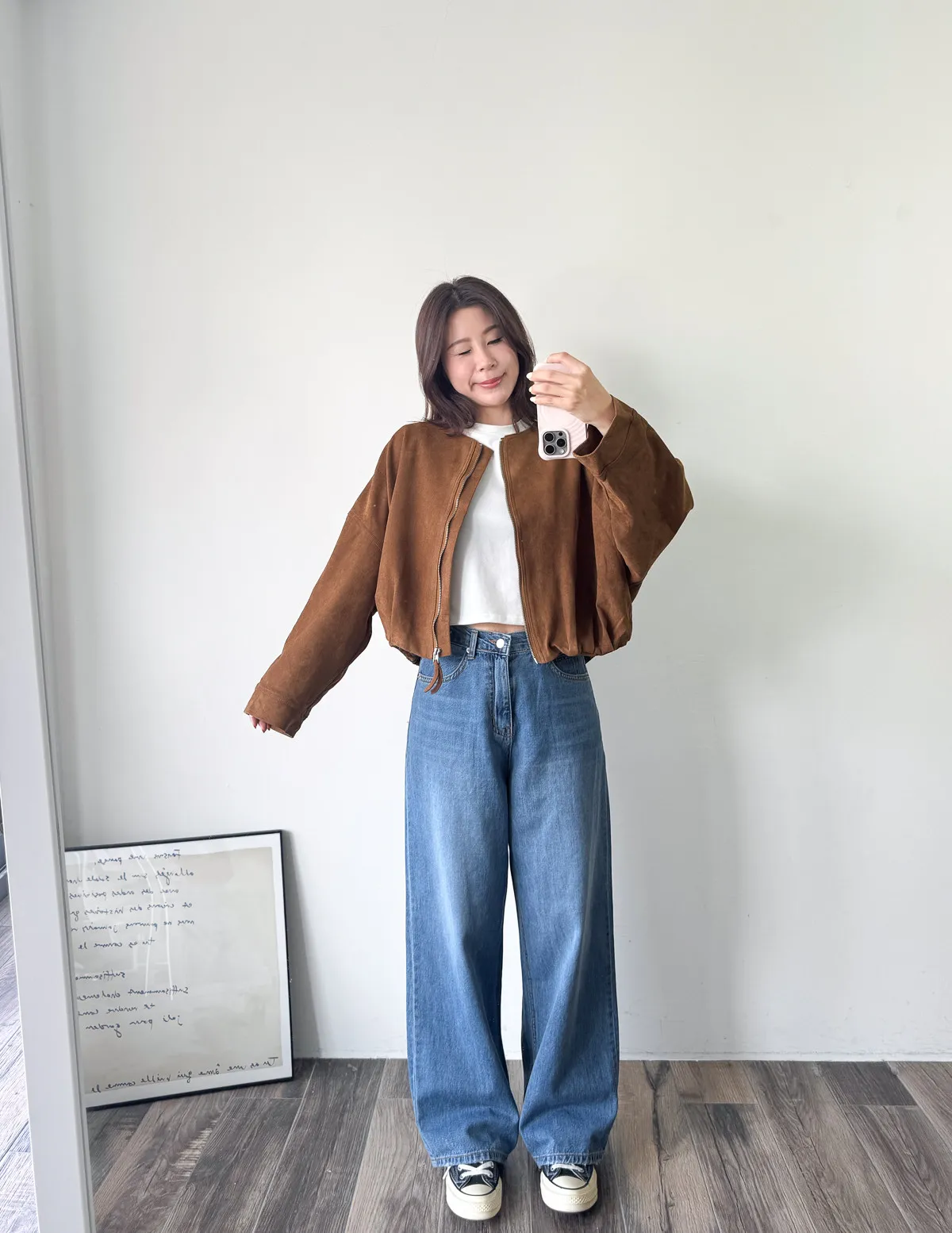 牛仔料 / 無彈性 / 後鬆緊 / 中高腰 這款穿上去就可以感覺到布料的細緻和親膚感 我自己超滿意!!! 版型整體是寬褲剪裁到褲管的地方有稍微窄一點點 高個穿九分感也很好看 我158穿落一點在鞋面兩種不同風格都很有型! Model 158/48 (腰25吋 臀35.5吋) 平常穿S,這款穿S不鬆不緊 detail//