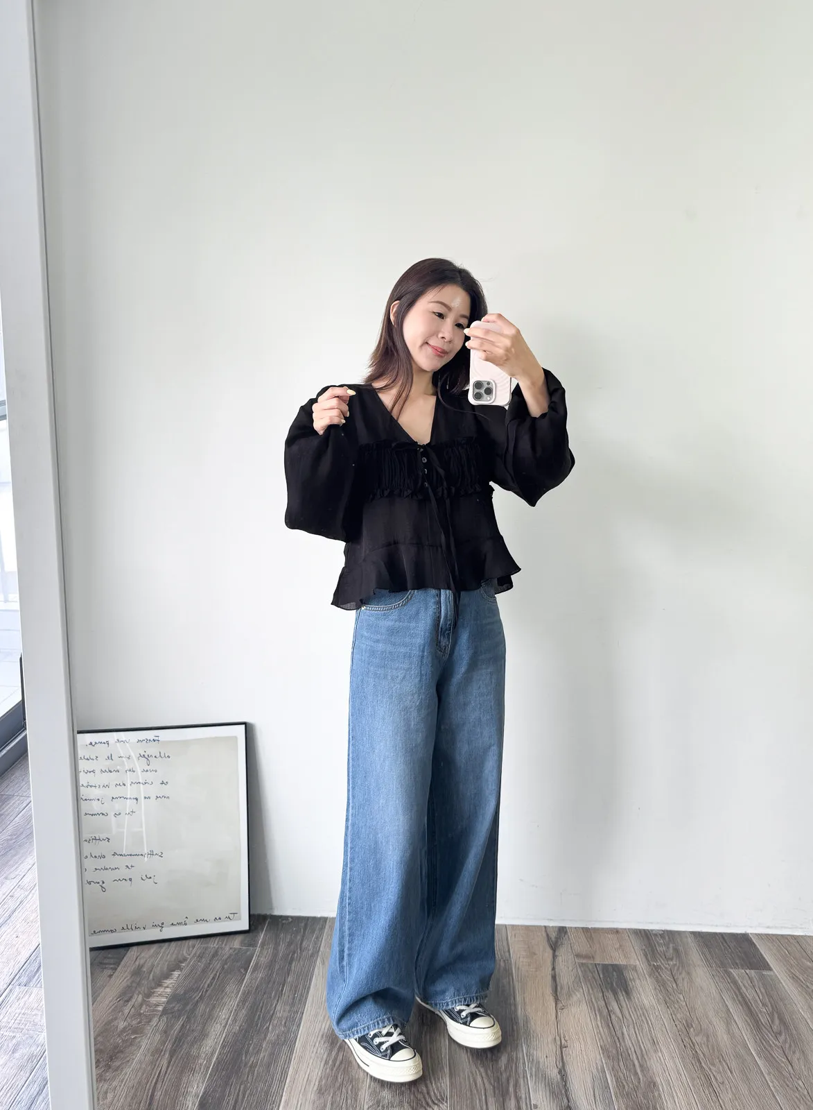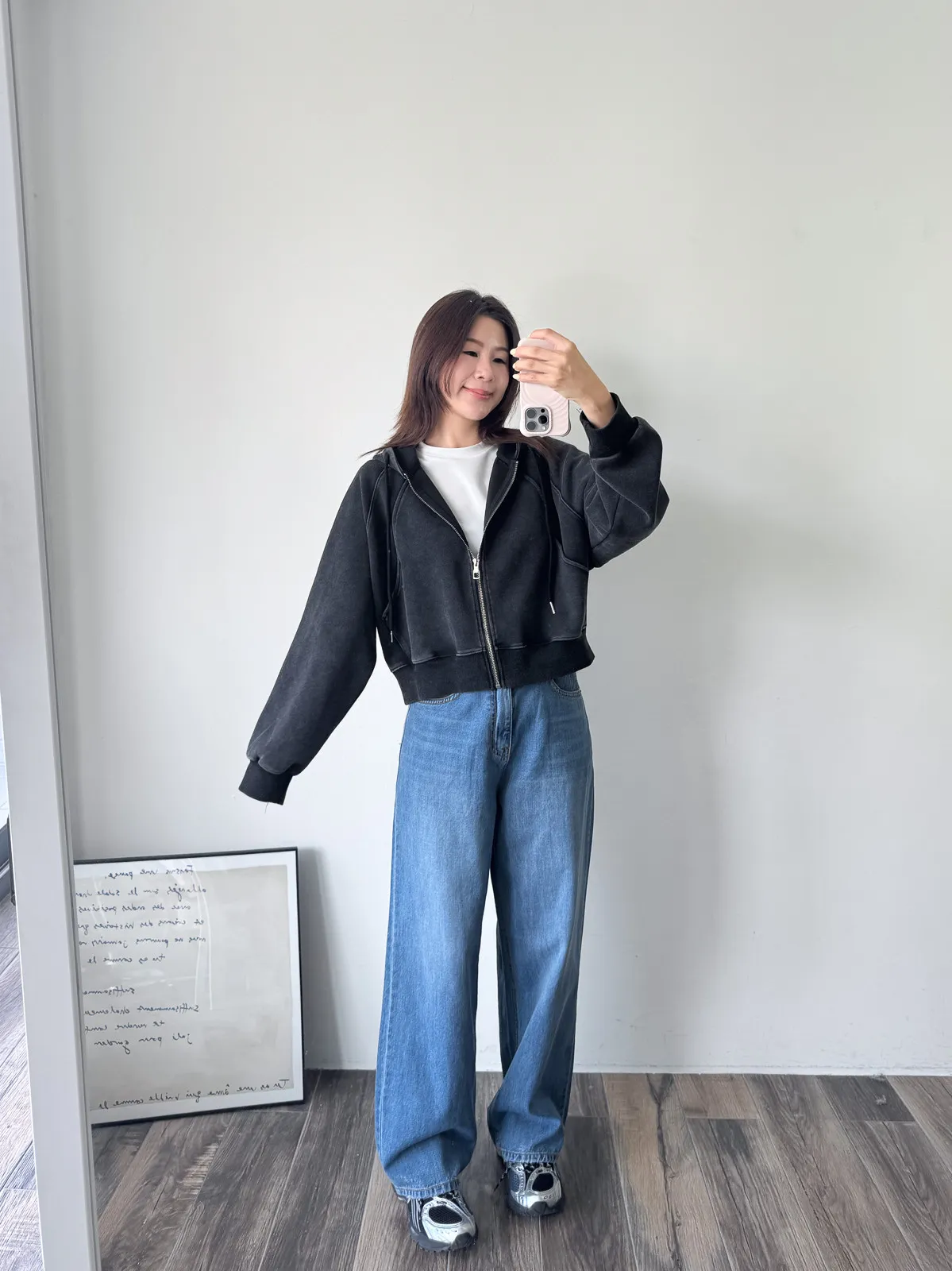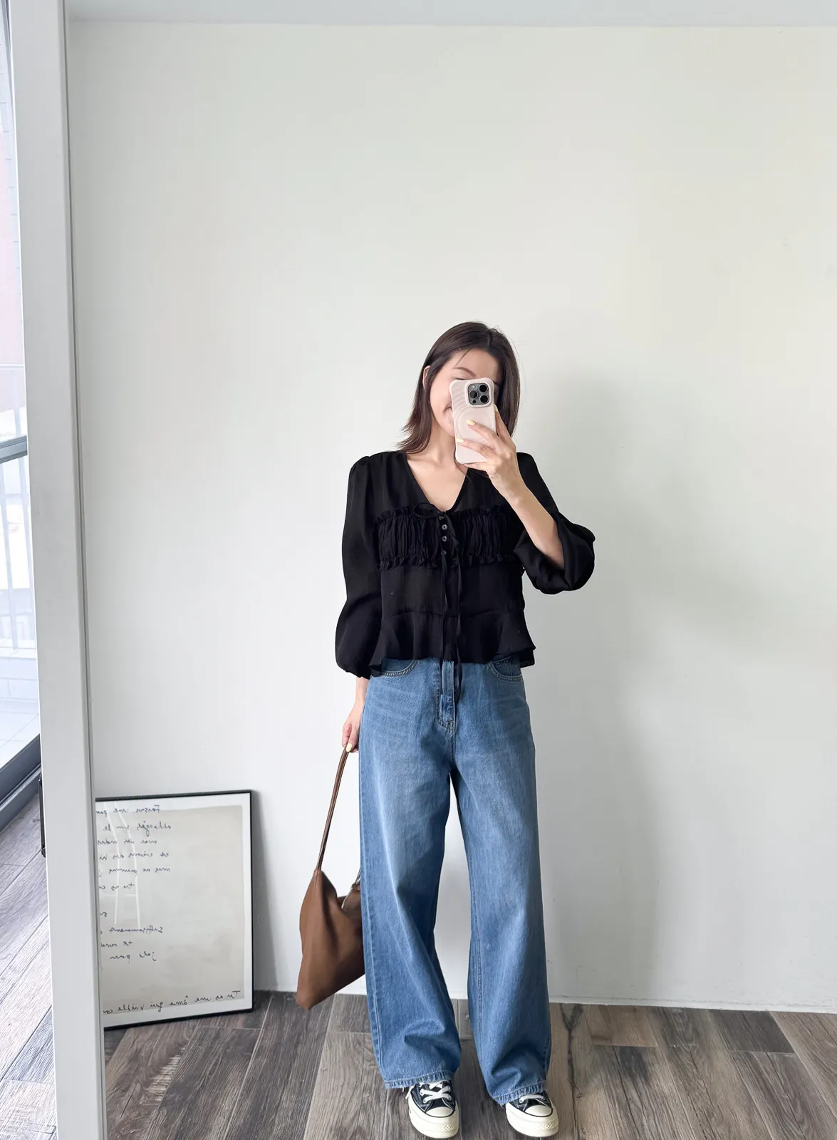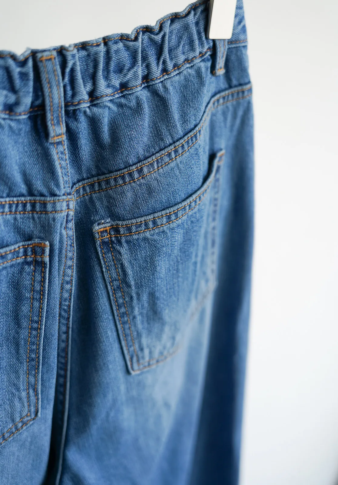 牛仔料 / 無彈性 / 後鬆緊 / 中高腰 這款穿上去就可以感覺到布料的細緻和親膚感 我自己超滿意!!! 版型整體是寬褲剪裁到褲管的地方有稍微窄一點點 高個穿九分感也很好看 我158穿落一點在鞋面兩種不同風格都很有型! Model 158/48 (腰25吋 臀35.5吋) 平常穿S,這款穿S不鬆不緊 detail//