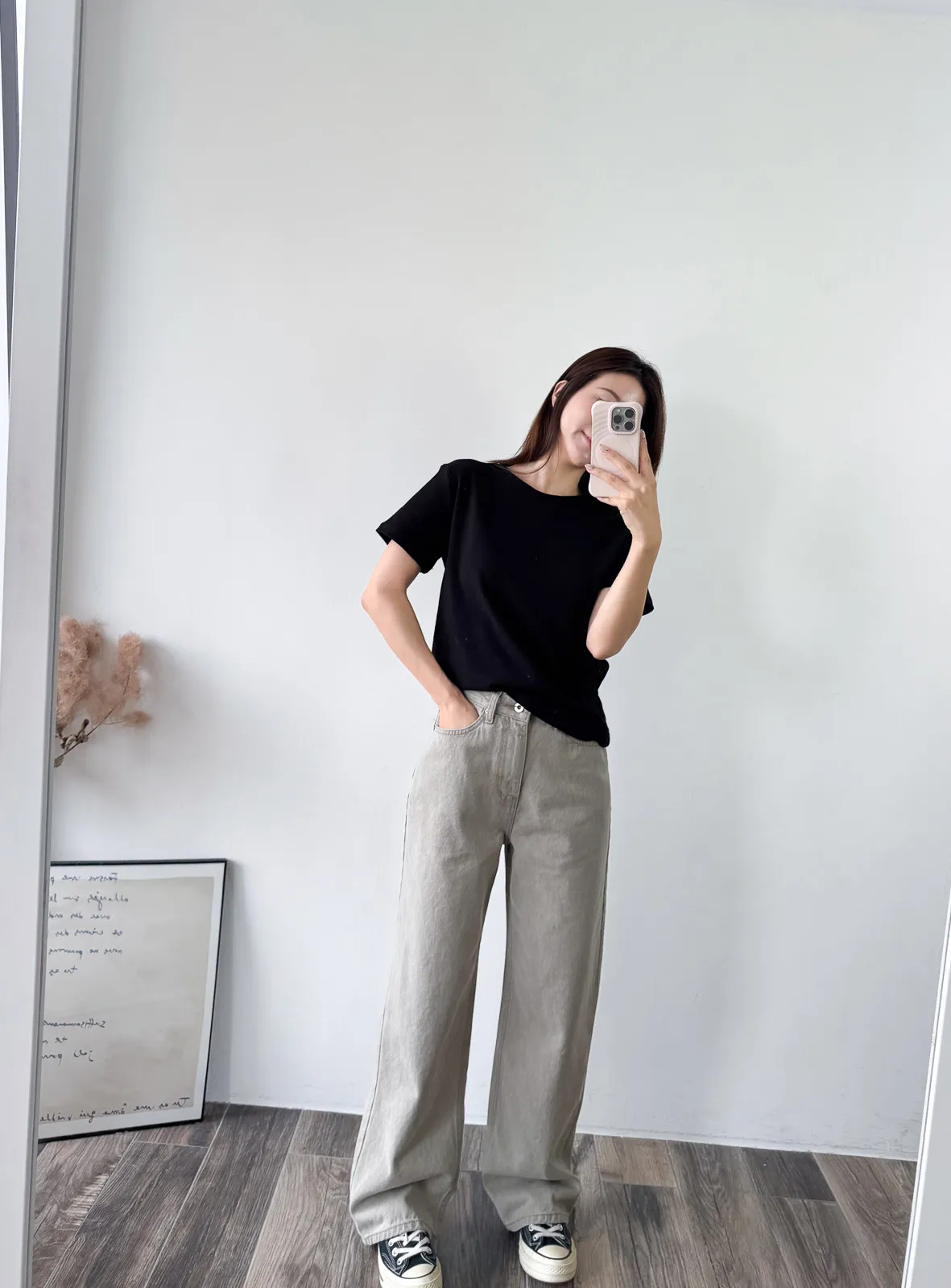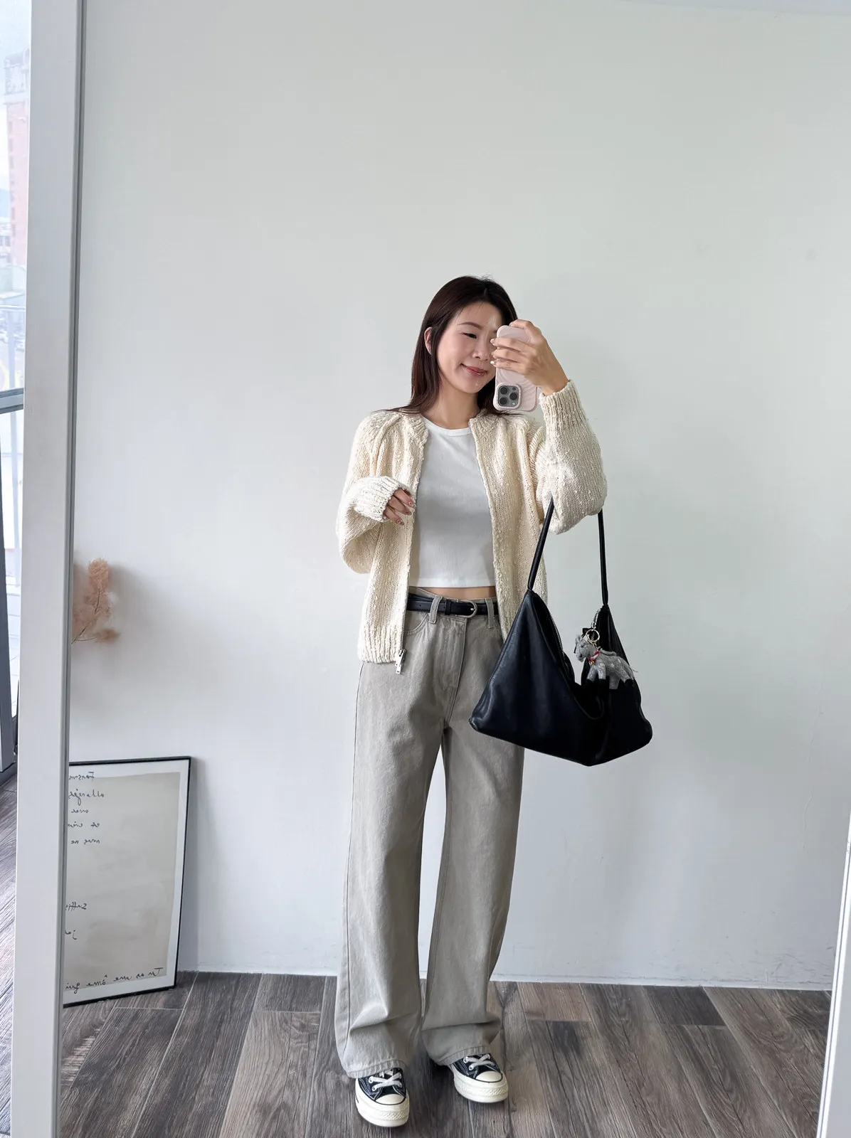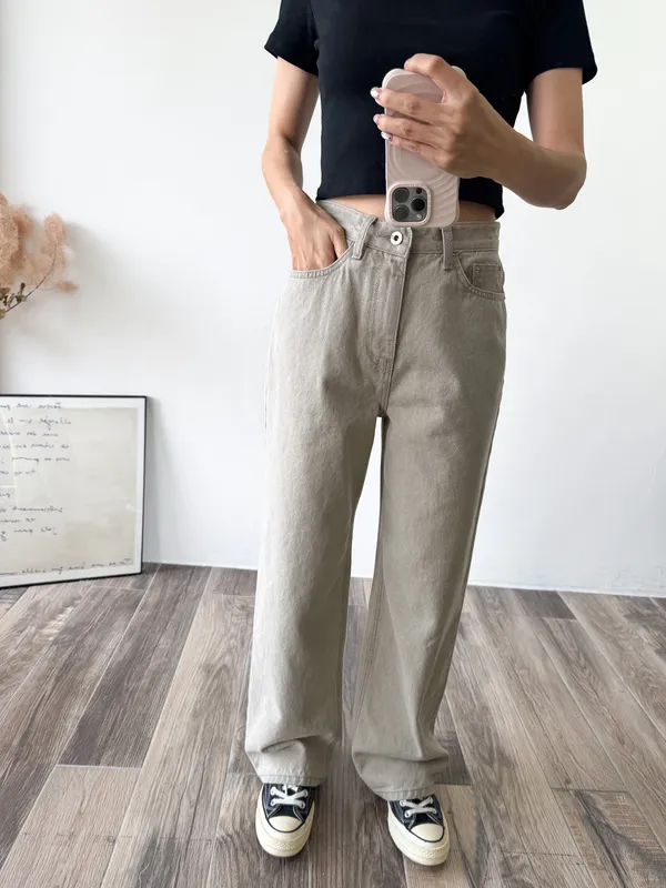 牛仔料 / 無彈性 / 中高腰 今年是又是大地色的天下~ 好多奶茶色和巧克力色的褲子 對這件奶茶色直筒褲根本一件鍾情. 色調不會太膚是帶點灰色調的奶茶色. 版型我覺得大家應該都會喜歡~ 跟之前賣很好的不會太寬直筒褲版型很像也是同一家廠商! 這版型真的好百搭上身不管配合版或是寬大版都沒問題. Model 158/48 (腰26吋 臀35.5吋) 平常穿S,這款穿S腰臀舒服 detail/