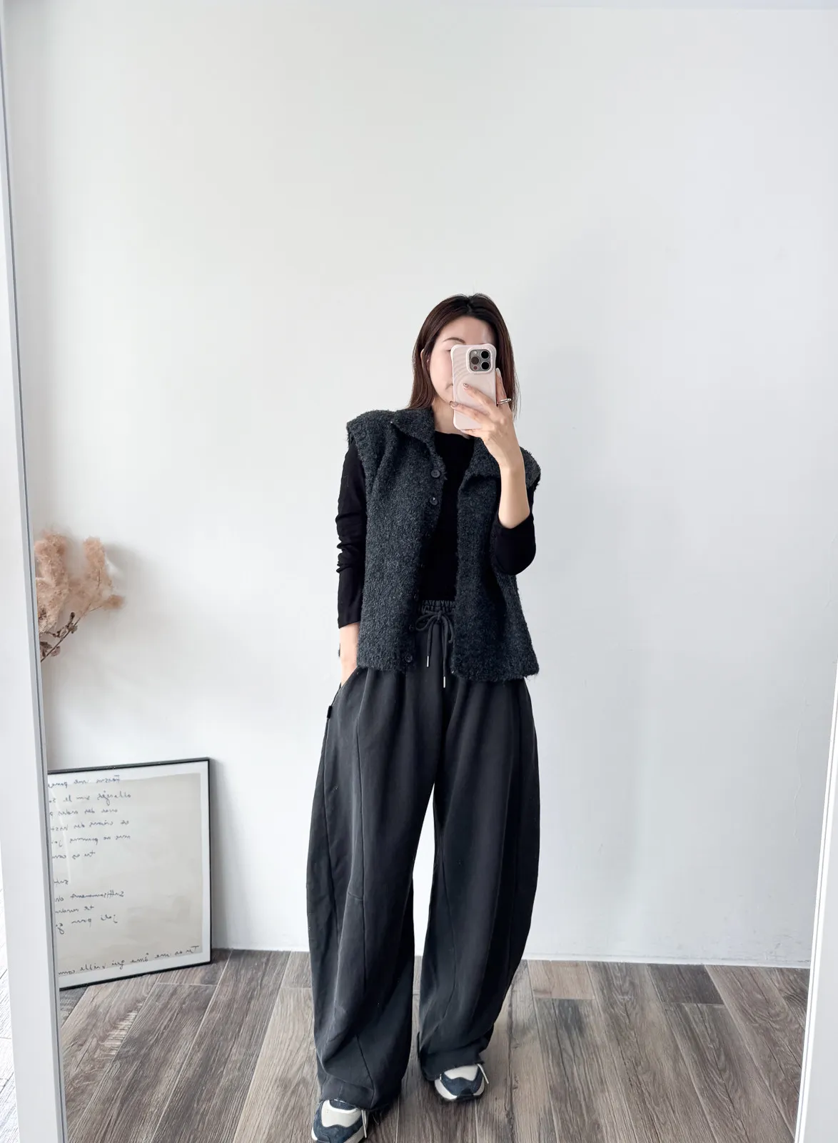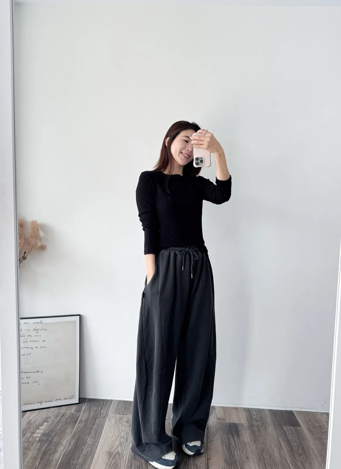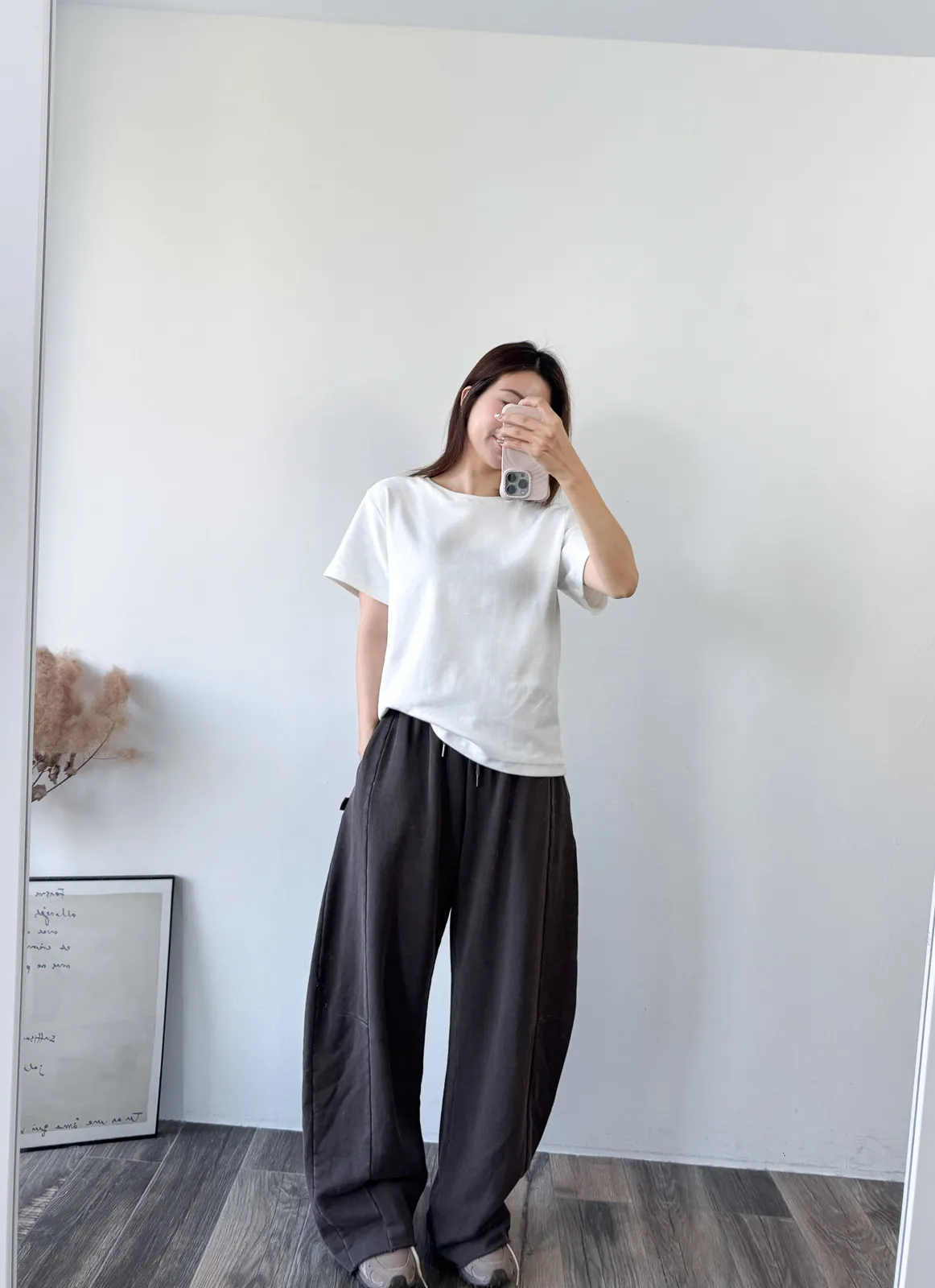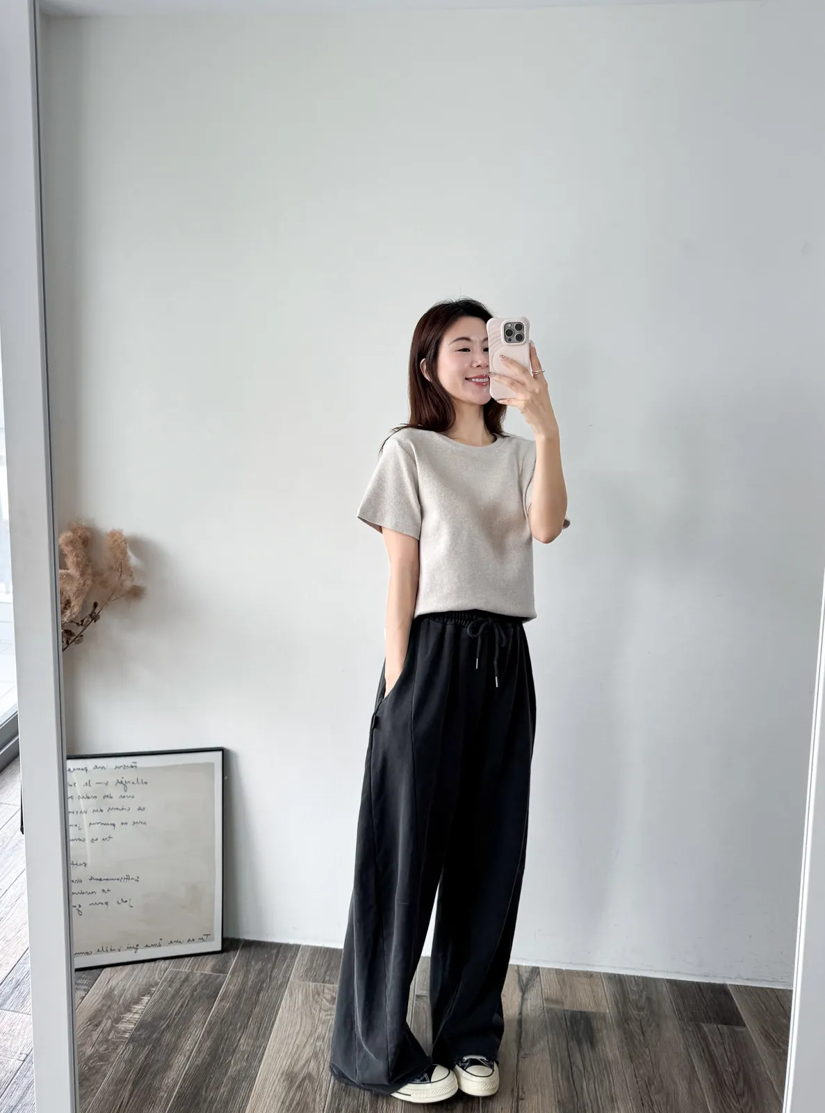 水洗棉 / 有彈性 /褲頭鬆緊+抽繩 小個穿會有比較明顯的繭型褲型~ ML身形或是高個一點撐起褲子會更順身 看韓國麻豆穿超好看!! 顏色也是很漂亮的水洗色調 深灰和深咖都是秋冬百搭也不會太過強眼的色調! Model 158/48(腰26 臀35.5吋) detail/