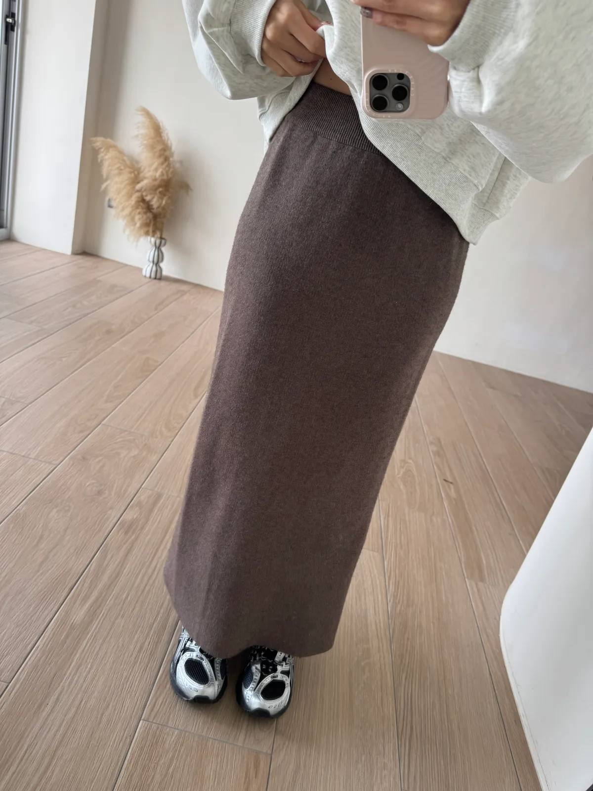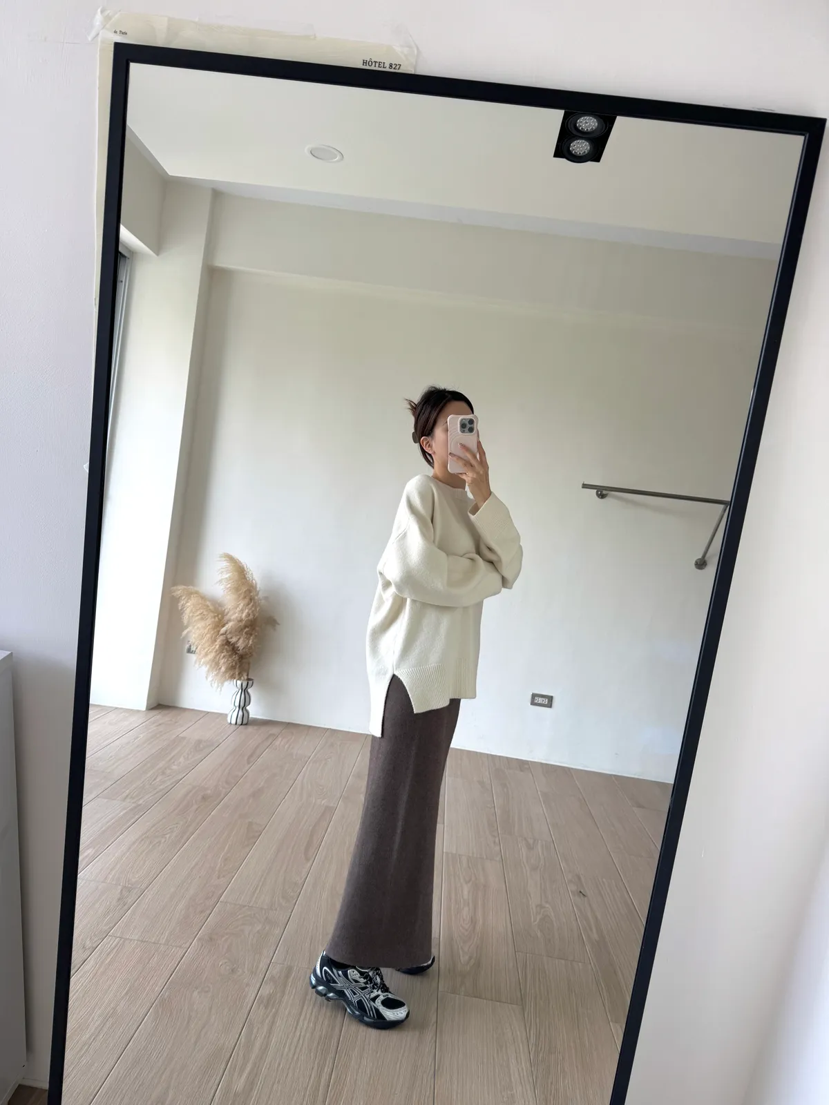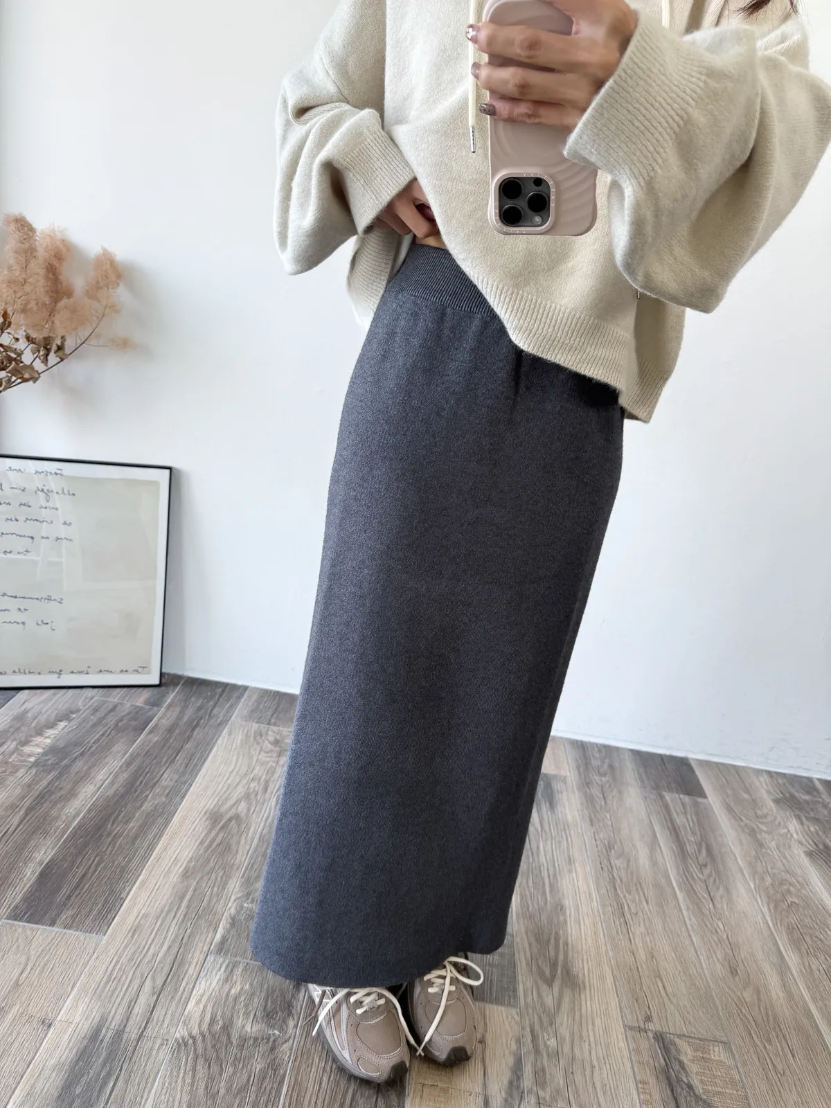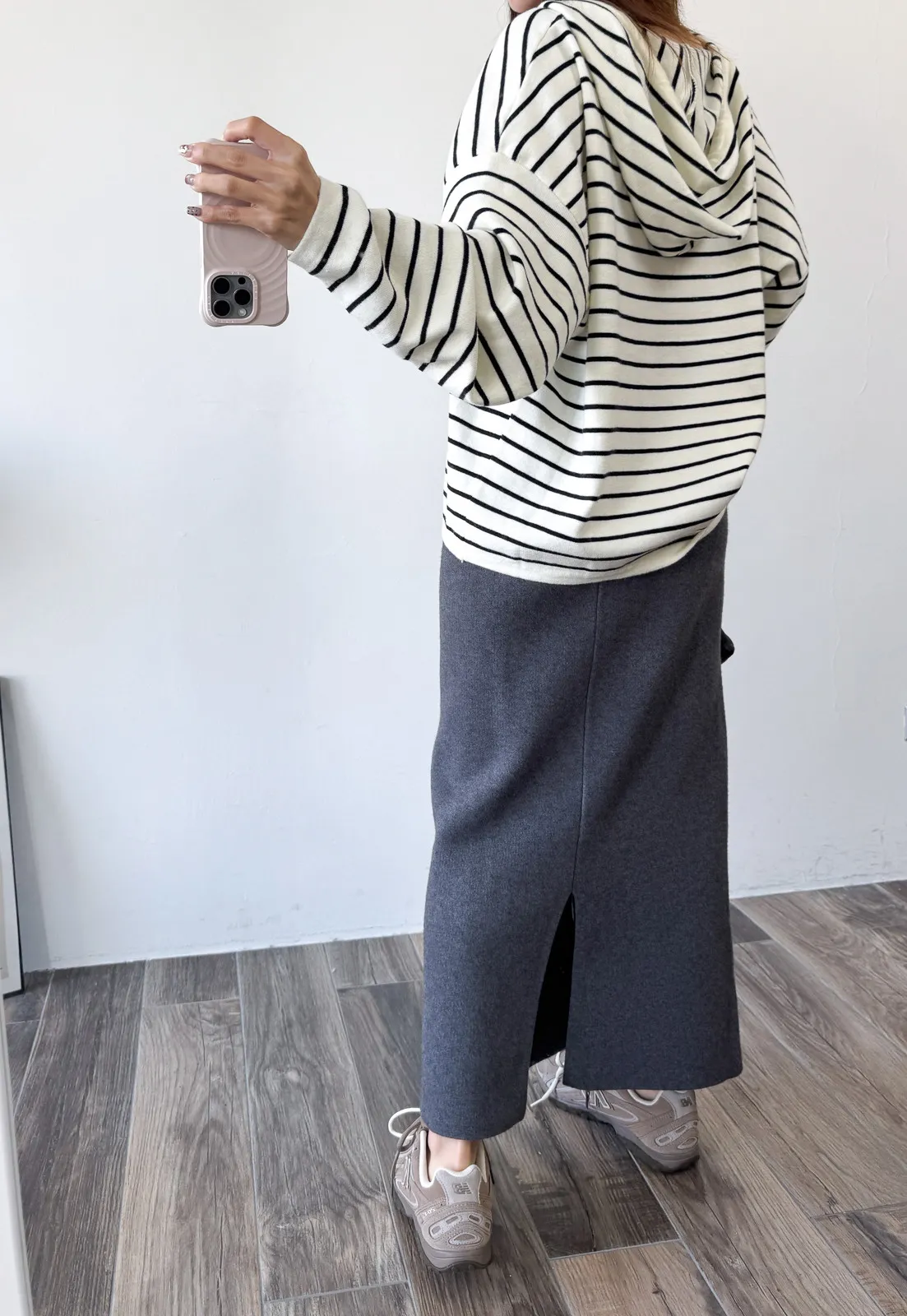 針織料 / 有彈性 這件太厲害~ 因為是厚磅針織穿起來挺度夠非常修飾. 不怕內褲痕也不擔心屁股兩旁的小肉會明顯凸出 今年長度稍微長一點整體比例看起來更好了!! 配球鞋也好可愛~~ 喜歡! *made in china Model 158/48(腰26 臀35.5吋) detail/