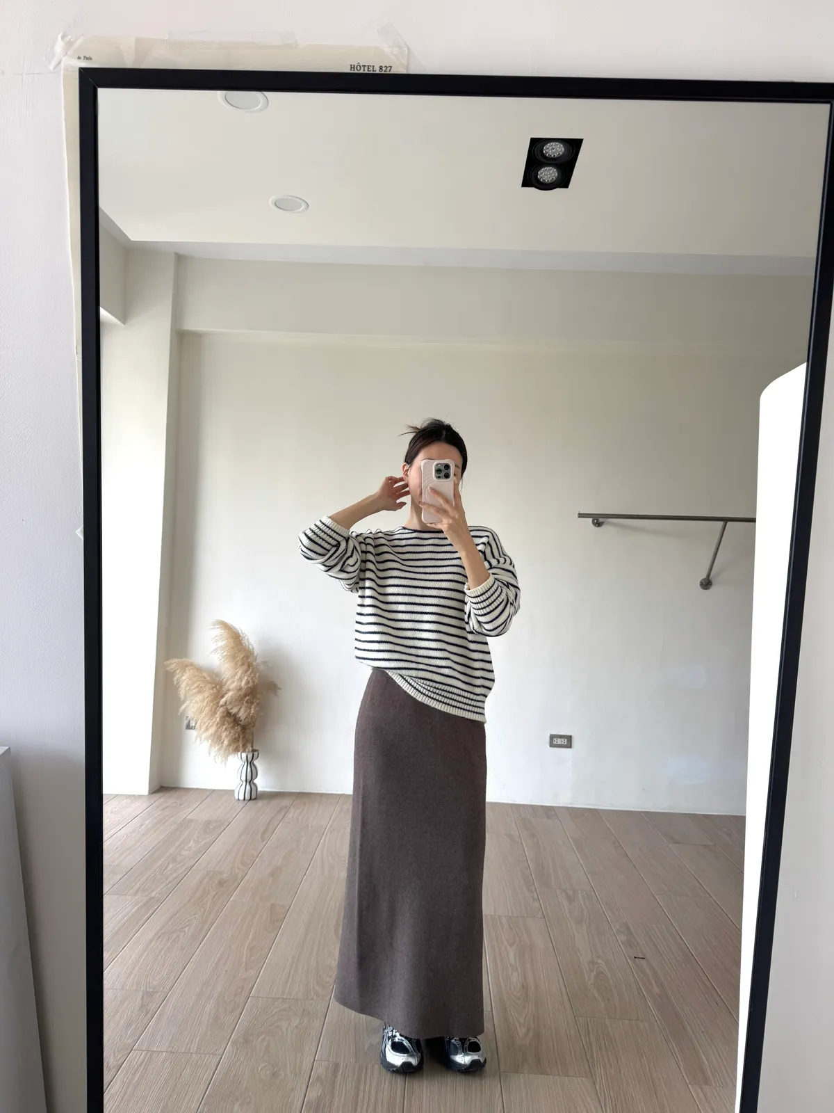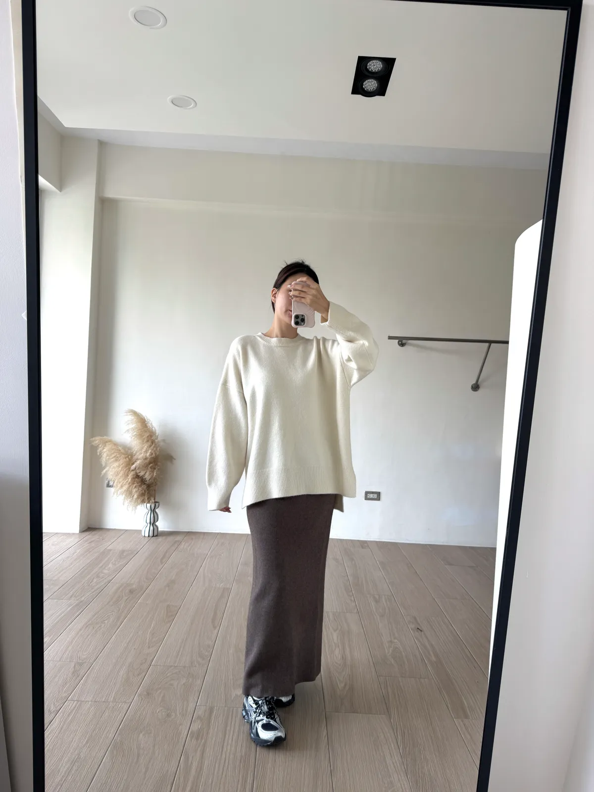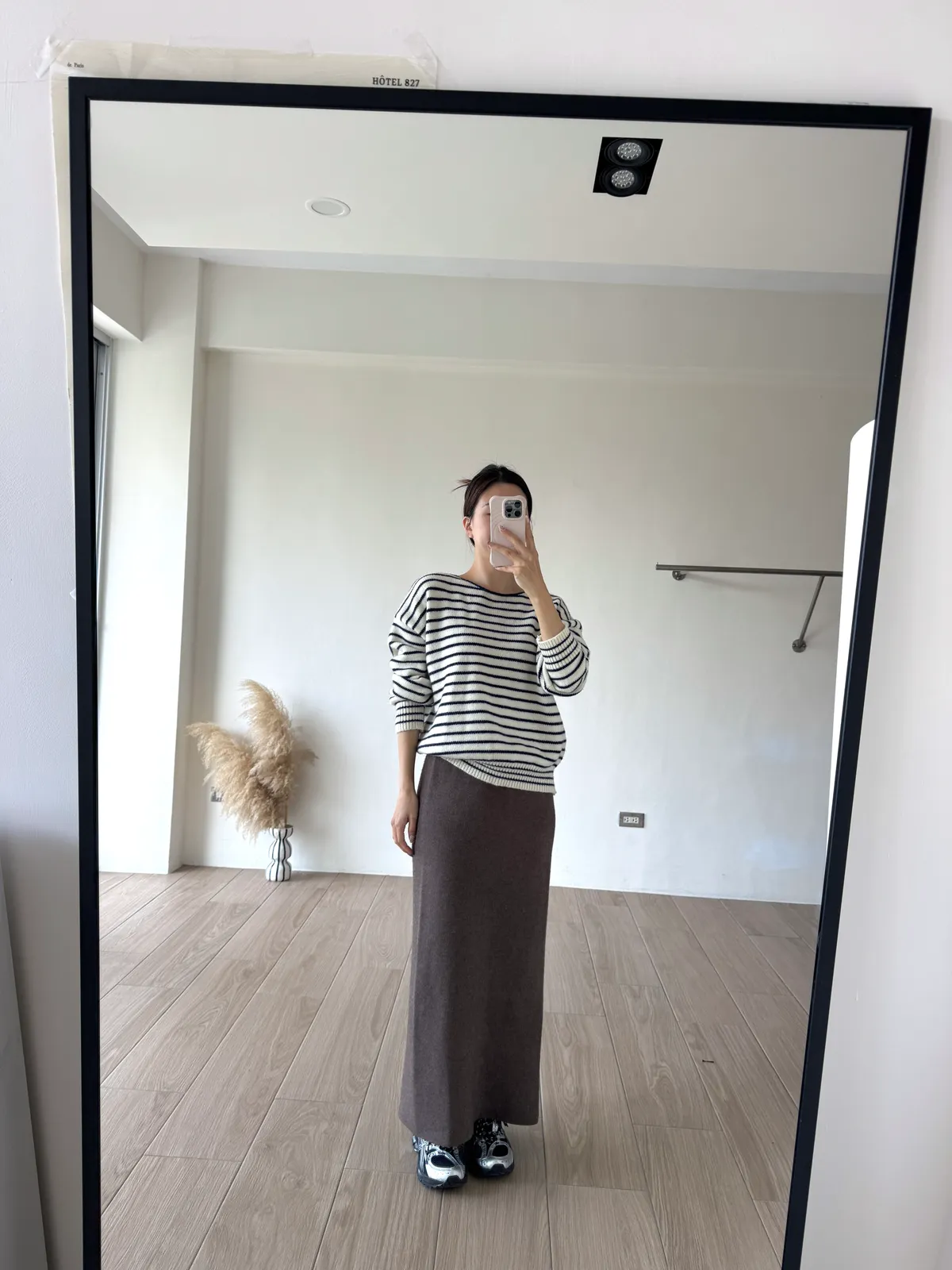 針織料 / 有彈性 這件太厲害~ 因為是厚磅針織穿起來挺度夠非常修飾. 不怕內褲痕也不擔心屁股兩旁的小肉會明顯凸出 今年長度稍微長一點整體比例看起來更好了!! 配球鞋也好可愛~~ 喜歡! *made in china Model 158/48(腰26 臀35.5吋) detail/