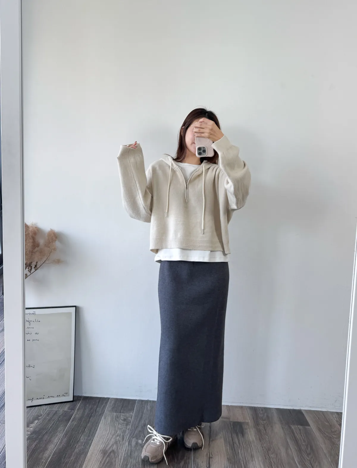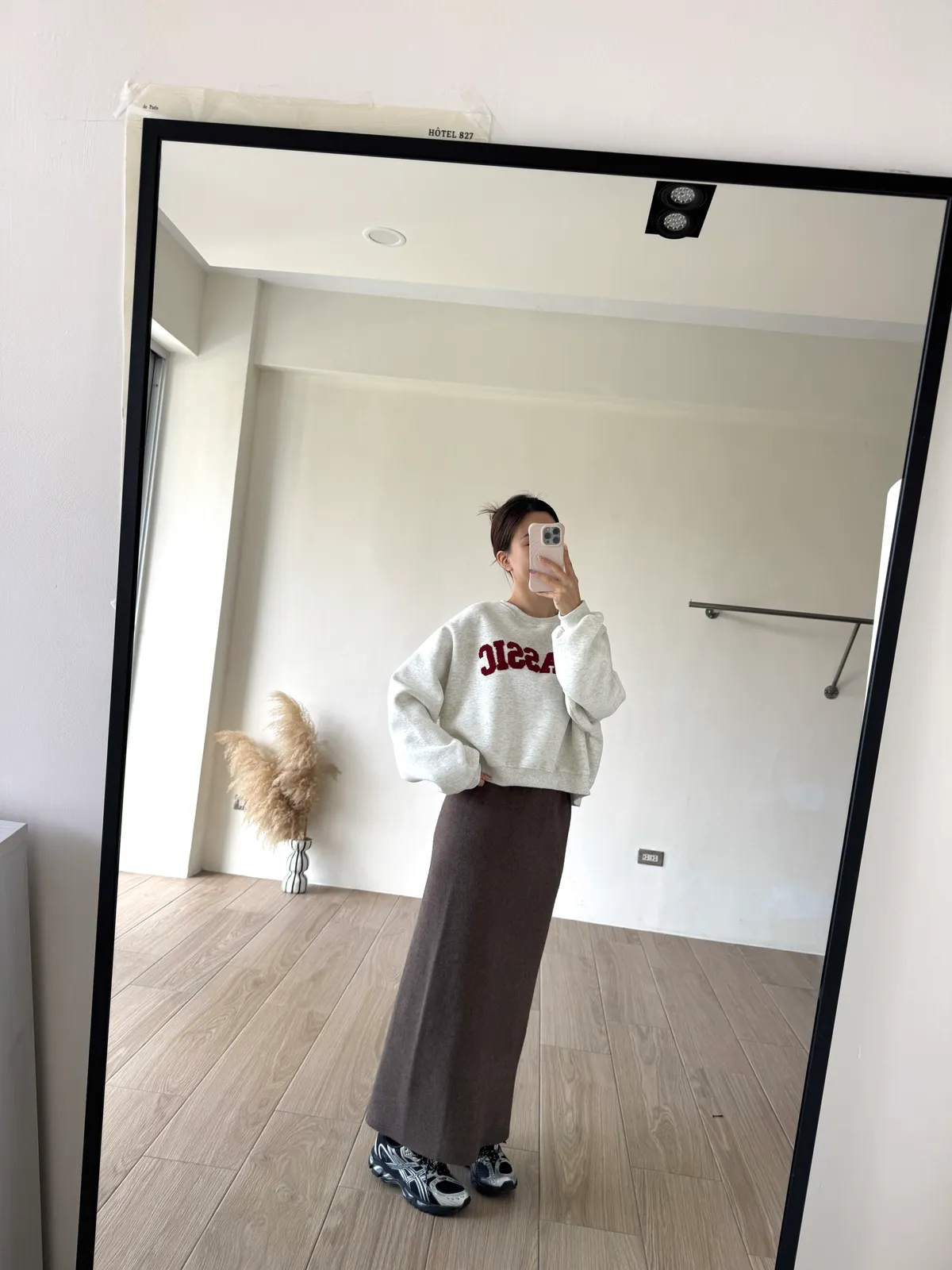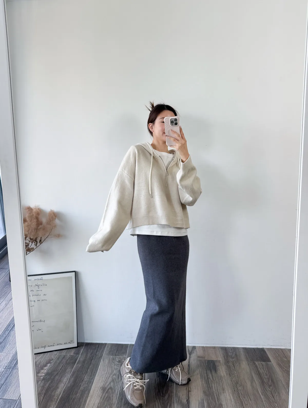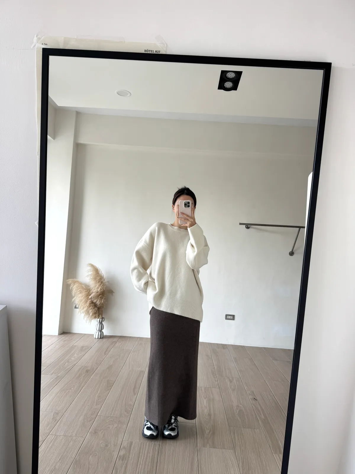 針織料 / 有彈性 這件太厲害~ 因為是厚磅針織穿起來挺度夠非常修飾. 不怕內褲痕也不擔心屁股兩旁的小肉會明顯凸出 今年長度稍微長一點整體比例看起來更好了!! 配球鞋也好可愛~~ 喜歡! *made in china Model 158/48(腰26 臀35.5吋) detail/