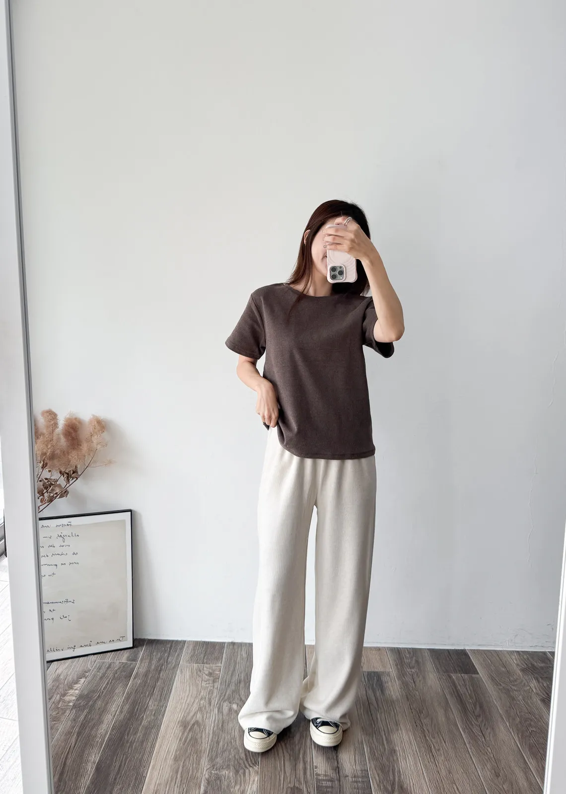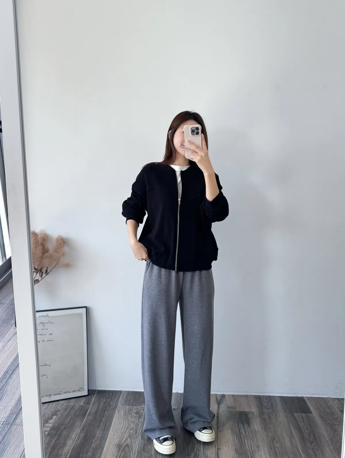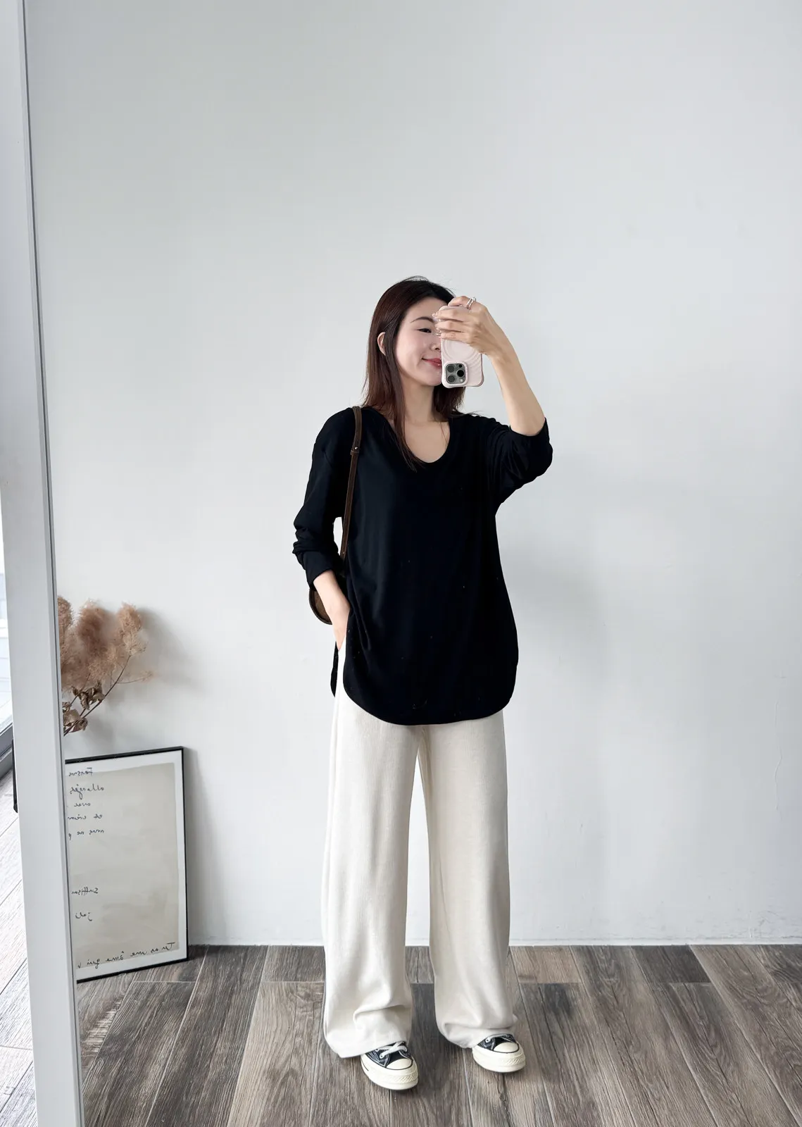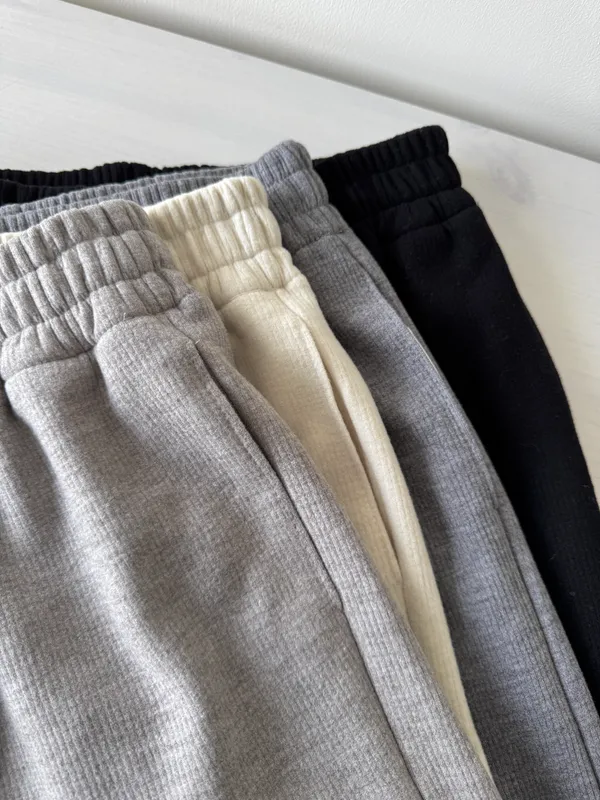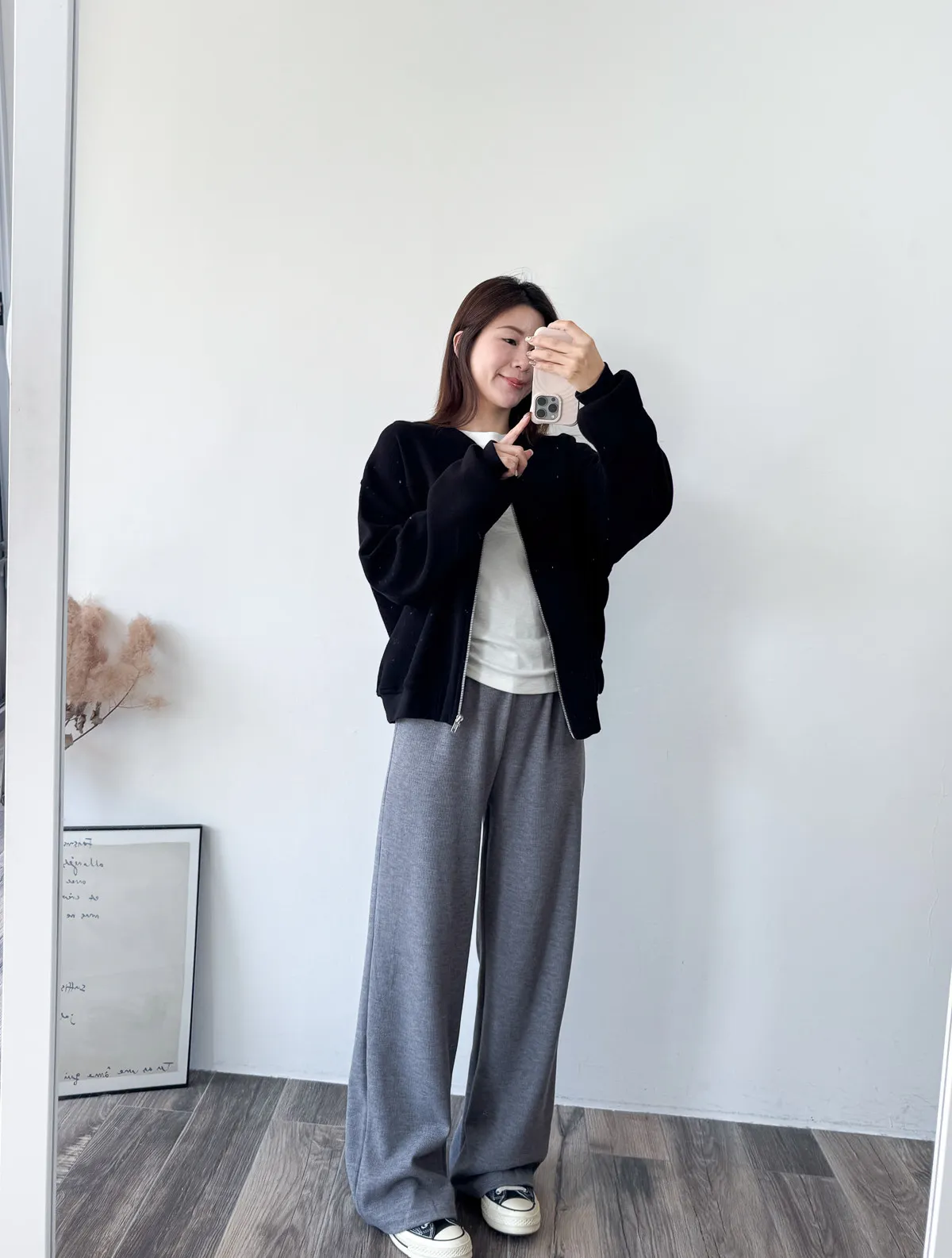 細坑條面/ 有彈性 / 褲頭鬆緊帶 超級舒服的面料~ 外層摸起來柔柔滑滑會忍不住一直摸XD 版型S~L都OK褲頭彈性很大,有口袋(加分) 版型順順的直筒加上布料的垂墜度穿起來非常修身 直筒版型配上冬天大學T好看又舒服!我自己超愛XD *made in china Model 158/48(腰26 臀35.5吋)
